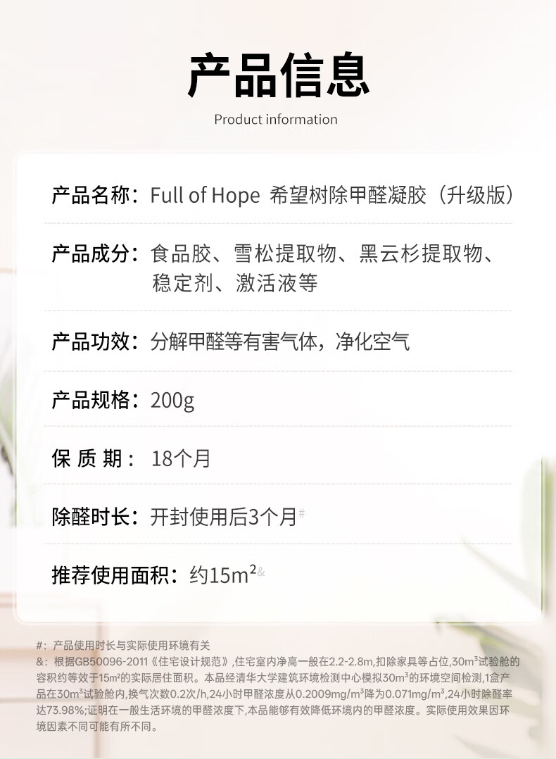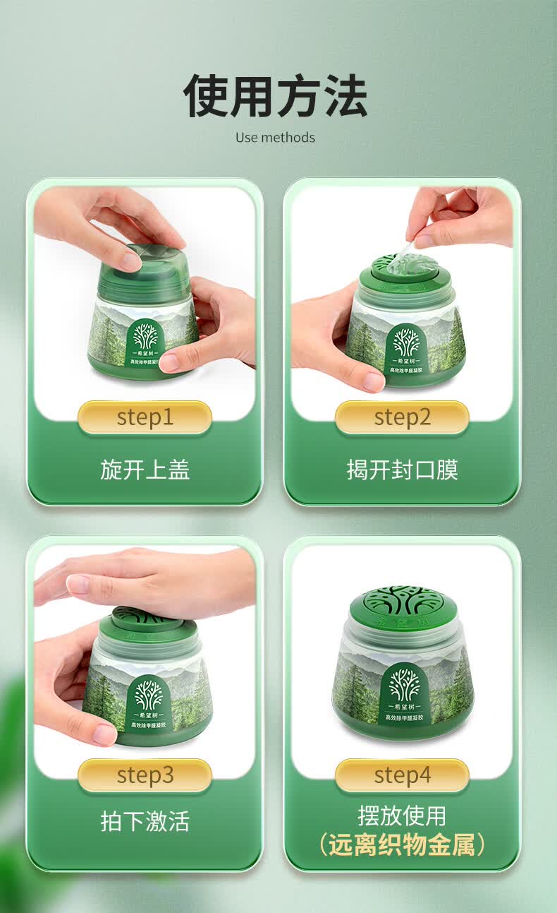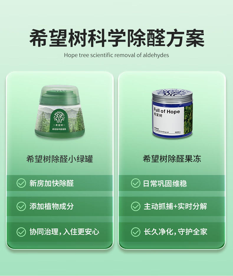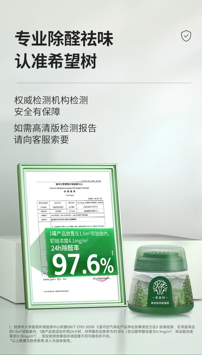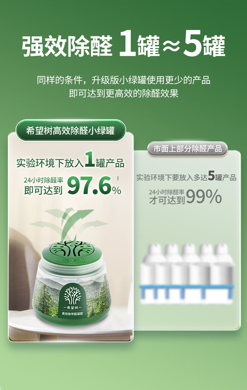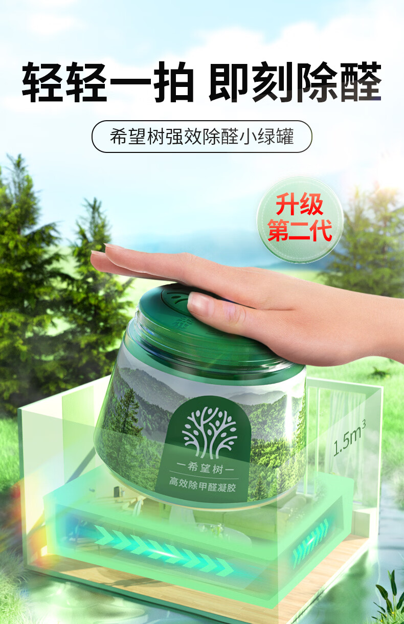 希望树二代小绿罐除甲醛果冻除醛魔盒3罐装 foh新房甲醛清除剂真除醛