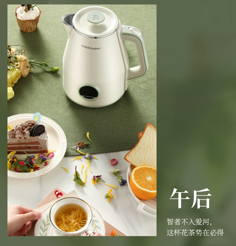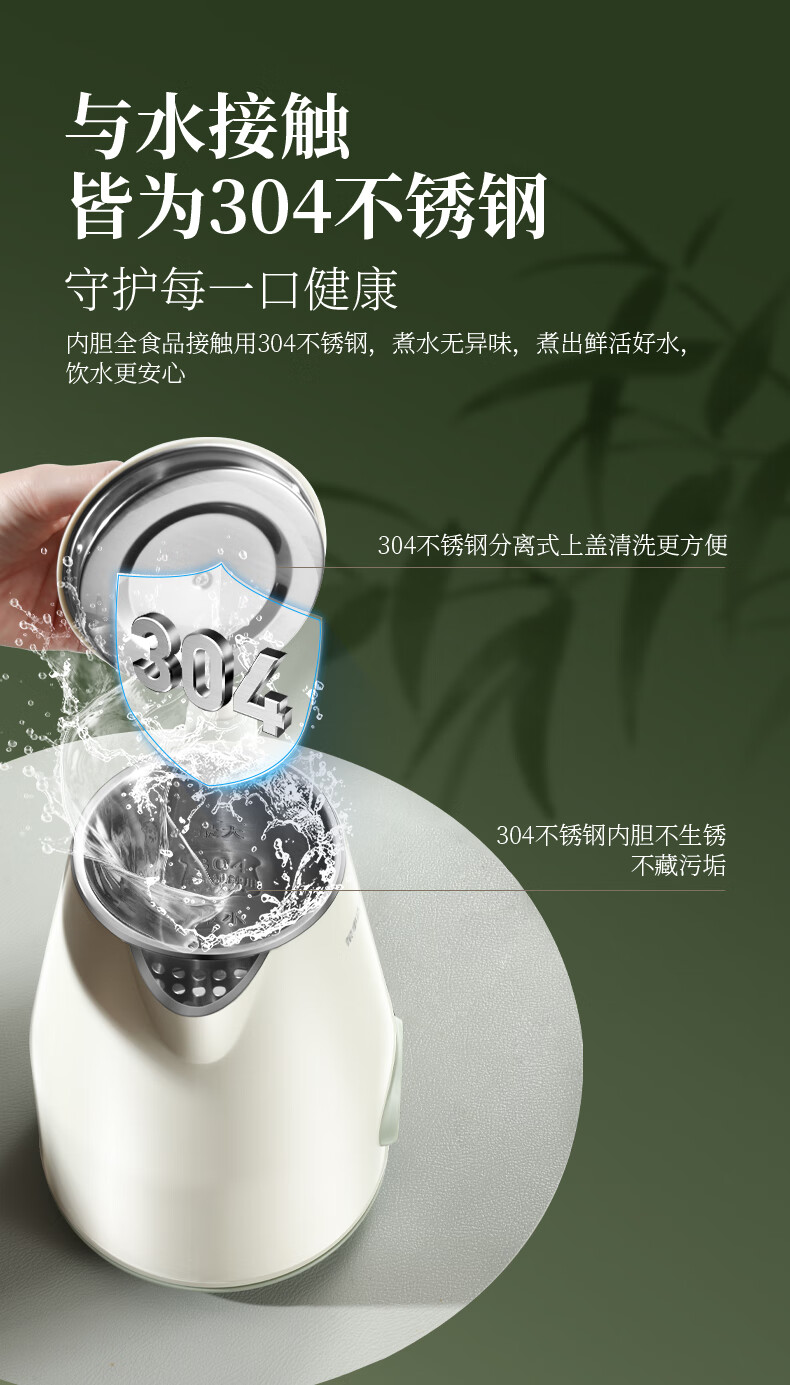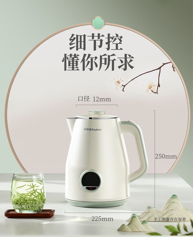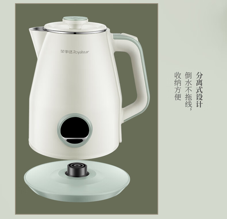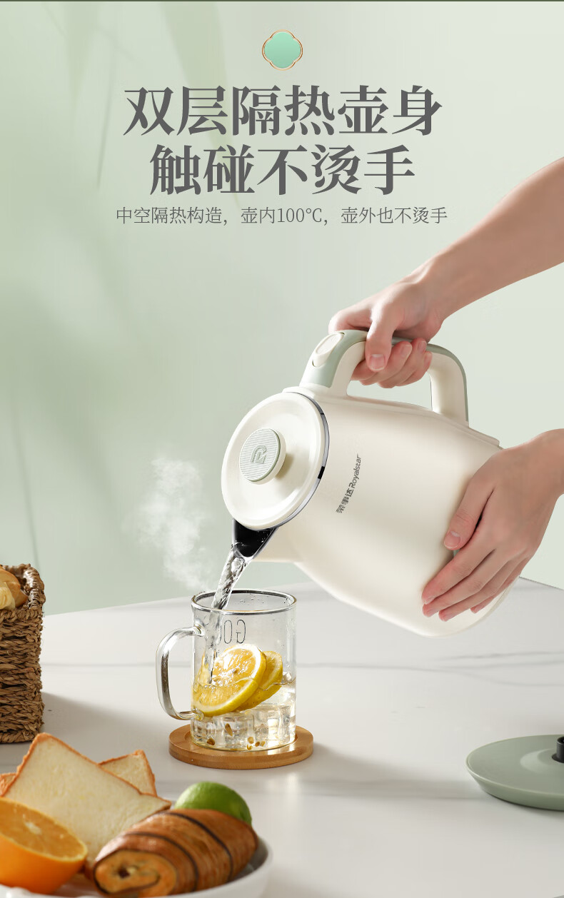 荣事达电热水壶烧水壶1.8L大容量304不锈钢双层防烫办公室家用泡茶饮水速热青玉系列 RS-KT18P