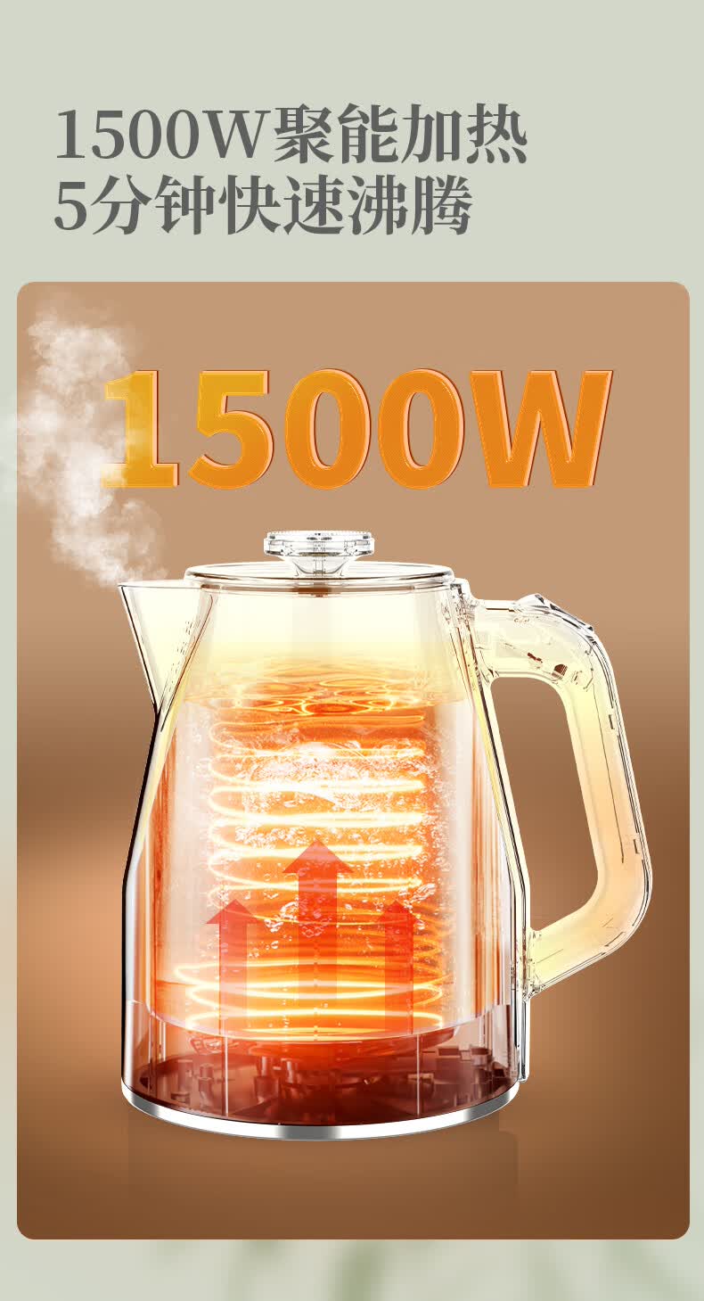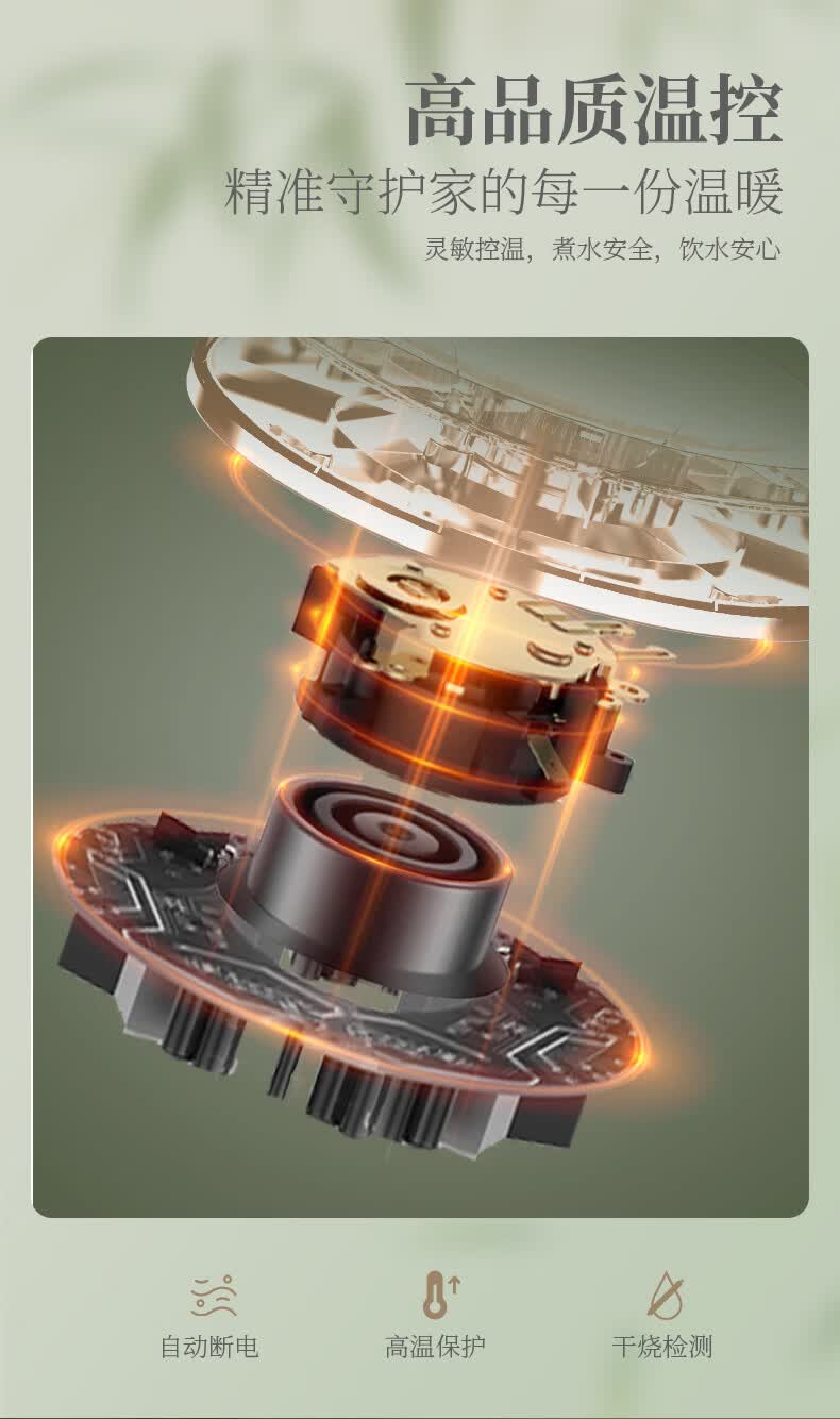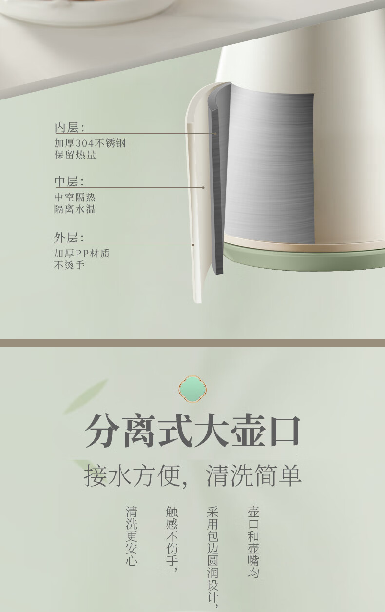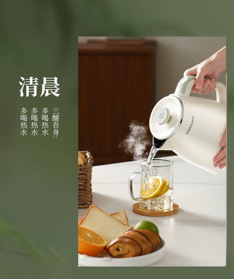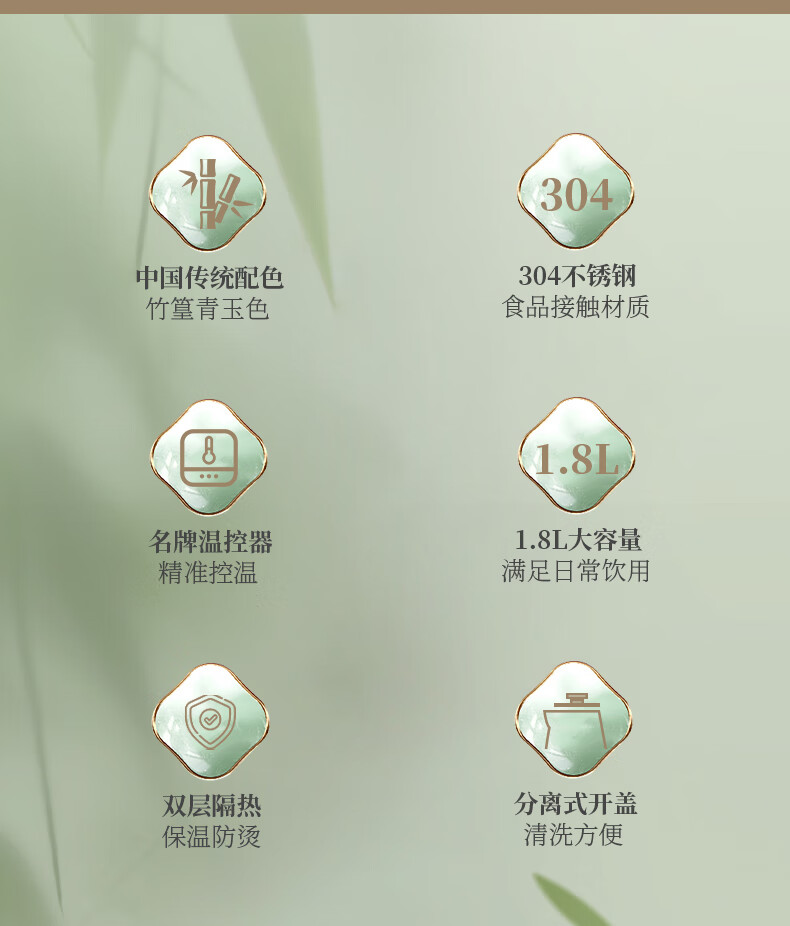 荣事达电热水壶烧水壶1.8L大容量304不锈钢双层防烫办公室家用泡茶饮水速热青玉系列 RS-KT18P