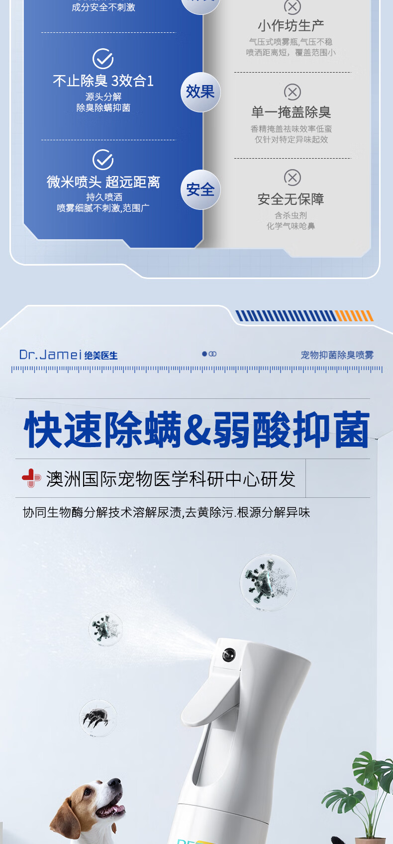 绝美医生抑菌除螨喷雾狗猫尿生物酶分解剂杀菌狗窝猫砂盆除臭除尿骚味