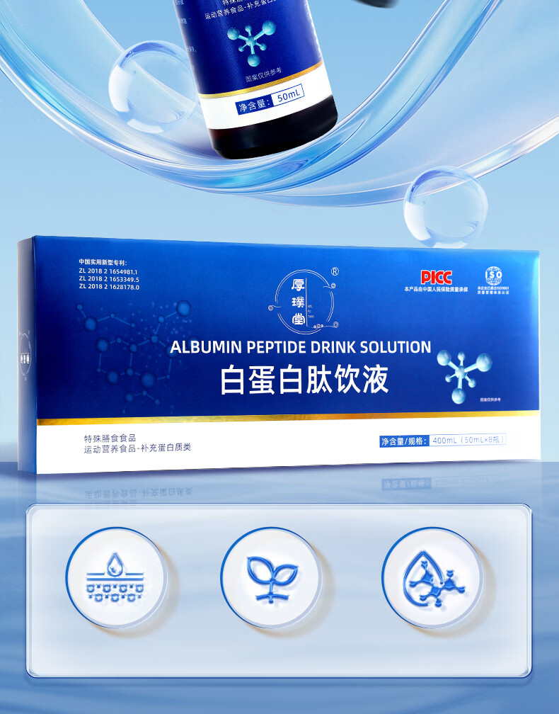 厚璞堂白蛋白肽饮液小分子肽更好吸收营养素饮品补充正品保障 1盒装【体验装】 400ml*1盒