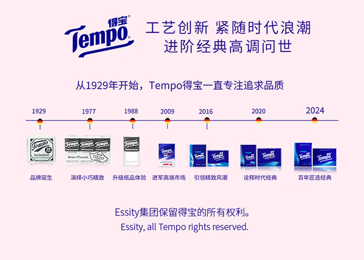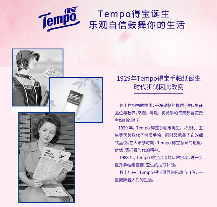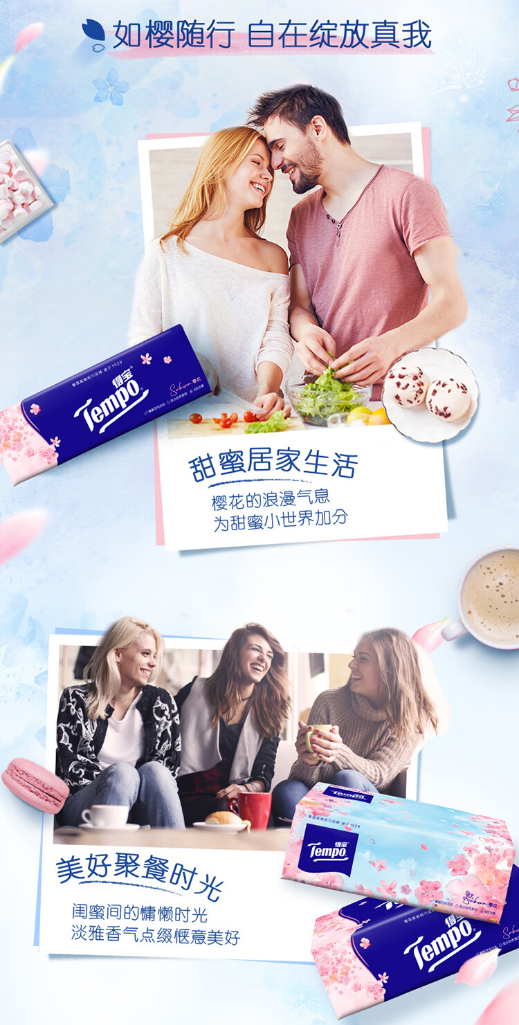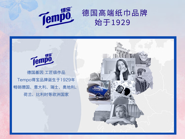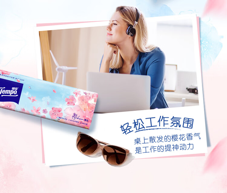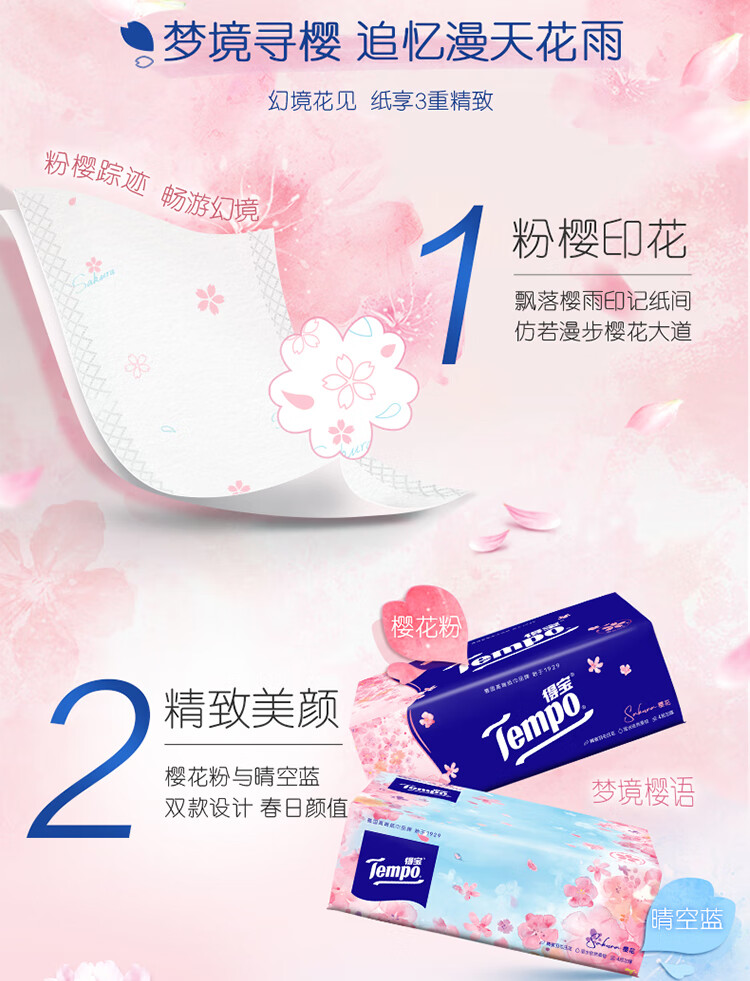 得宝(TEMPO)一博同款 抽纸 真M码 樱花味4层90抽*16包 湿水不易破 纸巾