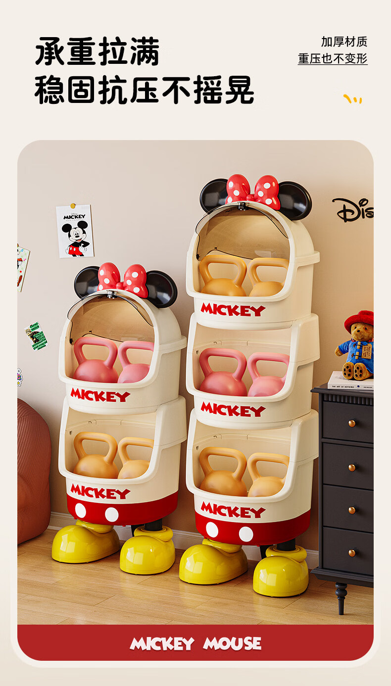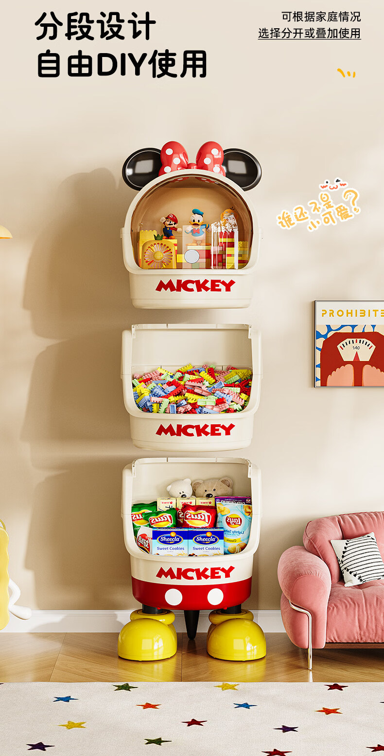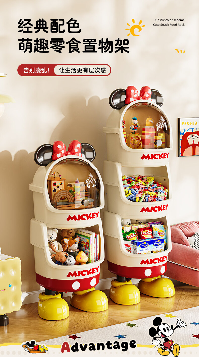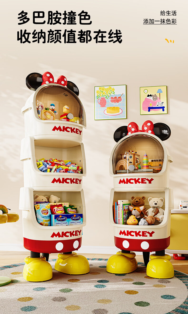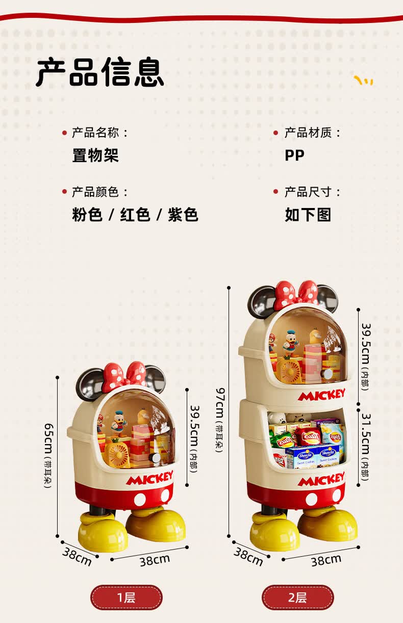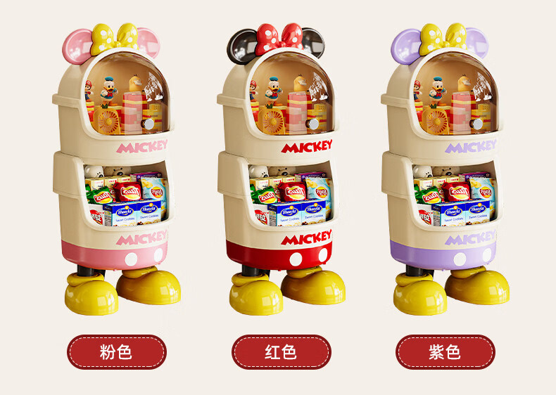 艾仕可迪士尼米奇多层落地零食架子置物架客厅高颜值儿童玩具收纳架卡通 【公主粉】2层 Diy萌趣尾巴。蝴蝶结可拆卸