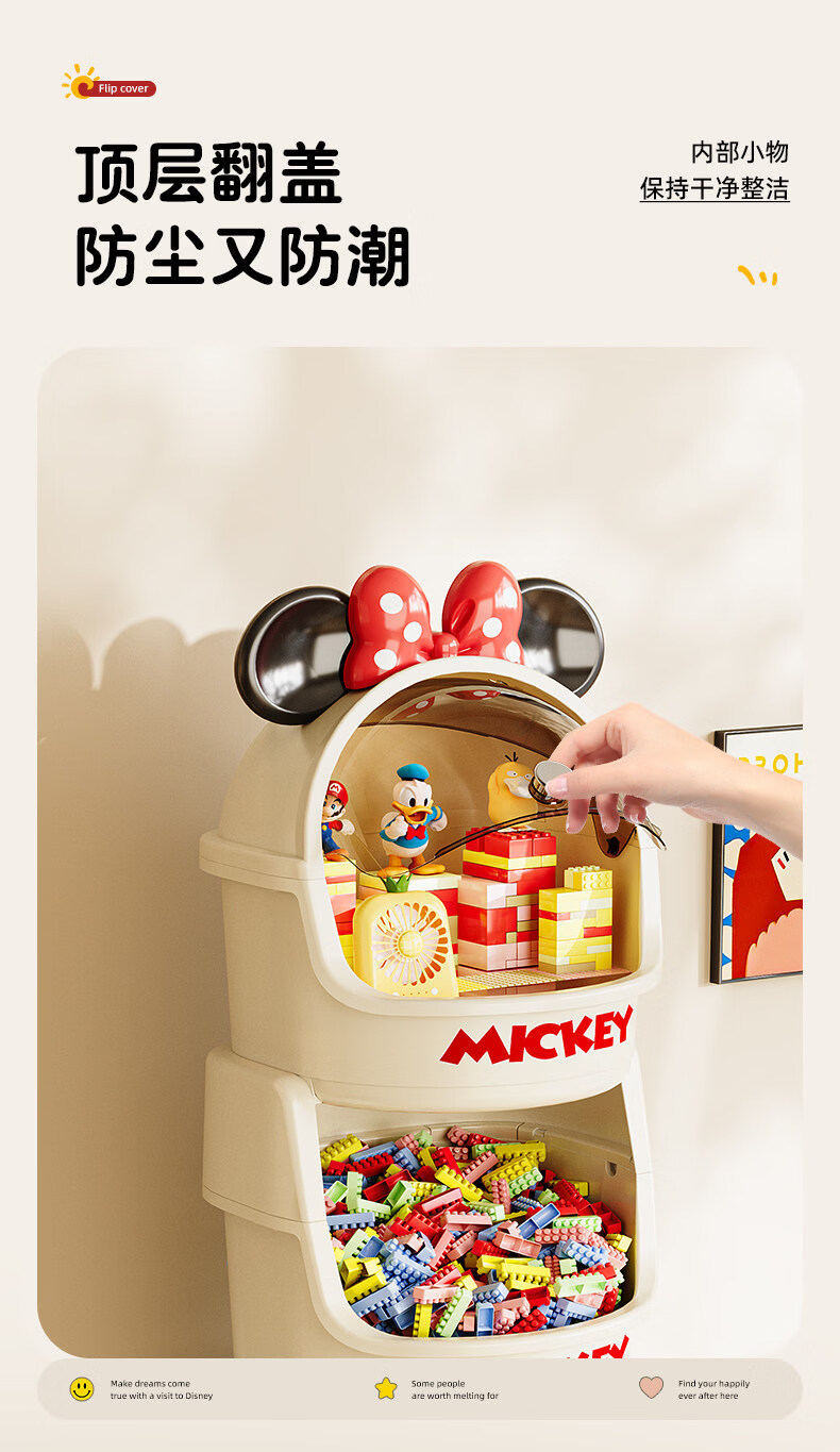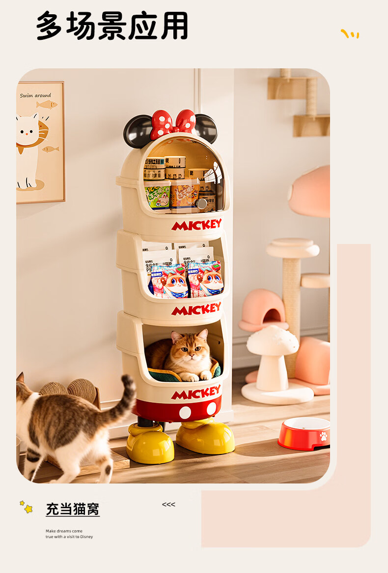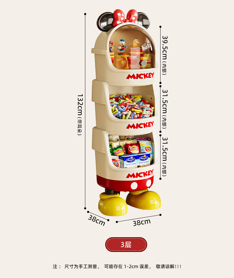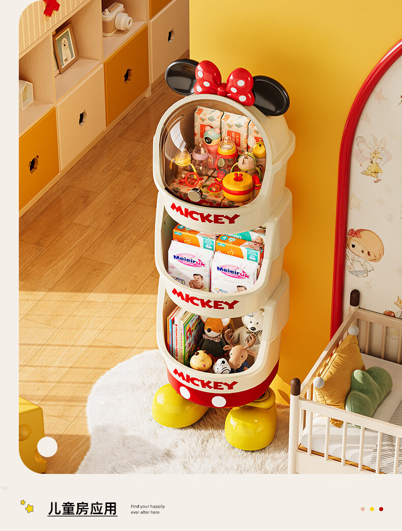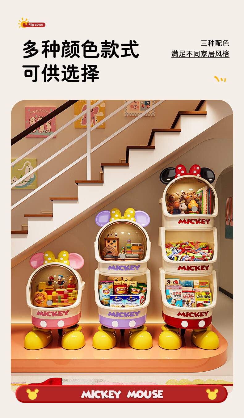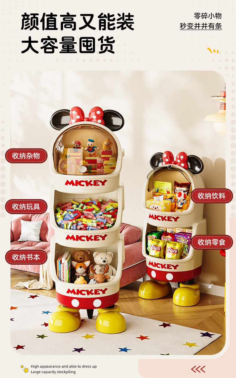 艾仕可迪士尼米奇多层落地零食架子置物架客厅高颜值儿童玩具收纳架卡通 【公主粉】2层 Diy萌趣尾巴。蝴蝶结可拆卸