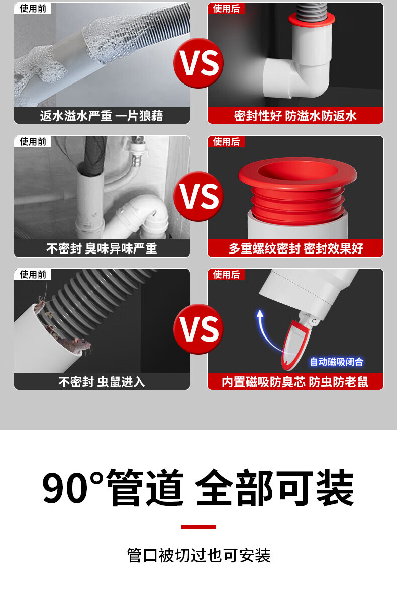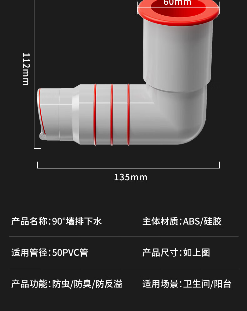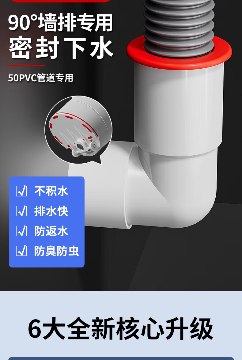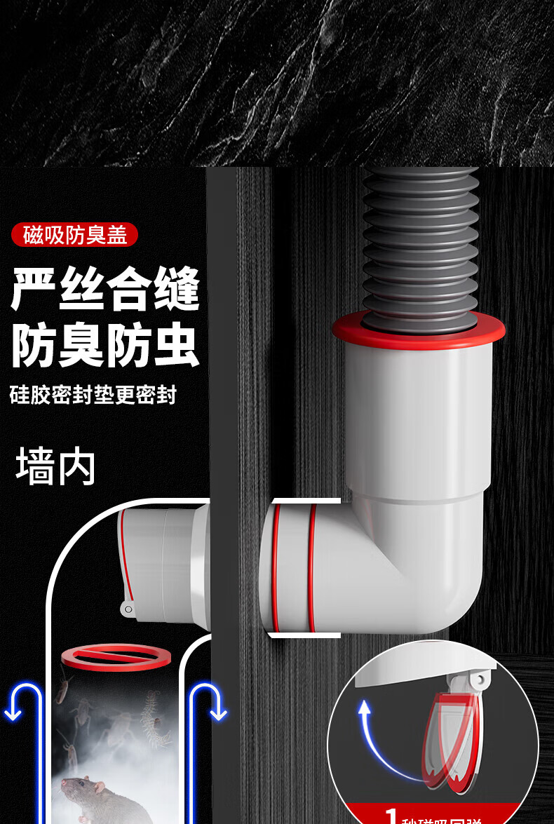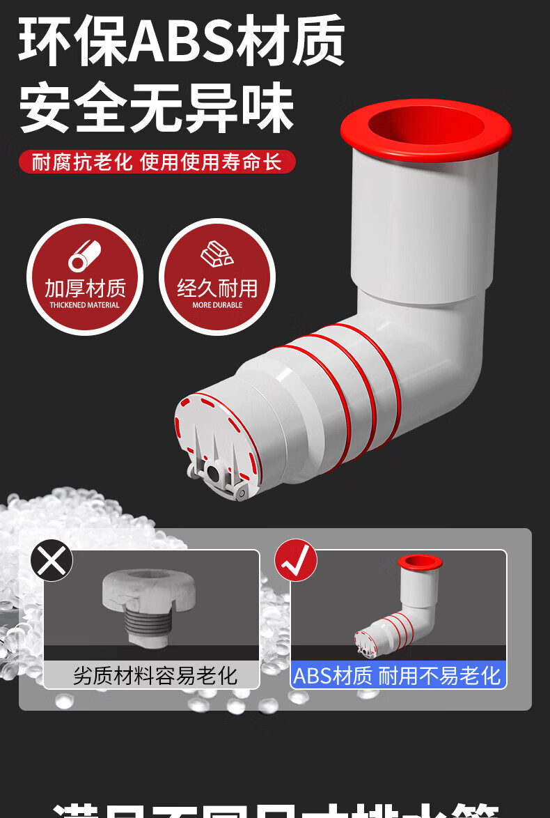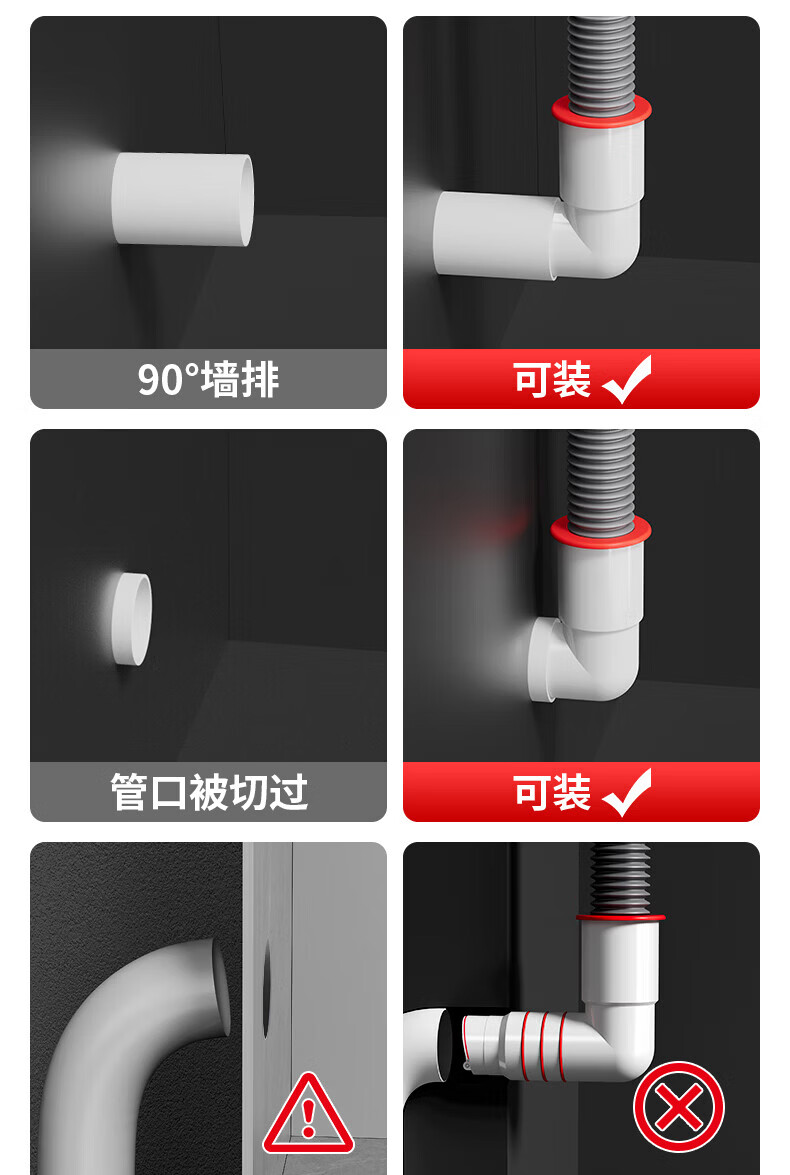 Jeonestan【德国】90度墙排管道防臭塞专用密封圈防虫防溢水堵口下水器 【45°墙排专用】接洗手池 两个装