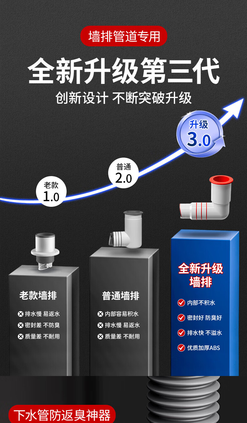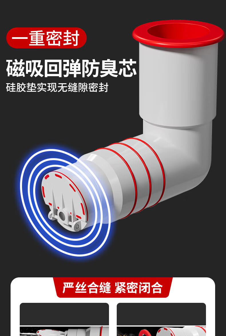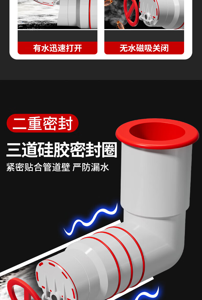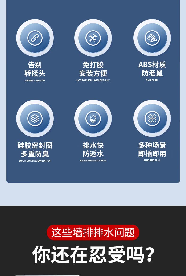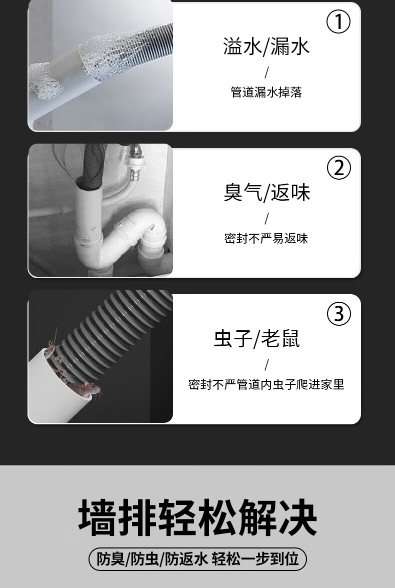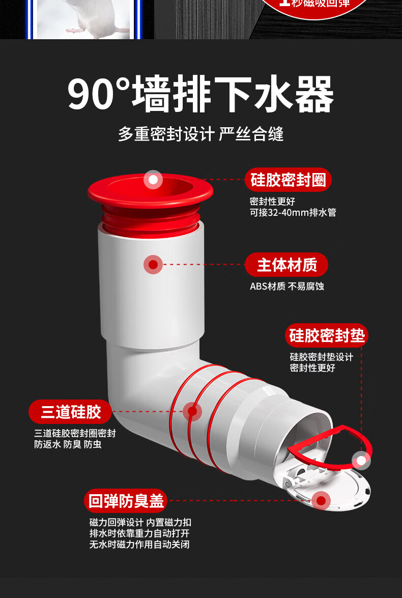 Jeonestan【德国】90度墙排管道防臭塞专用密封圈防虫防溢水堵口下水器 【45°墙排专用】接洗手池 两个装
