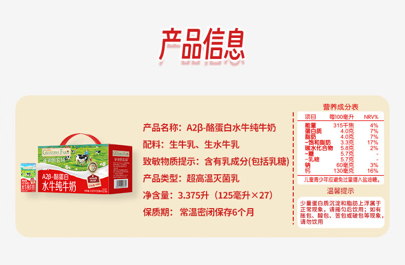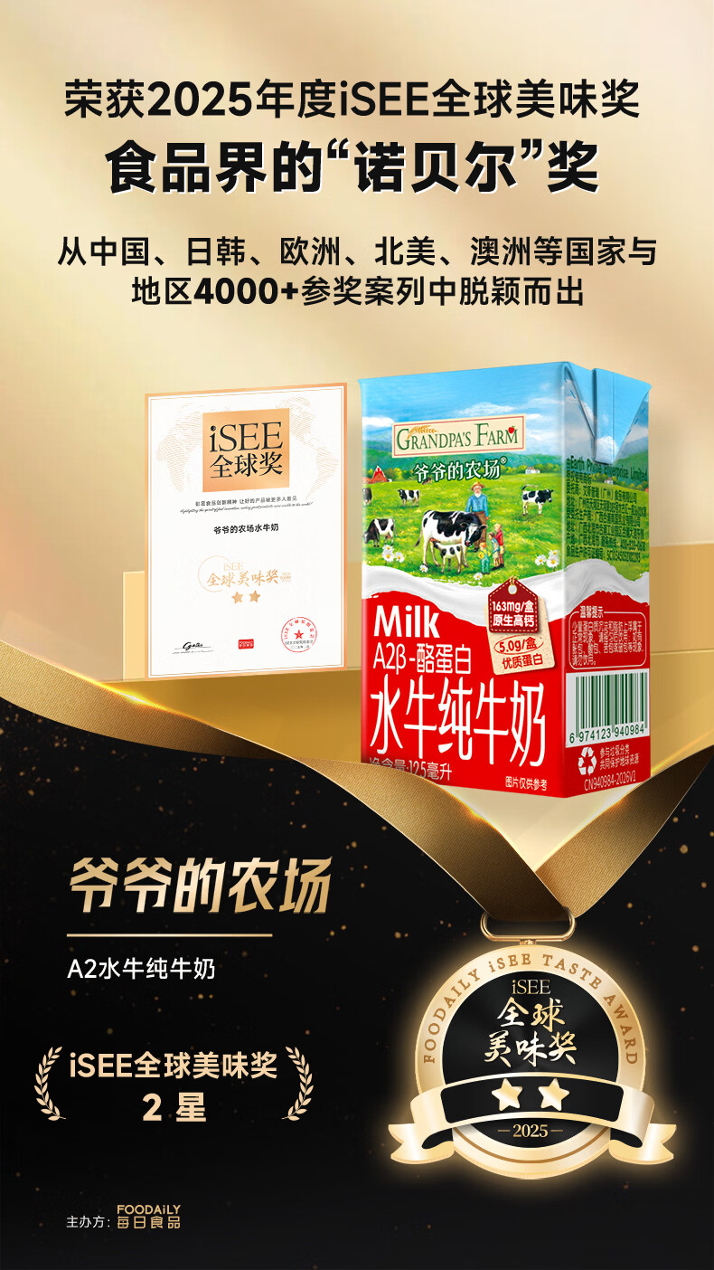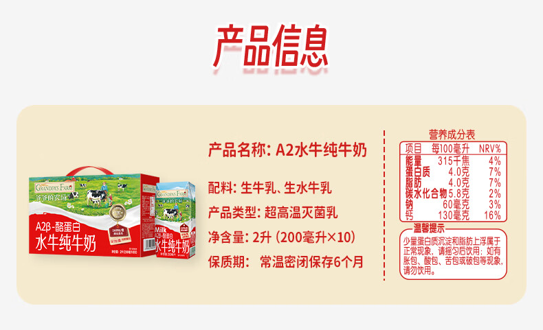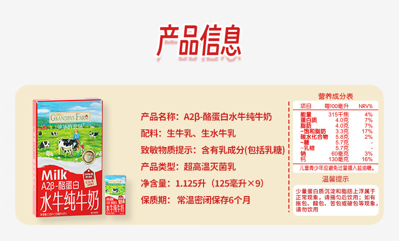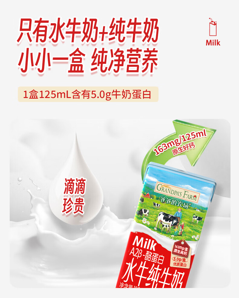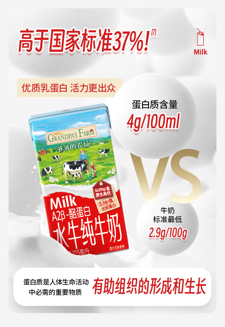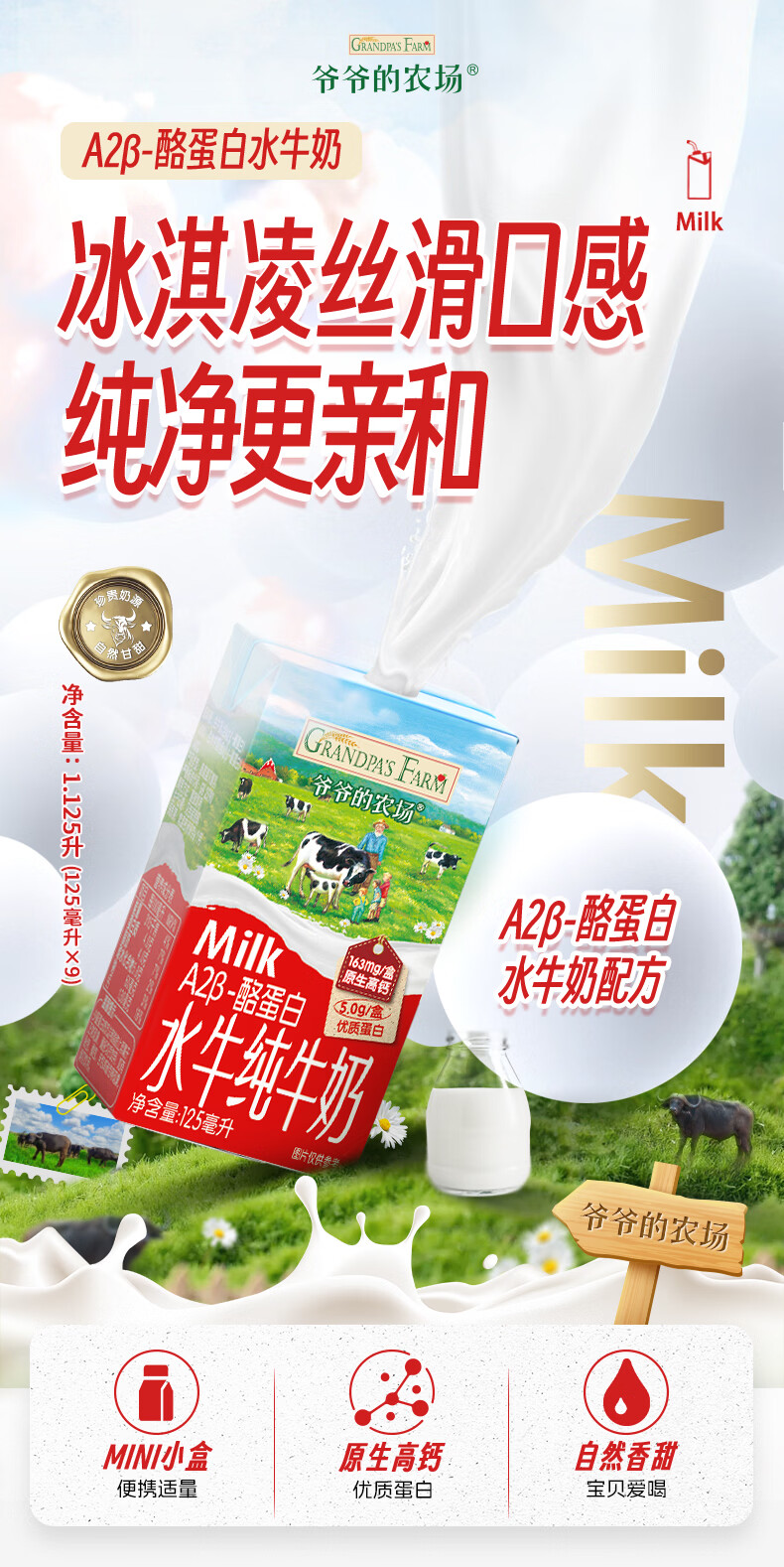 爷爷的农场A2β-酪蛋白水牛奶纯牛奶 儿童宝宝婴儿酸奶营养早餐奶便携零食 水牛奶 1箱 200ml*10盒