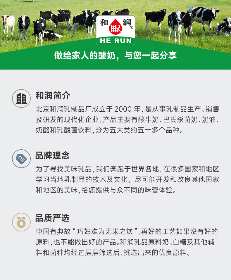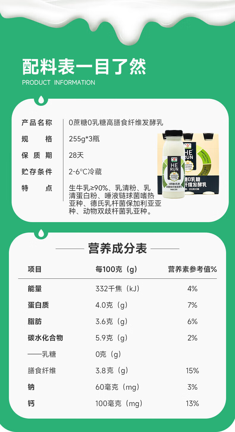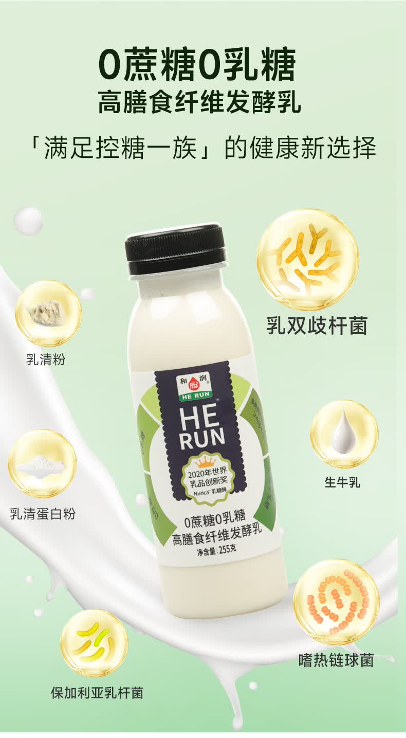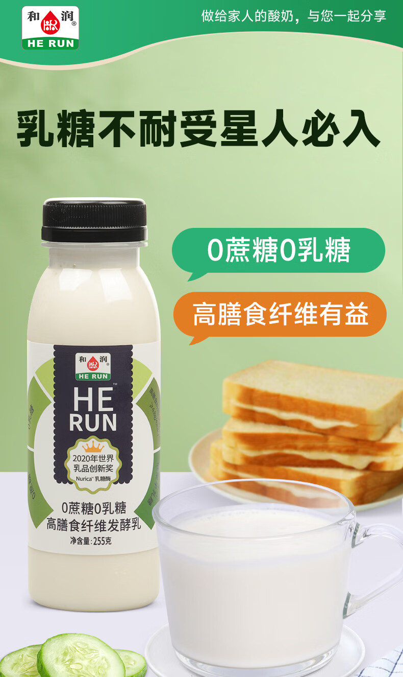 和润0蔗糖0乳糖高膳食纤维发酵乳 255g*3 低温酸奶 乳糖不耐可喝