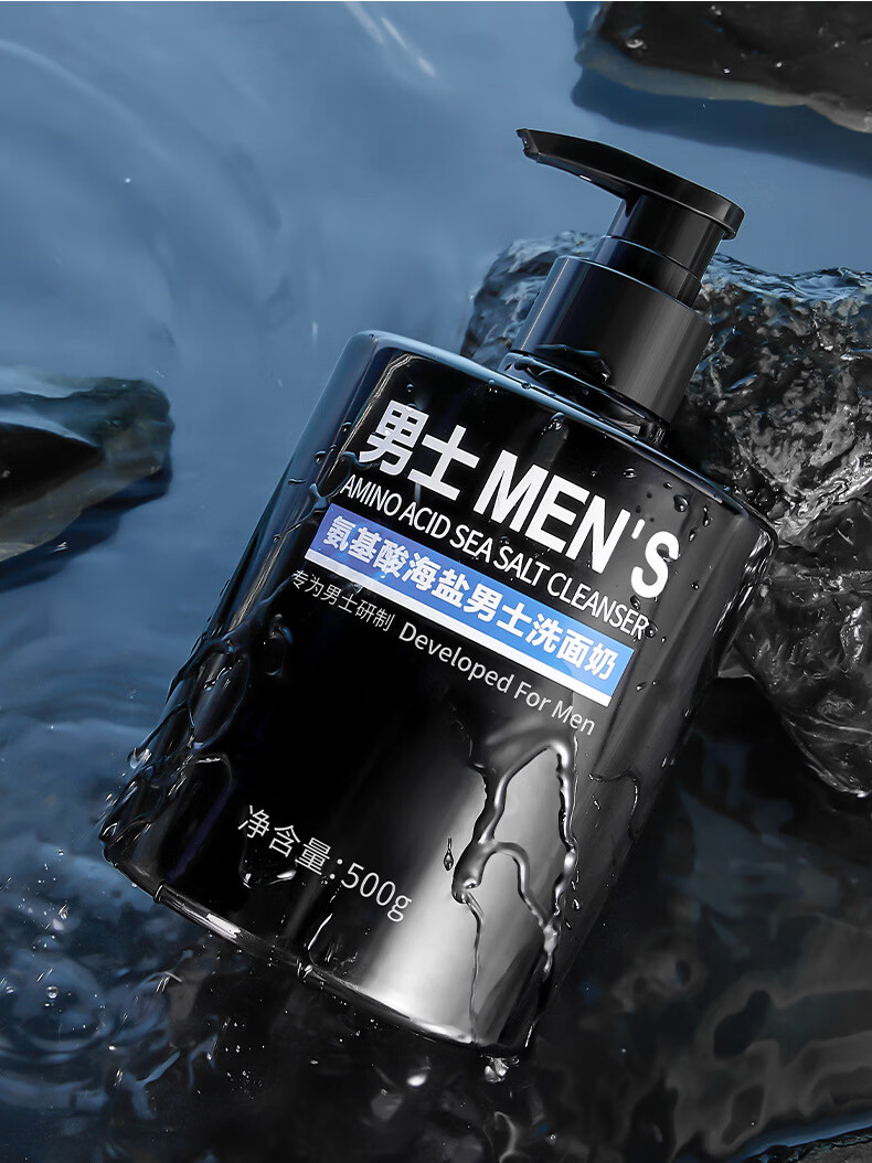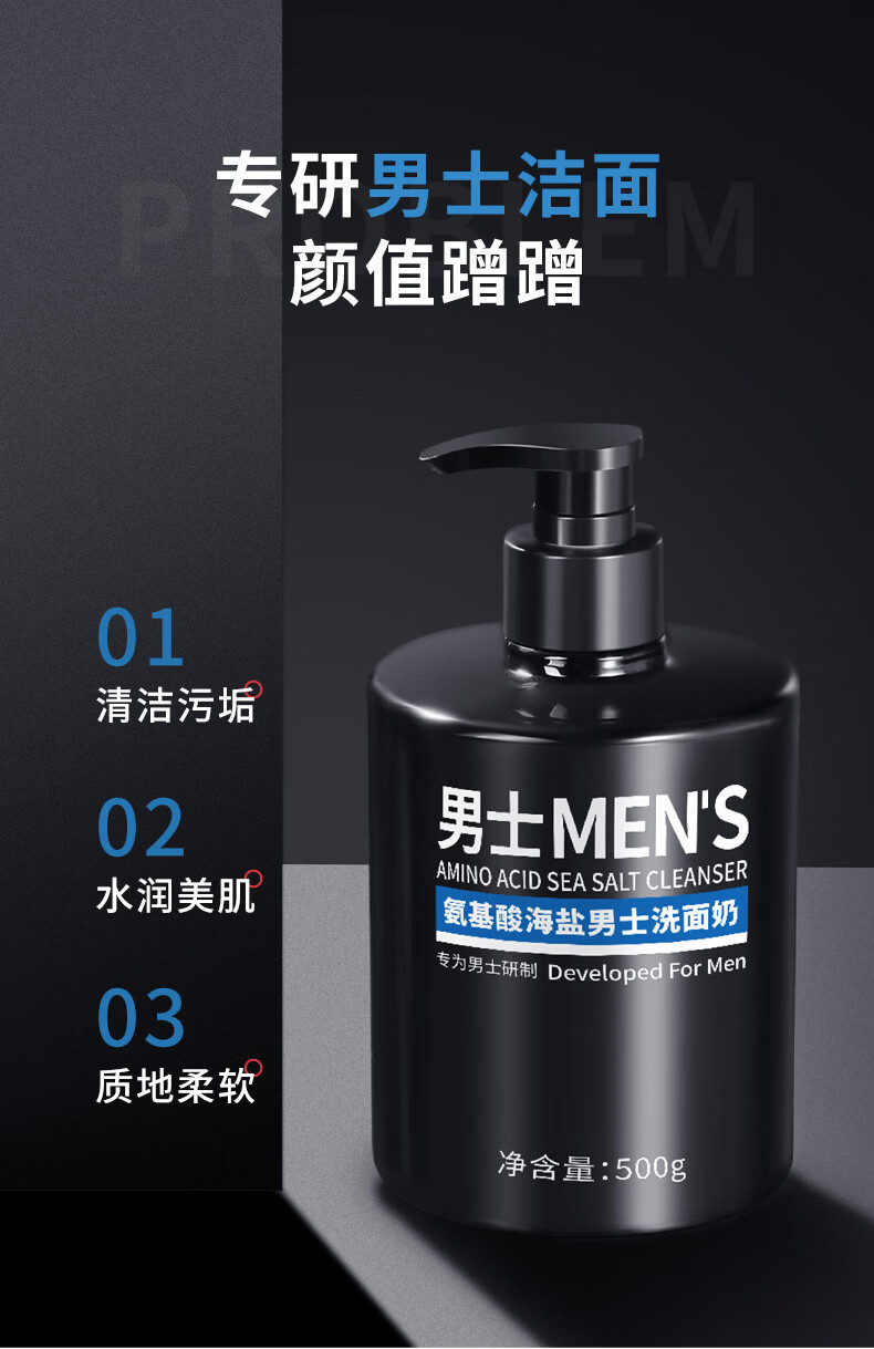 韩伦美羽【厂家直发】氨基酸海盐男士洗面奶温和清洁洁面乳洁面皂男士护肤 500g /瓶
