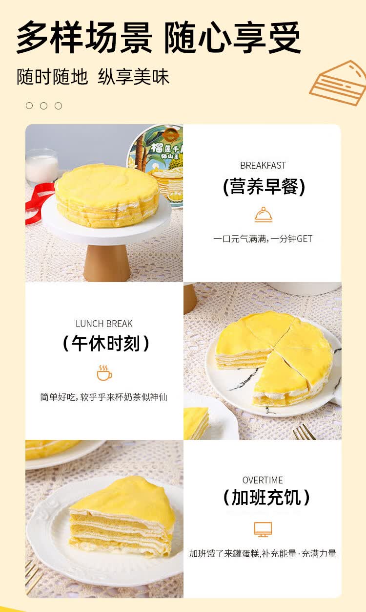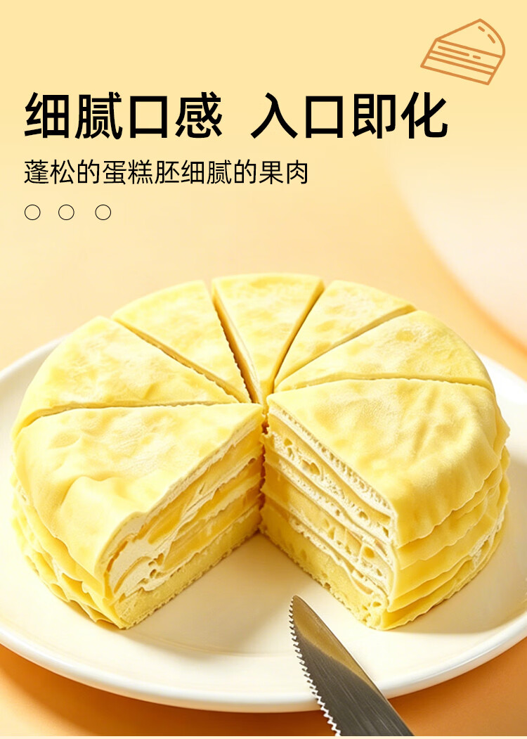 金枕榴莲千层榴莲果肉泰国金枕榴莲千层蛋糕甜品生日小金条小蛋糕 400g/盒*3【新鲜6寸金枕榴莲千层】