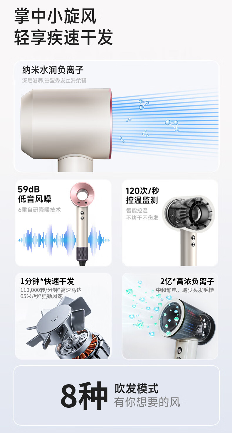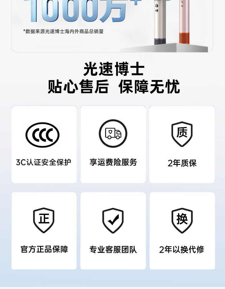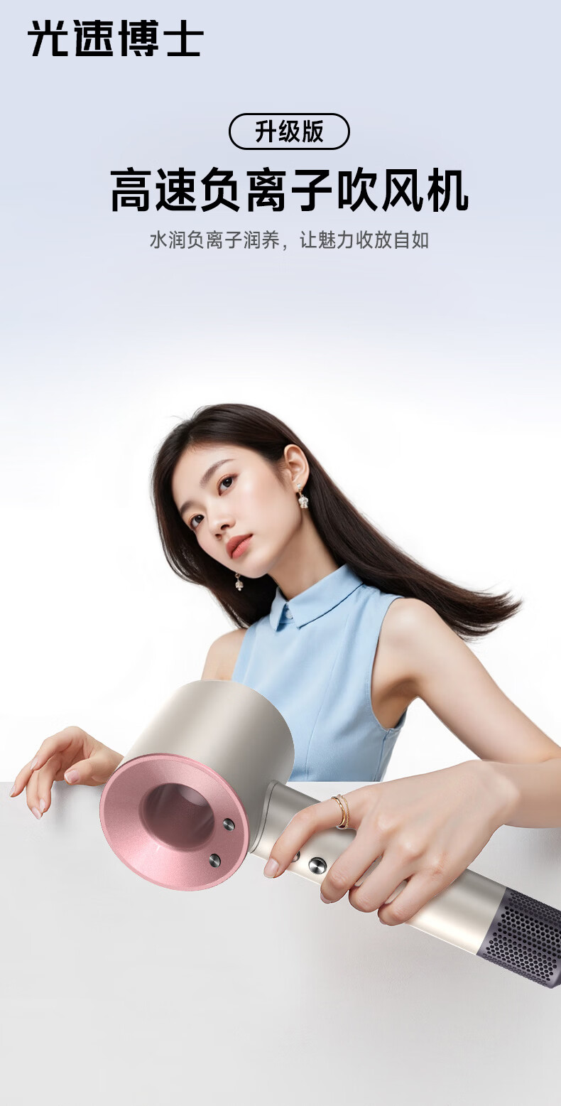 光速博士【3C认证】2亿负离子吹风机1600W大功率速干电吹风筒 家用静音恒温护发不伤发 高速柔顺男女士专用 【官方顶配-磨砂紫-单风嘴】2亿水润负离子护发