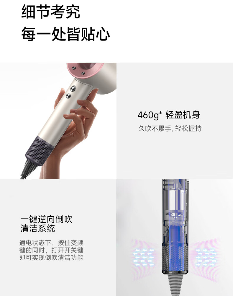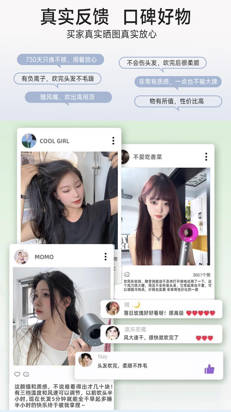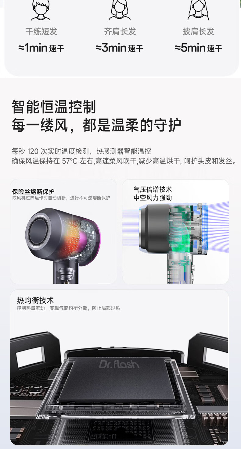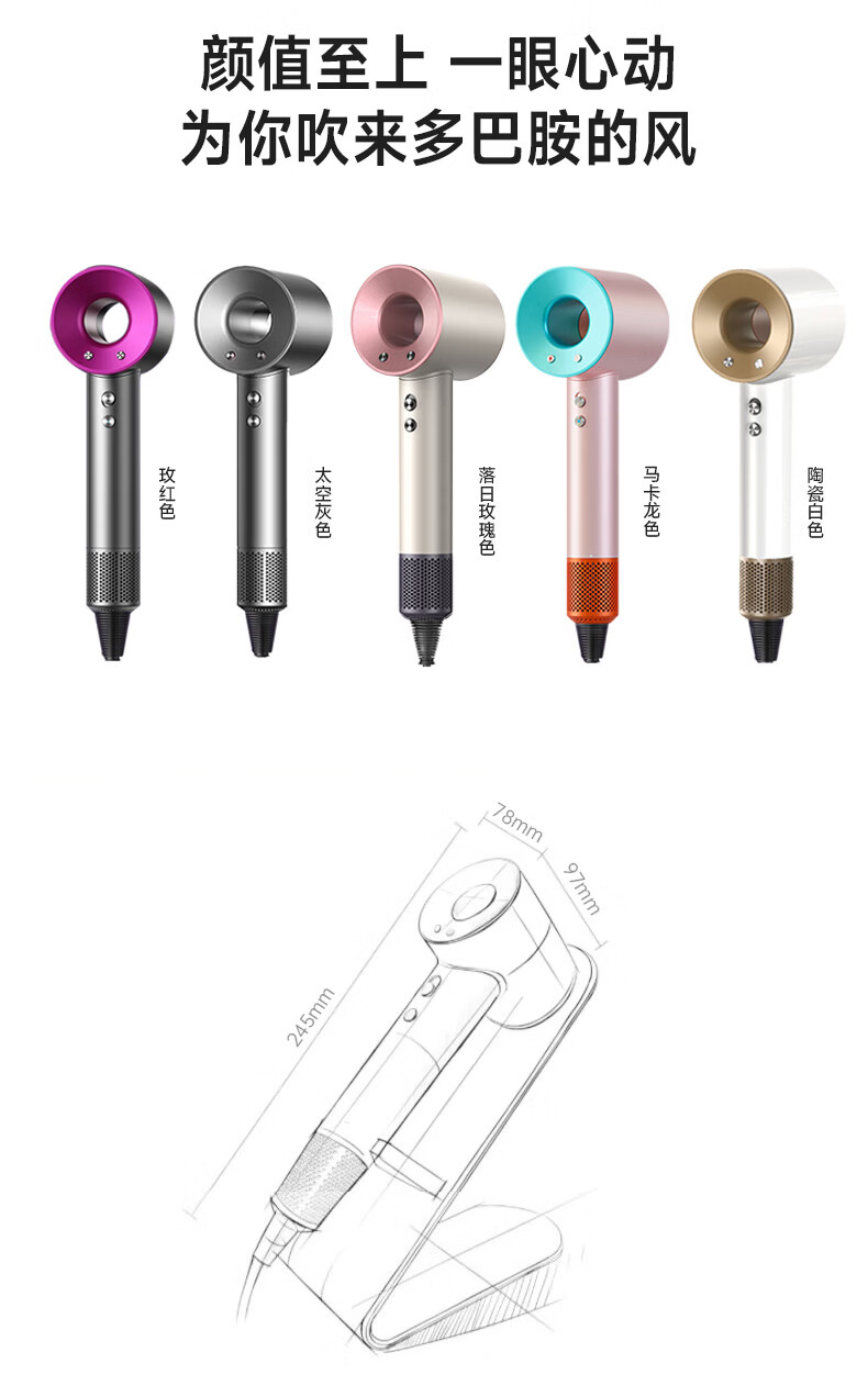 光速博士【3C认证】2亿负离子吹风机1600W大功率速干电吹风筒 家用静音恒温护发不伤发 高速柔顺男女士专用 【官方顶配-磨砂紫-单风嘴】2亿水润负离子护发