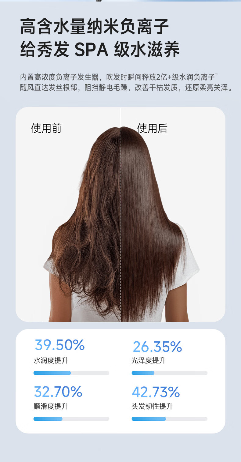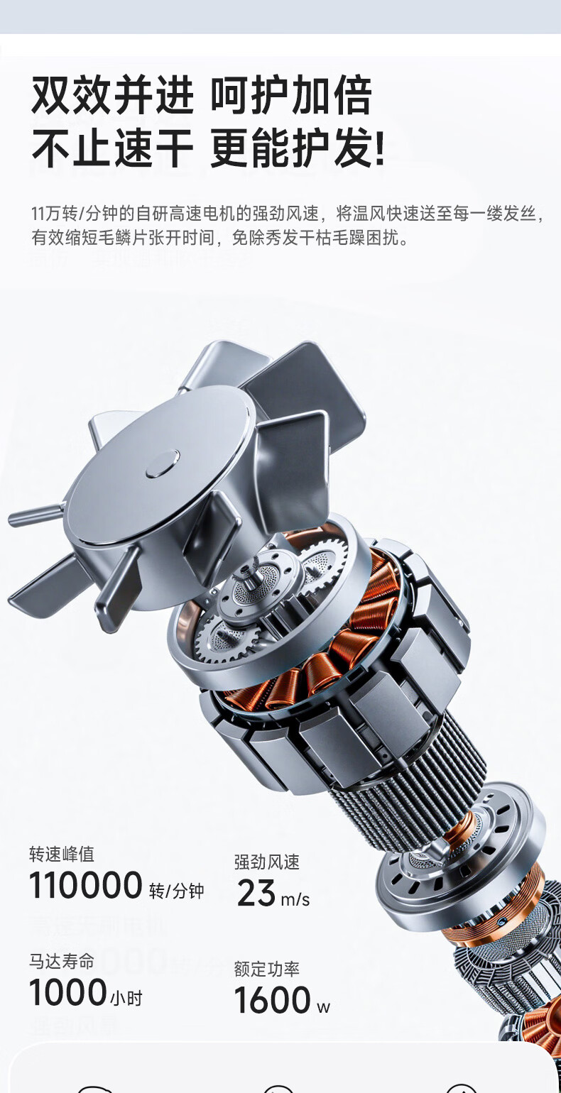 电吹风静音家用护发吹风机负离子学生宿舍大功率高速吹风筒不毛躁 瓷白色 1600功率