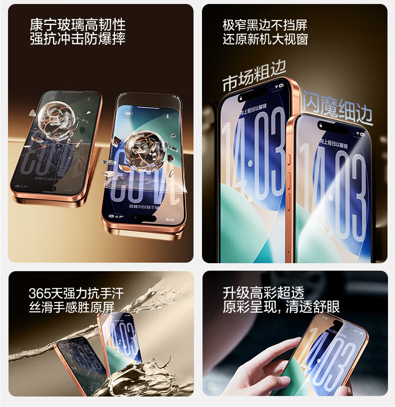 闪魔【工厂直供】适用iPhone13钢化膜15/17promax防摔iPhone16pro苹果14ProMax全屏XS/XR手机16plusair 2片【高清纳米强抗指纹】特防爆 iPhone14