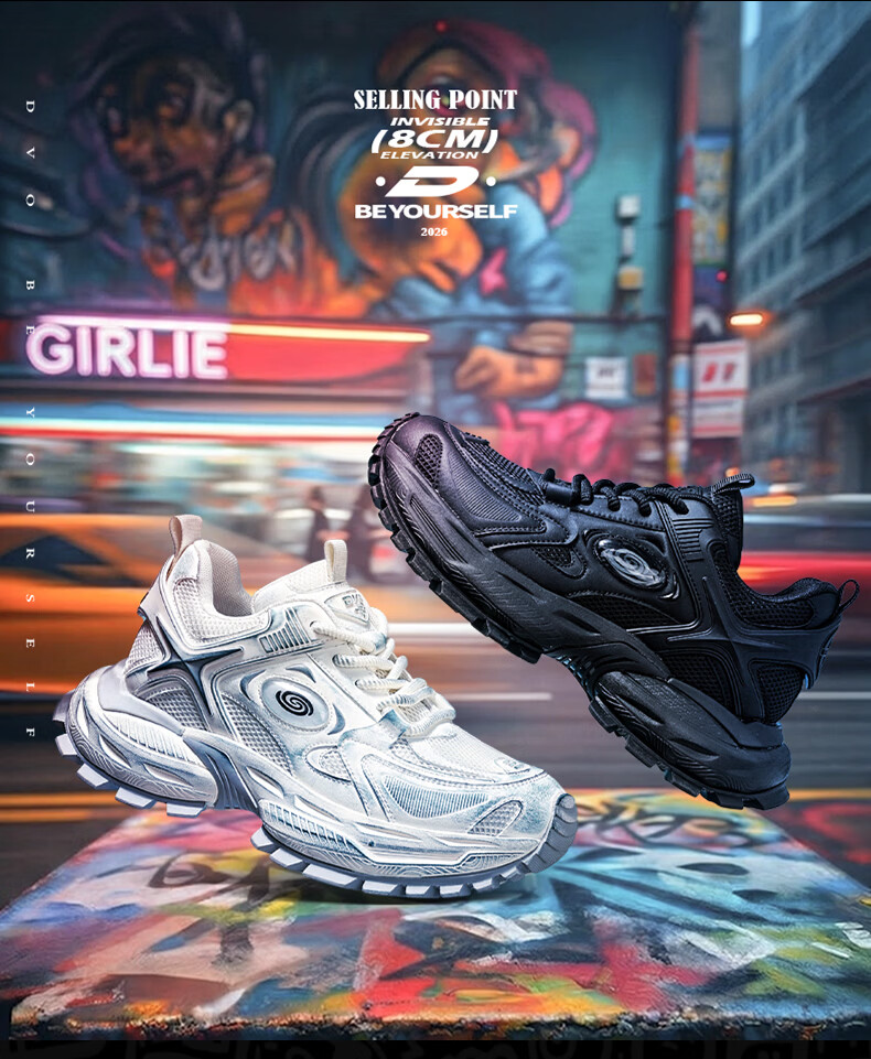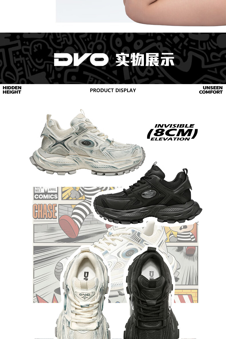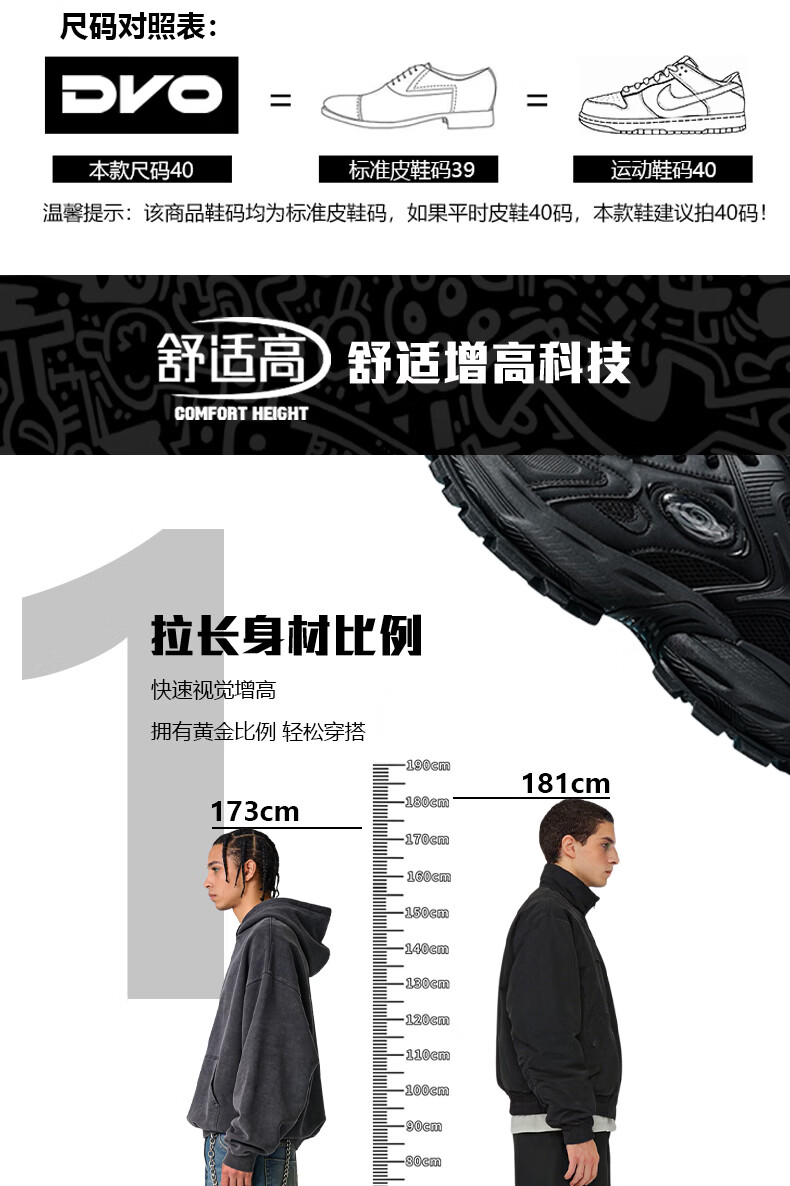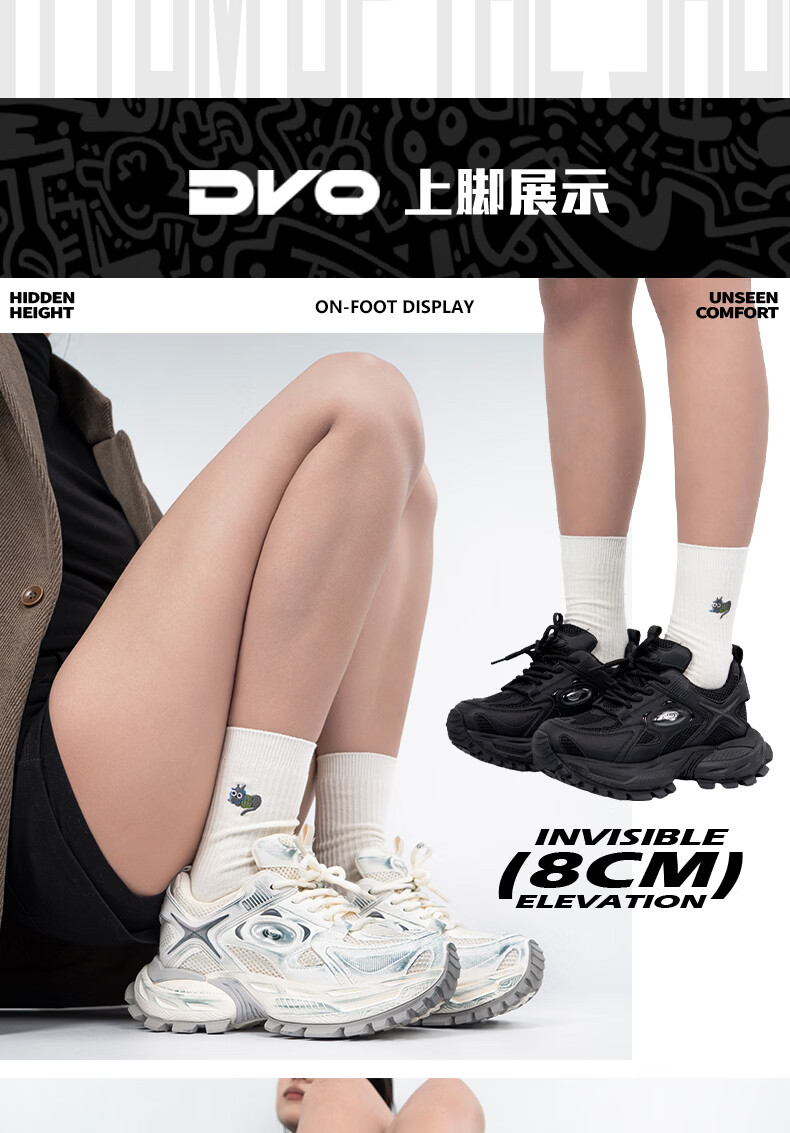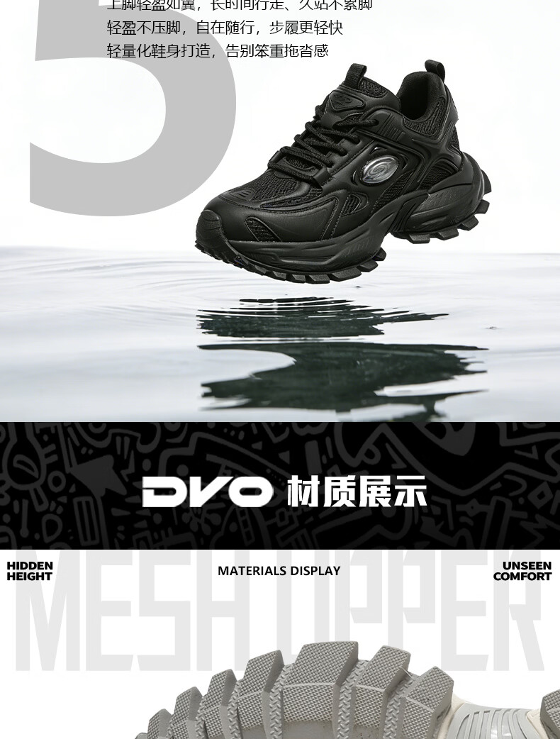 DVO8cm隐形内增高老爹鞋男士爆款潮牌小众百搭厚底轻便运动休闲鞋女 黑色 现货 40 男码