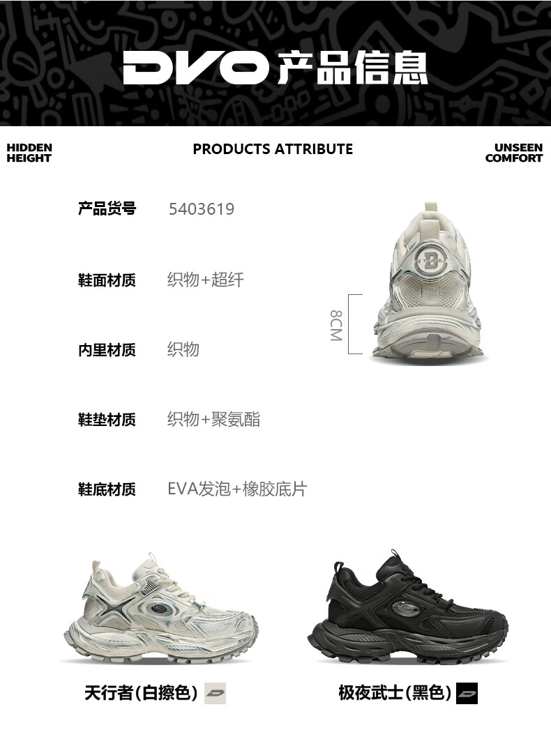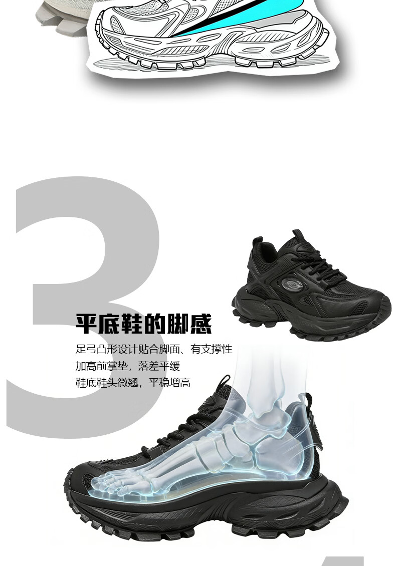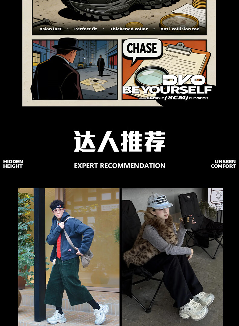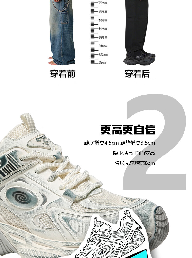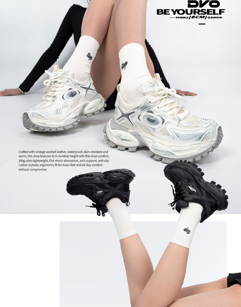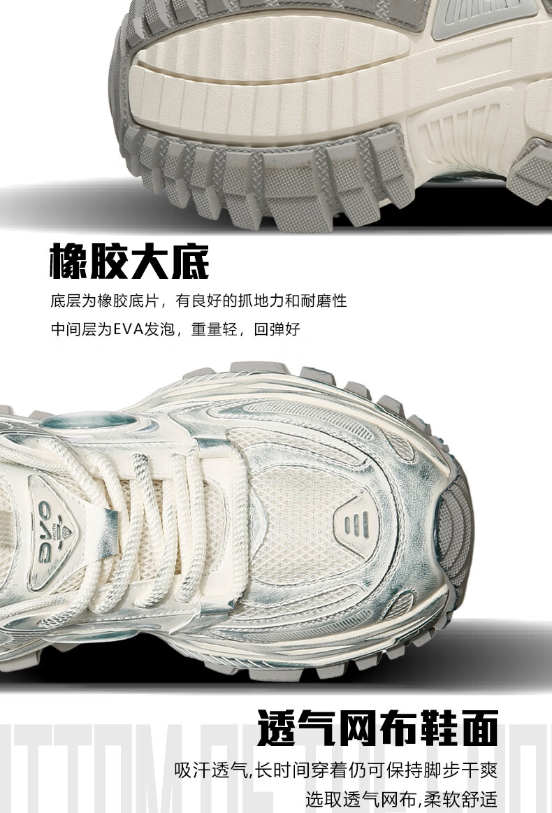 DVO8cm隐形内增高老爹鞋男士爆款潮牌小众百搭厚底轻便运动休闲鞋女 黑色 现货 40 男码