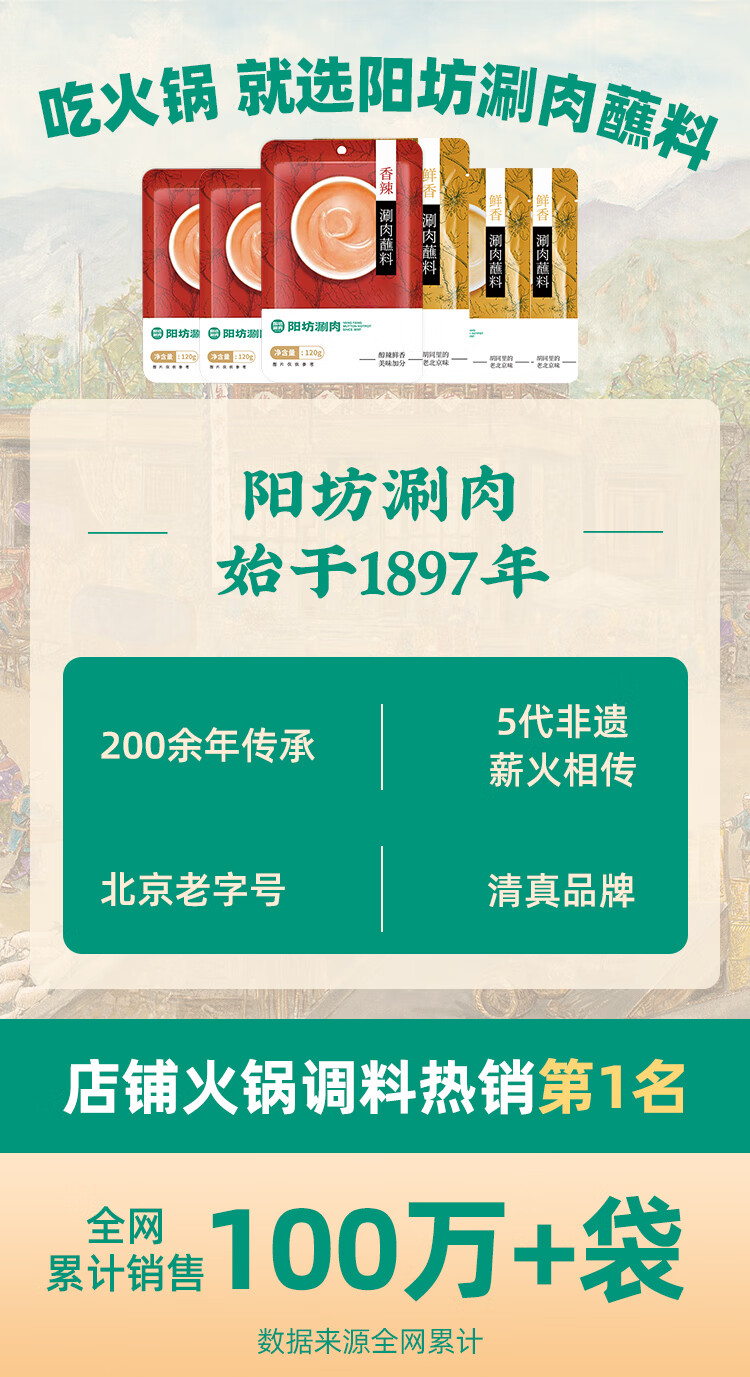 阳坊 门店同款火锅蘸料 老北京涮羊肉蘸料芝麻酱火锅蘸料铜锅涮肉麻酱 店款香辣蘸料120g*10袋