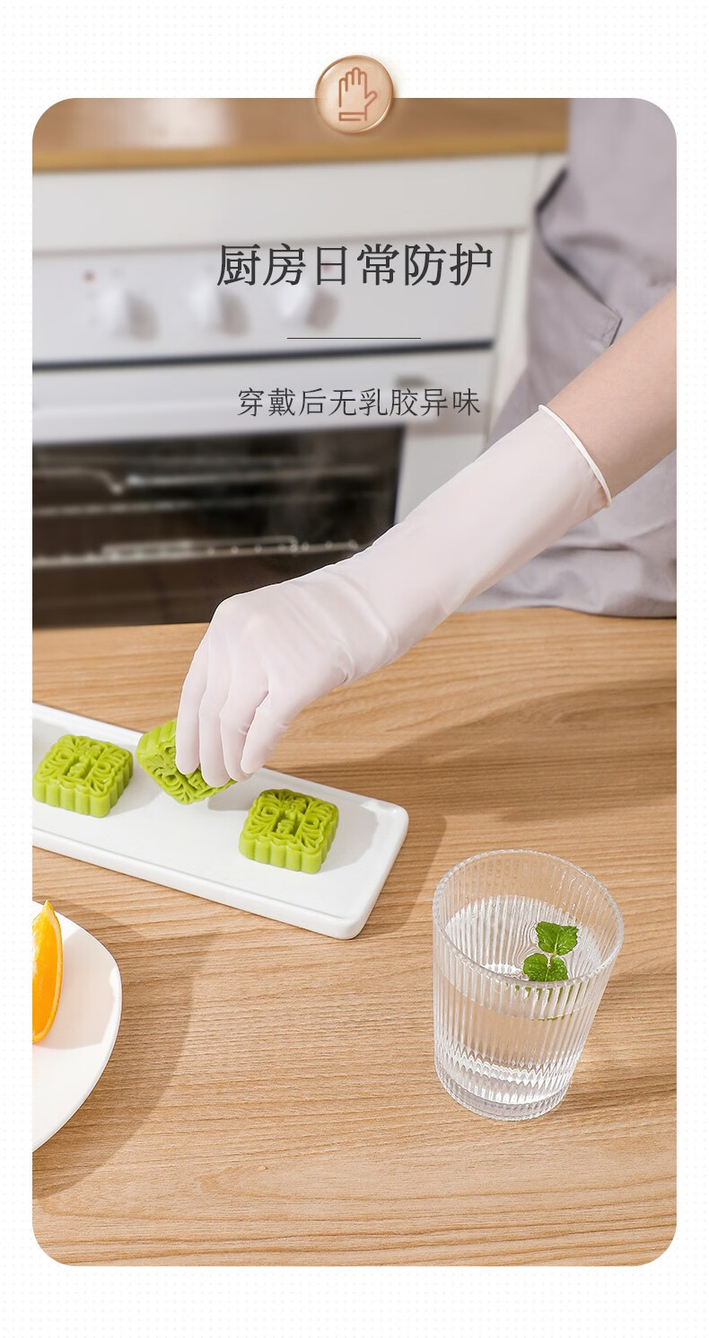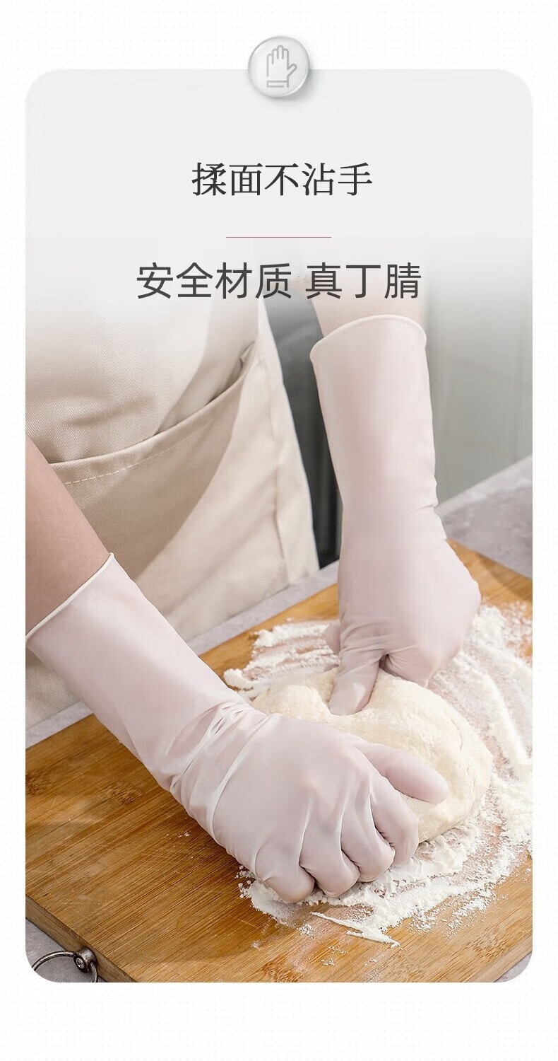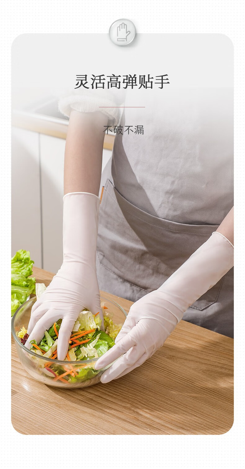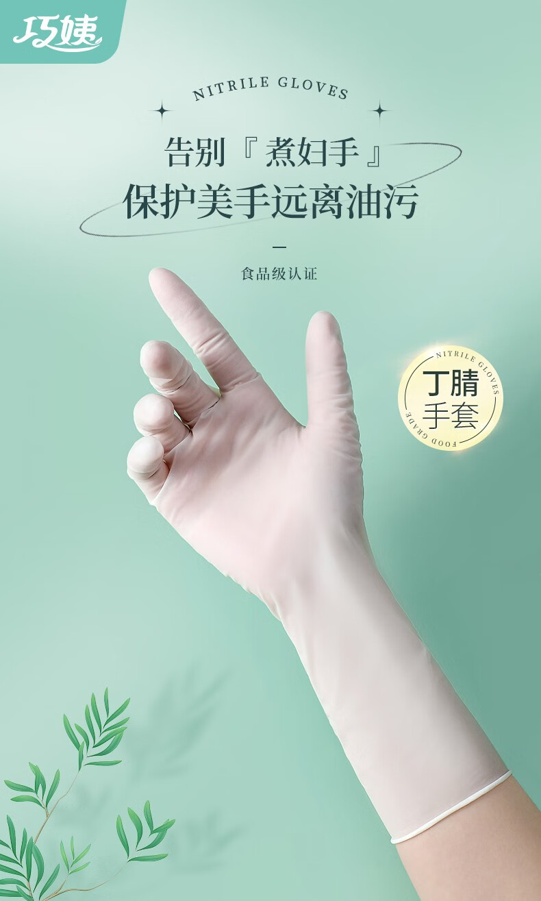 巧姨一次性丁腈手套家务洗碗厨房清洁加长橡胶手套劳保耐磨耐刮不易破 加长丁腈【20只袋装】白色 M中码