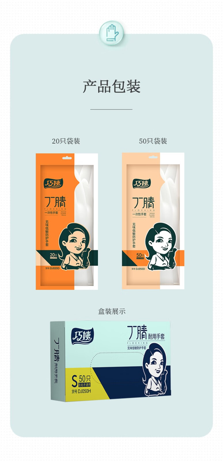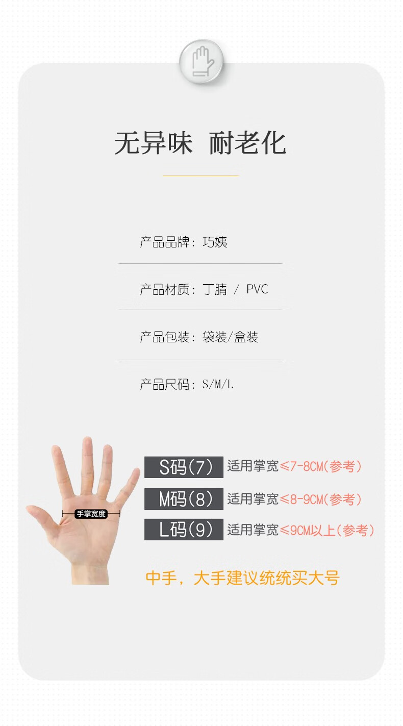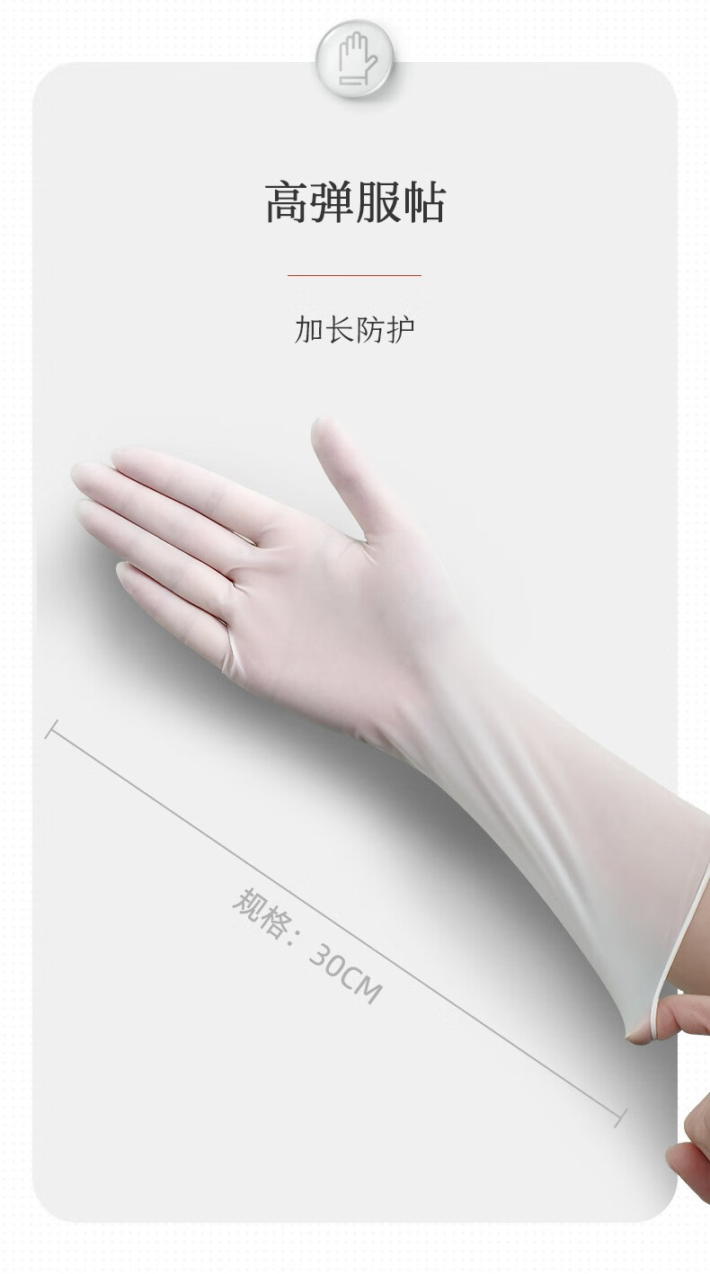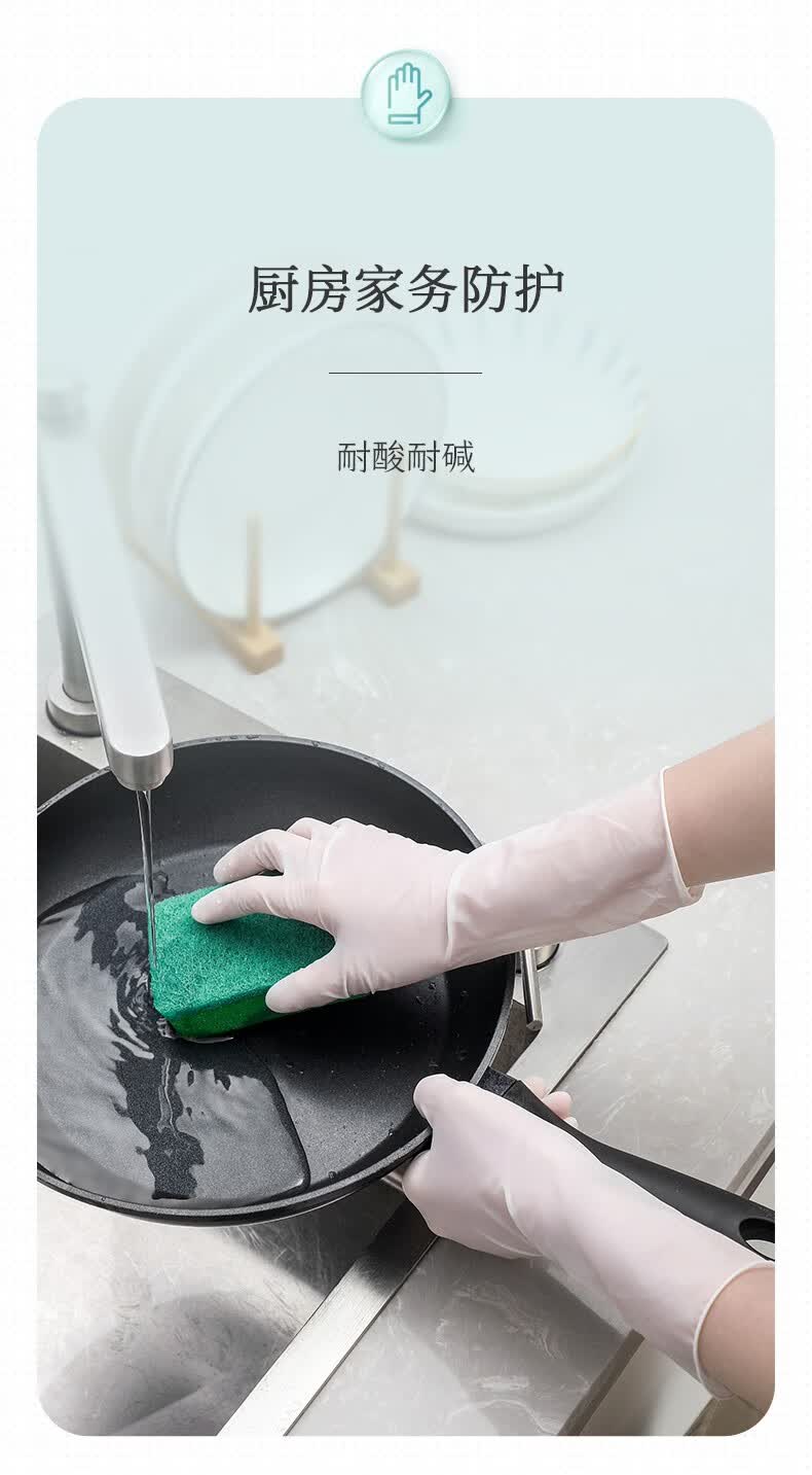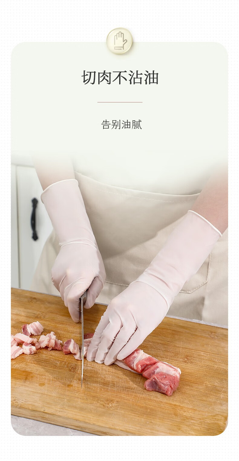 巧姨一次性丁腈手套家务洗碗厨房清洁加长橡胶手套劳保耐磨耐刮不易破 加长丁腈【20只袋装】白色 M中码