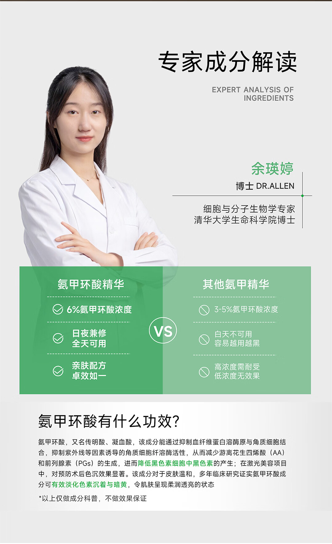自然攻略6%高浓度氨甲环酸黄褐斑祛黄提亮舒缓肌肤精华液淡斑熬夜毛孔皮肤 15ml 【送女朋友必选】