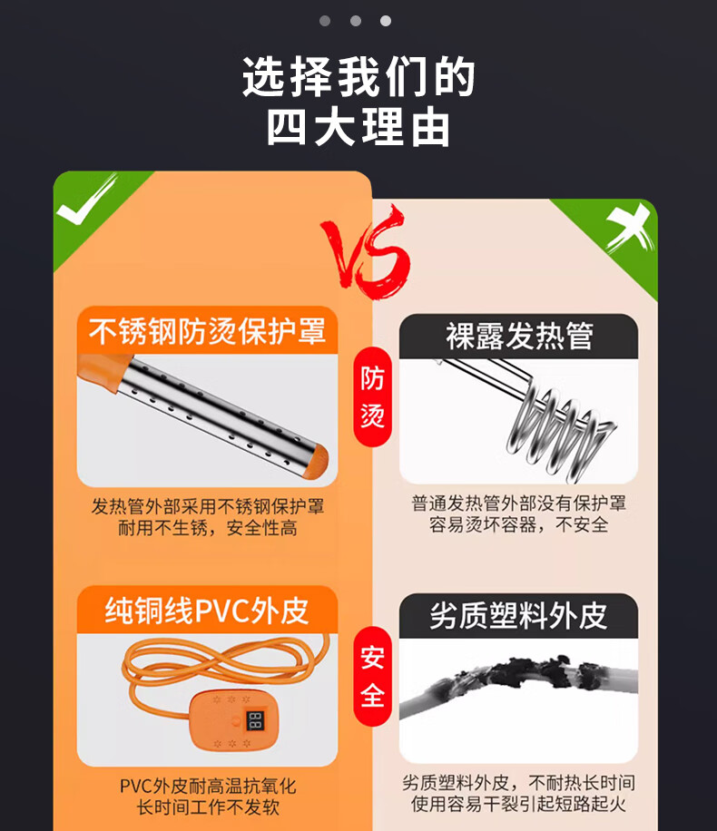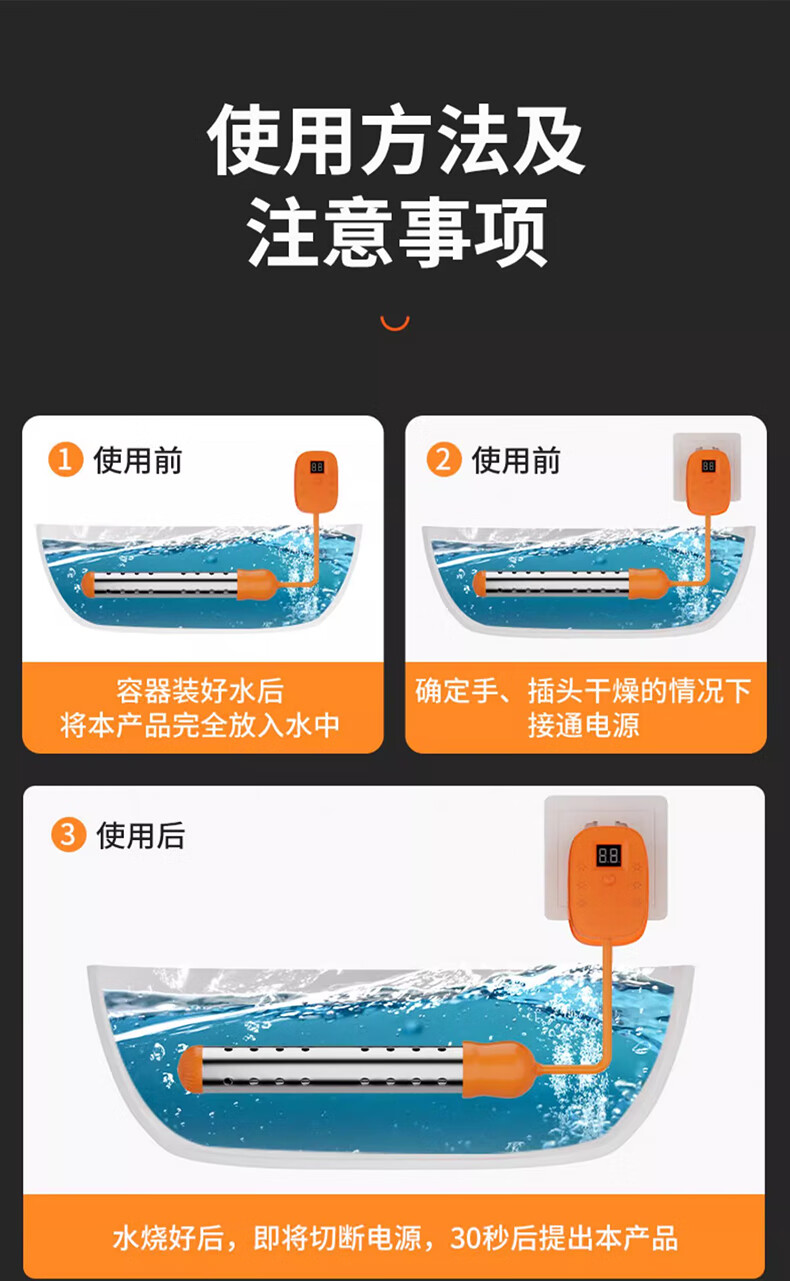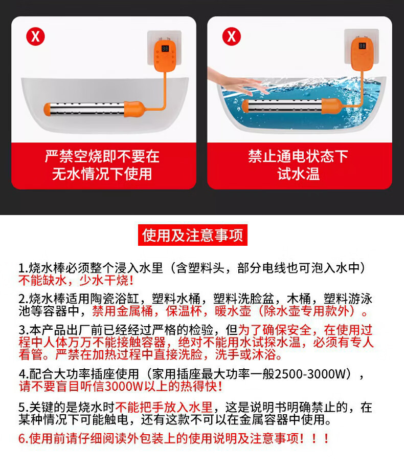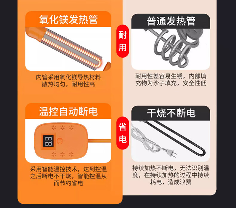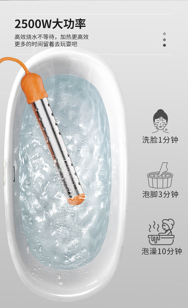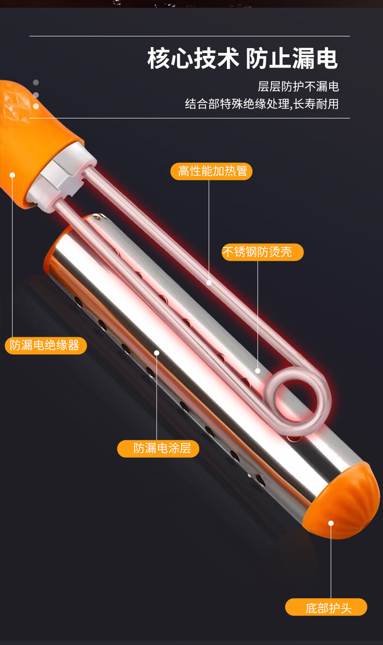 美纳美【第五代】热得快烧水棒家用安全防漏电加热大学生开学洗澡水智能 电热棒热的快烧水神器宿舍神器 【第五代升级】豪华款2500W