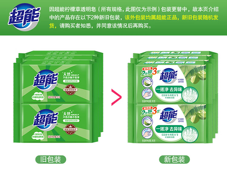 超能 柠檬草透明皂 柠檬草香 260g*6块 温和不刺激 去除异味