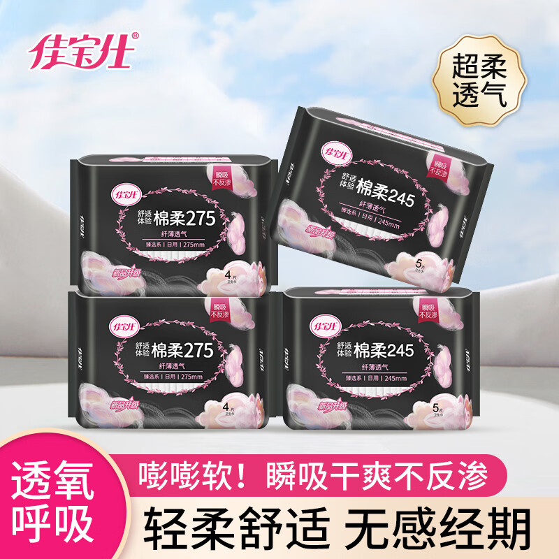 佳宝仕夜用卫生巾棉柔舒适干爽亲肤姨妈巾臻选系列290mm夜用7片/包 棉柔 290mm 7片 共1包