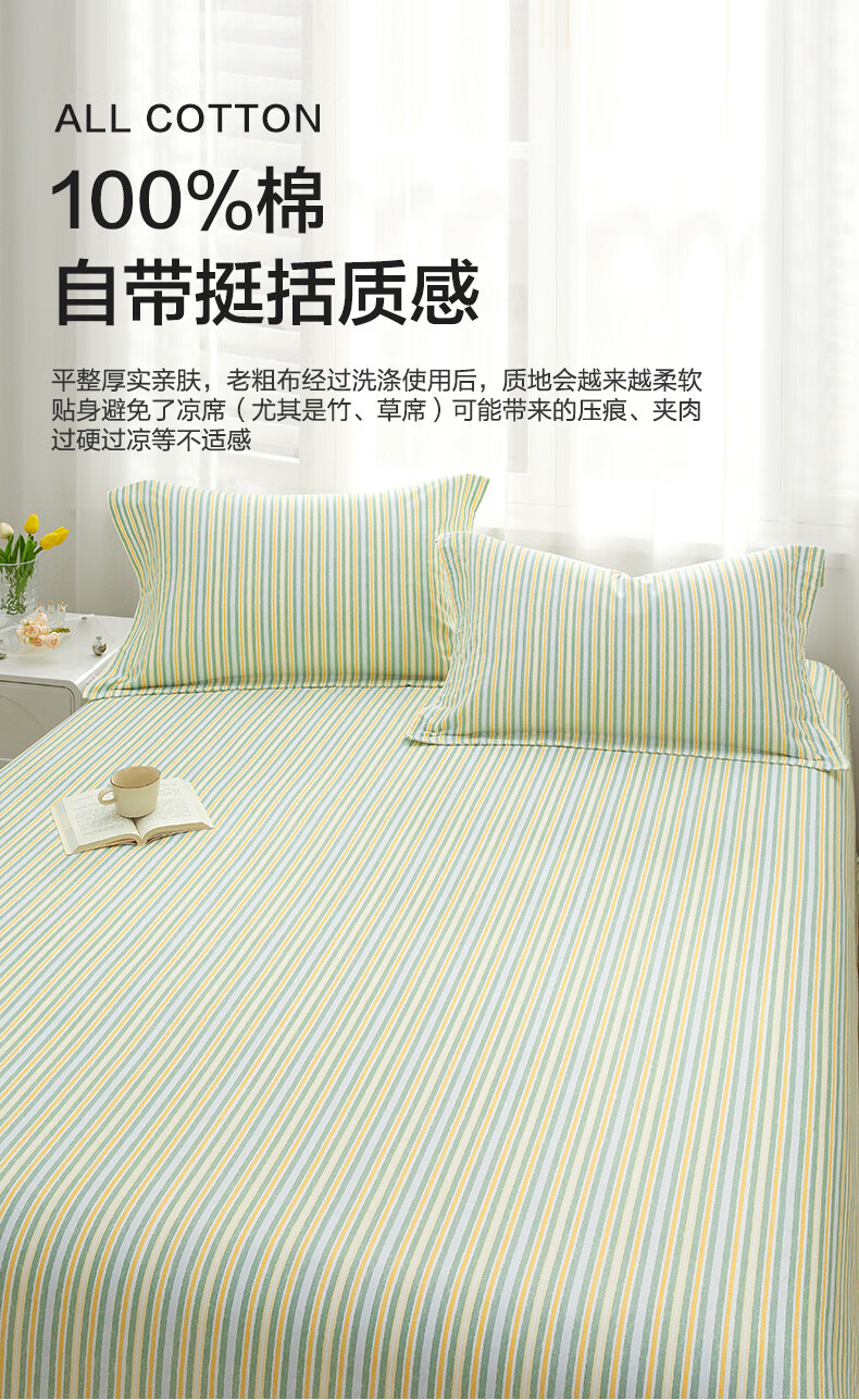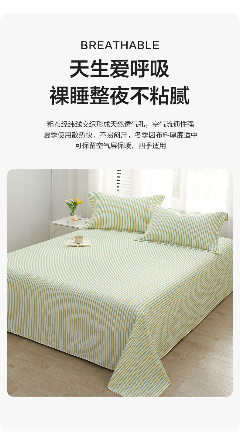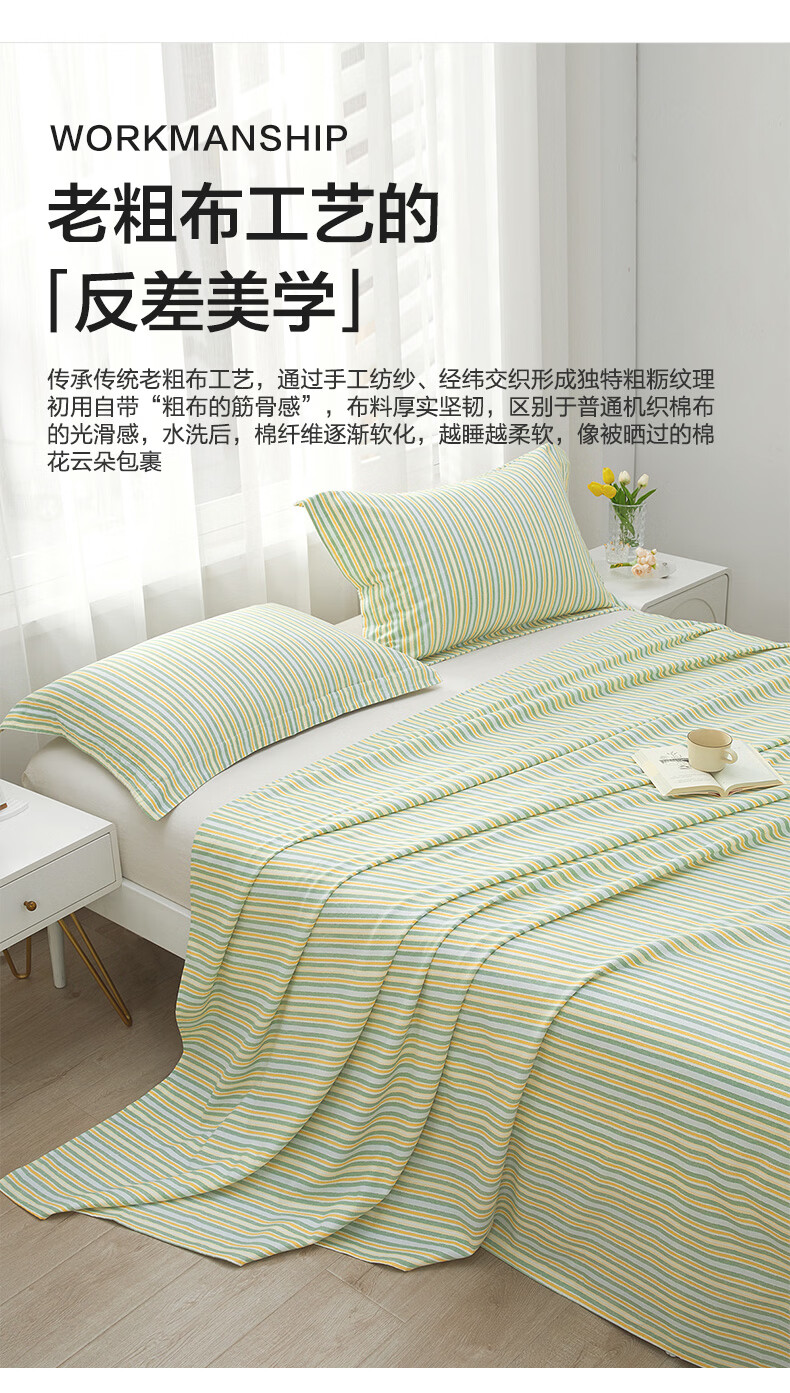 博洋(BEYOND)粗布纯棉单件全棉床单加厚2026新款枕套三件套单人四季通用 【全棉老粗布床单】时光轨迹 160*230cm