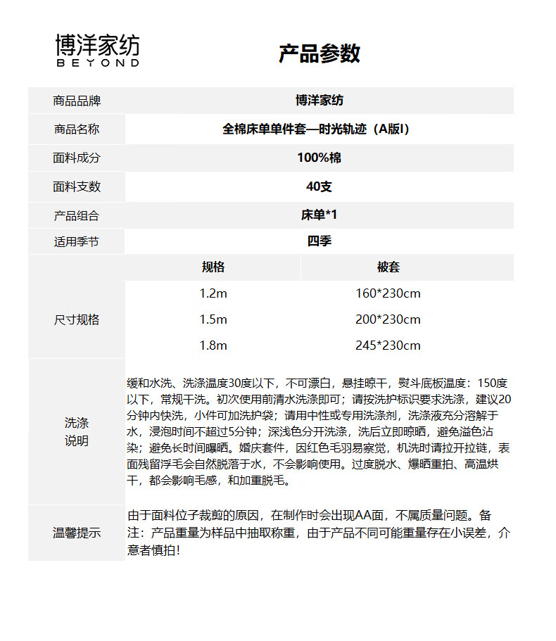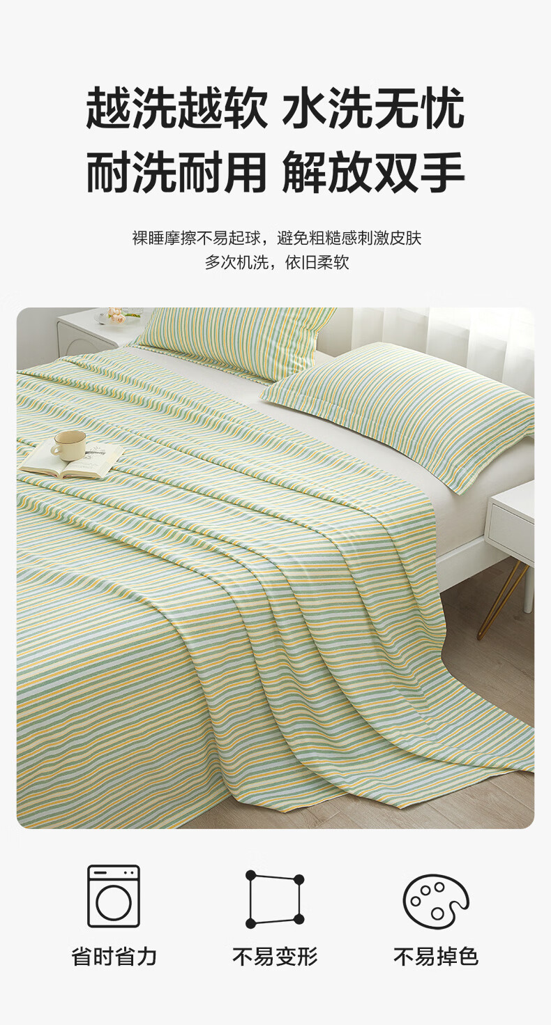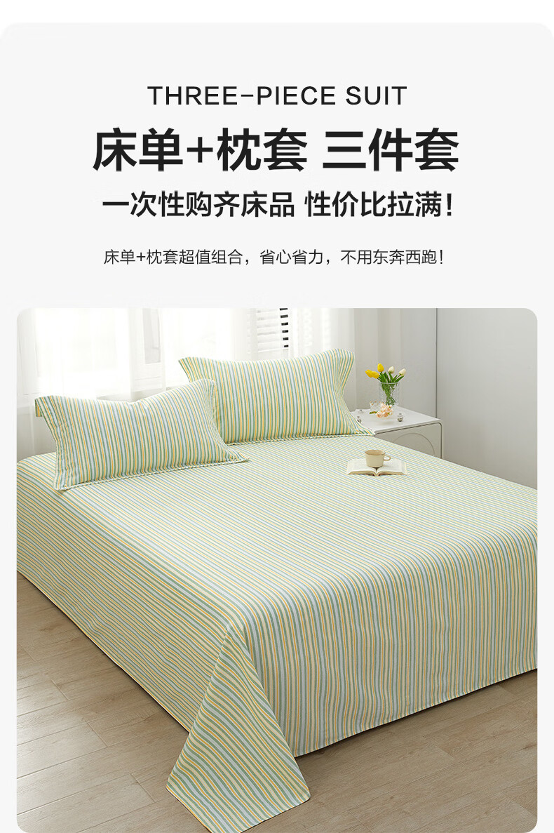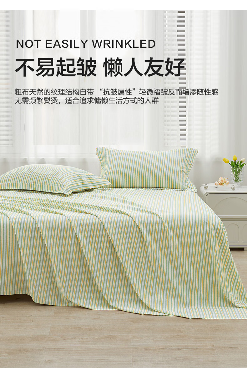 博洋(BEYOND)粗布纯棉单件全棉床单加厚2026新款枕套三件套单人四季通用 【全棉老粗布床单】时光轨迹 160*230cm
