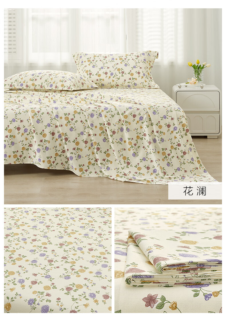 无印良品全棉床品四件套纯棉100%小清新花卉风单双人四季通用可裸睡三件套 苏屿【全棉面料 清新印花】 1.8m 床单款 被套200*230cm