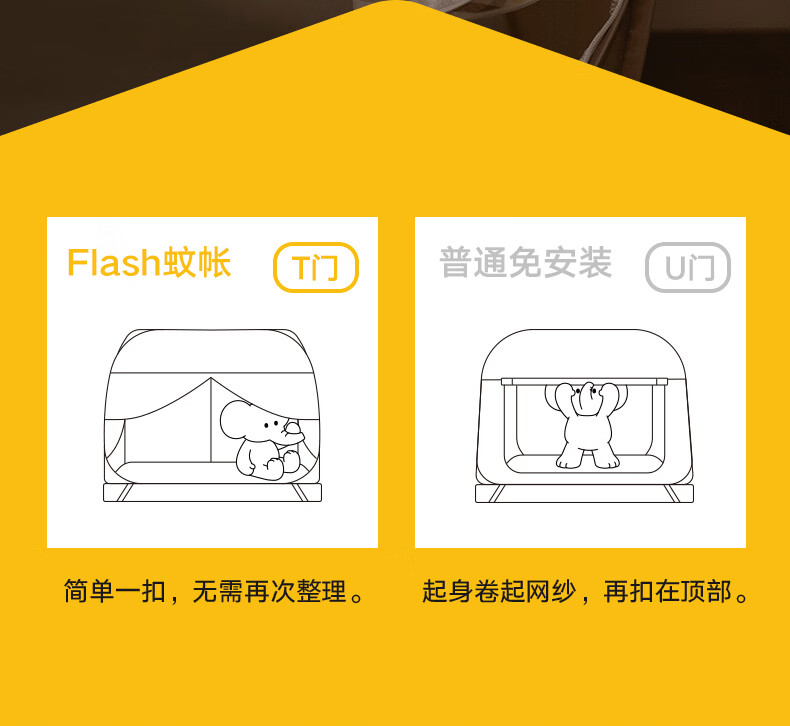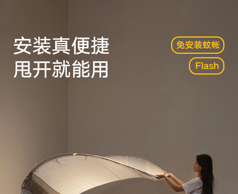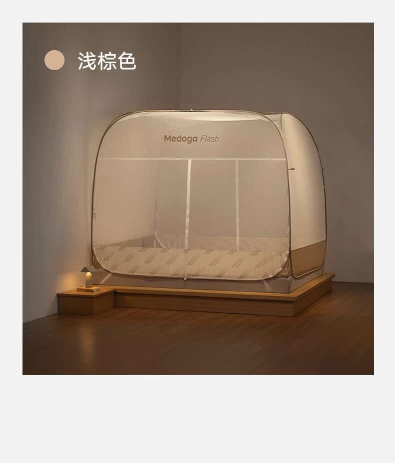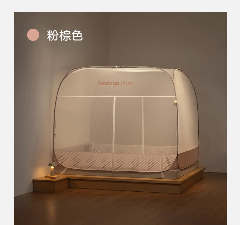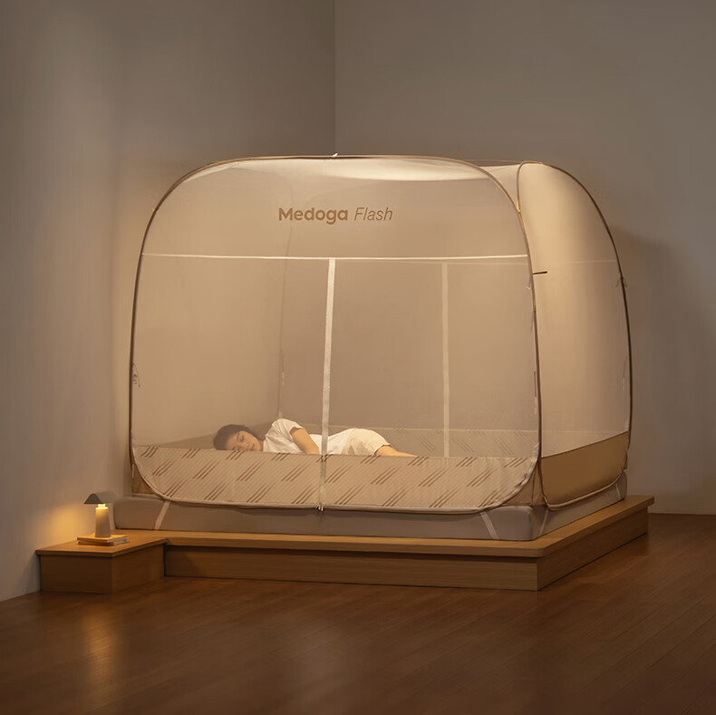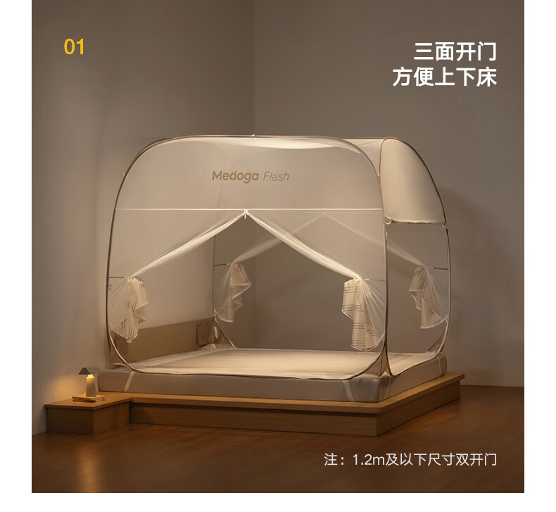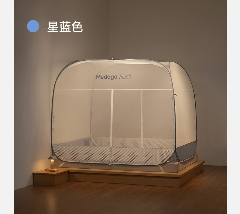 美朵嘉(MEDOGA)26年新款Flash免安装蚊帐T型三开门可折叠加密网眼蒙古包1.8米床 星蓝色【免安装款·T门】双丝加密网纱 1.8m床(180*200*165cm)±2