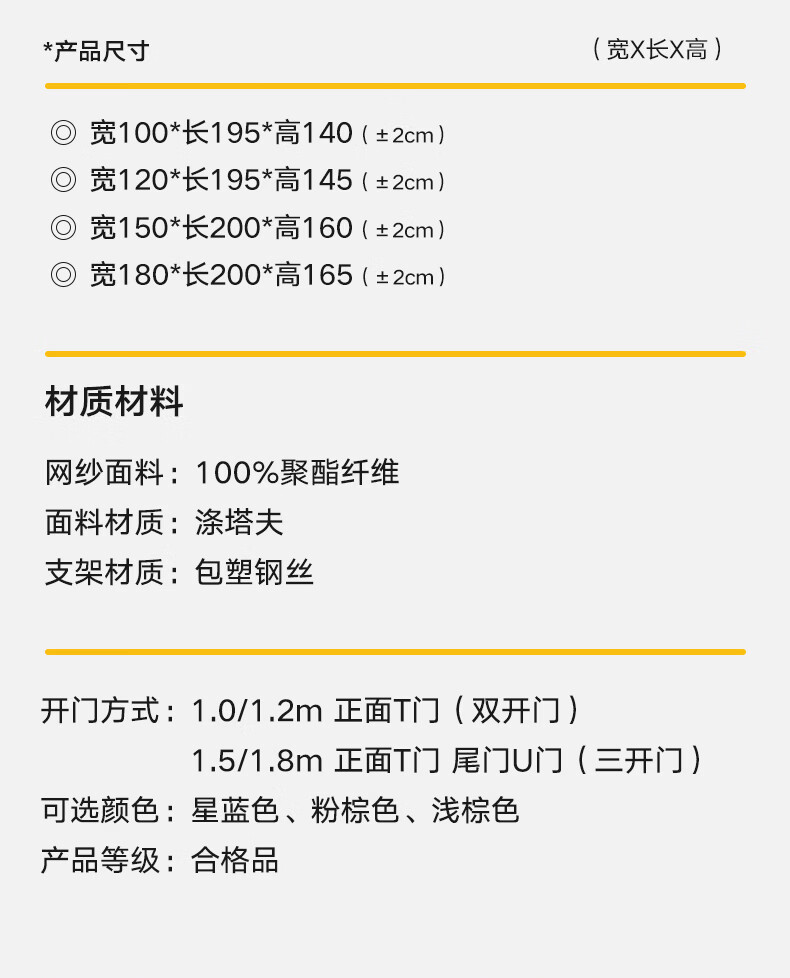 高睿2026新款全底坐床式蚊帐三开门防摔卧室家用全底加密儿童加密蚊帐 咖色豚鼠【A类抗菌帐纱+防蚊防摔】全底三门 适用1.5m床【免拼接支架】绑带固定