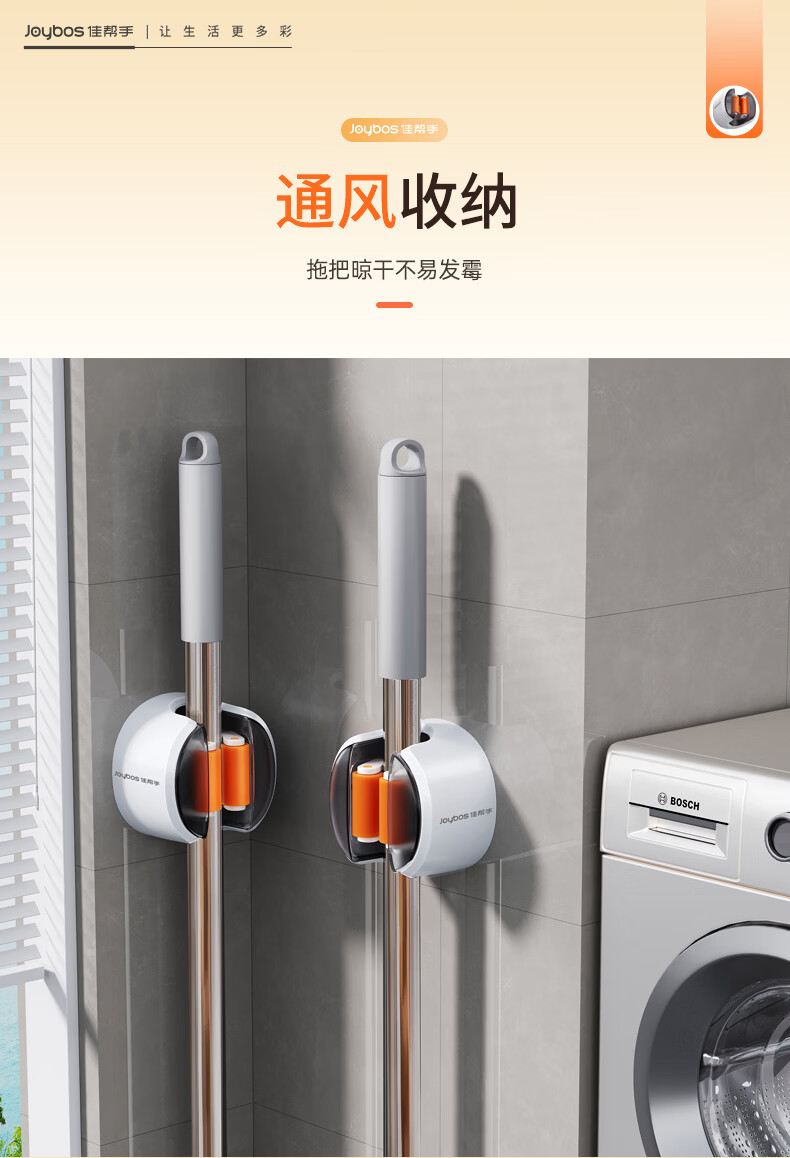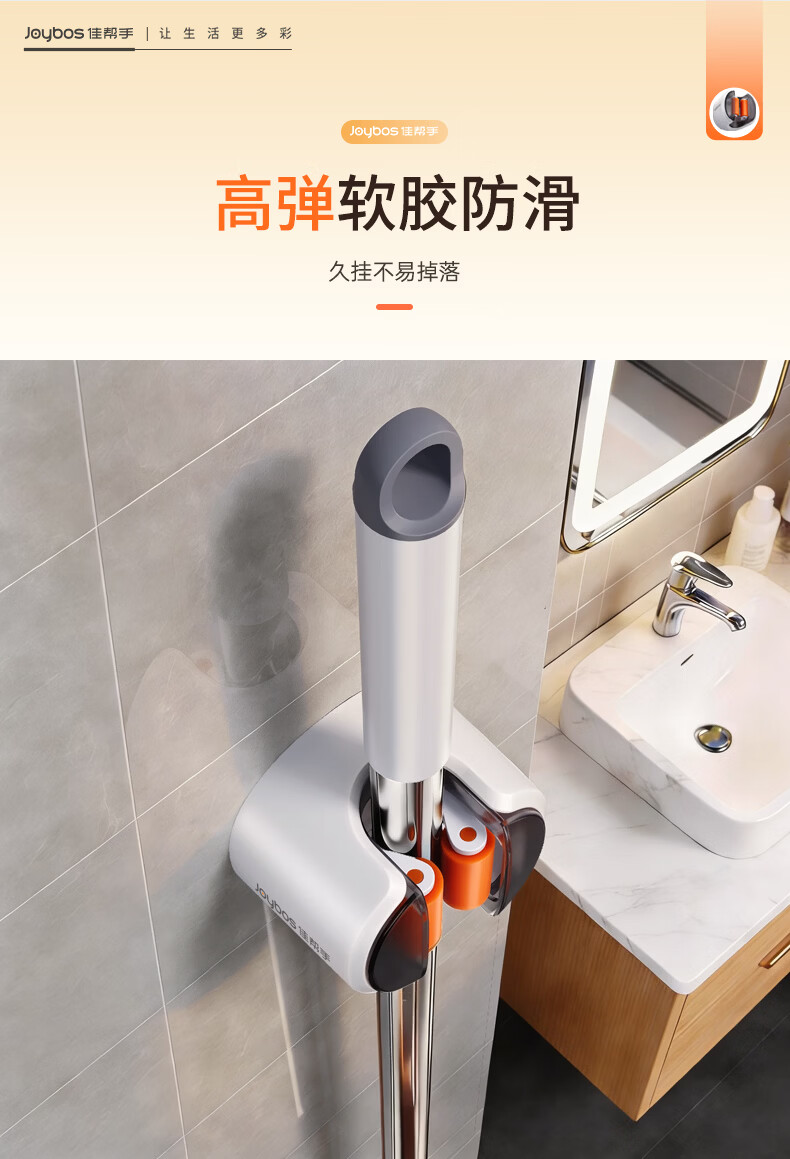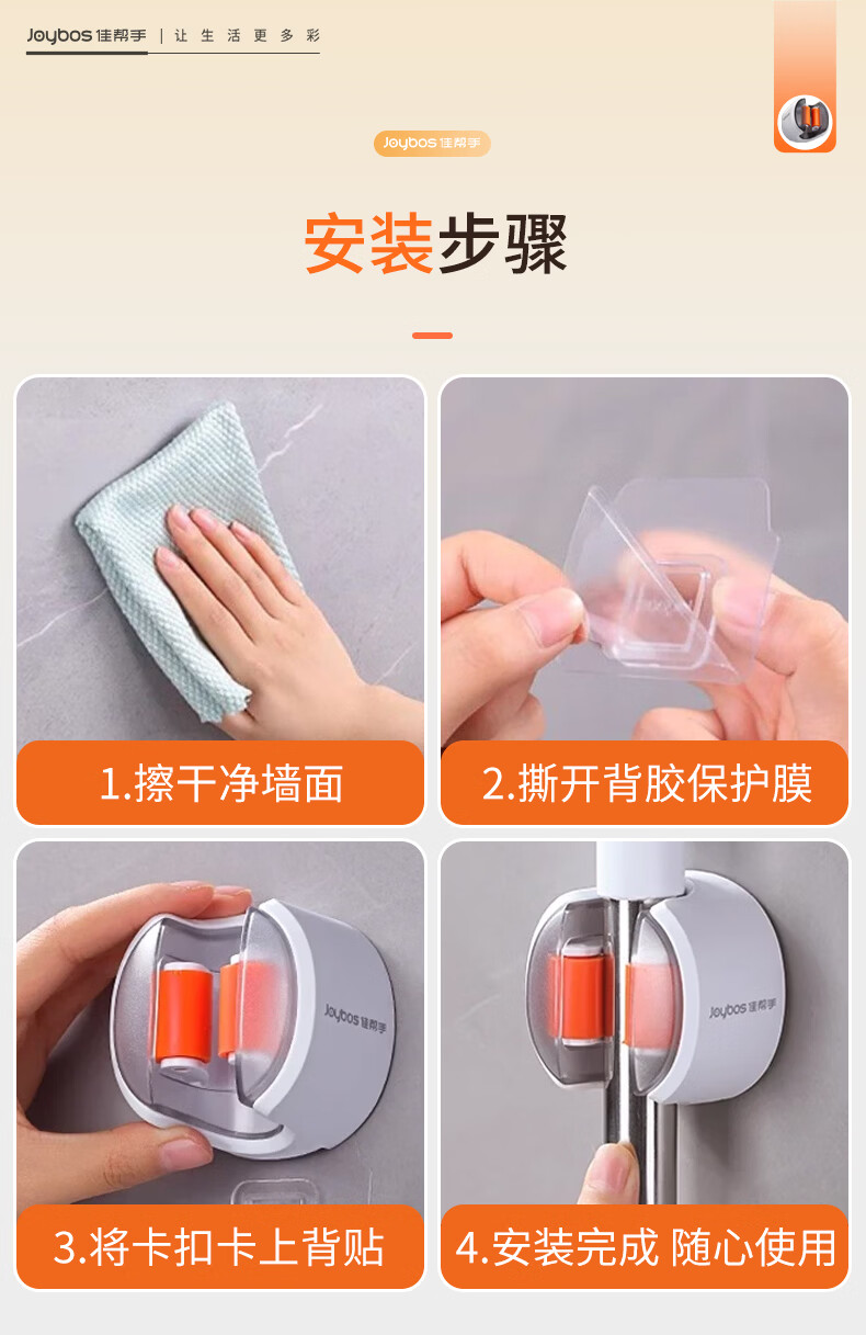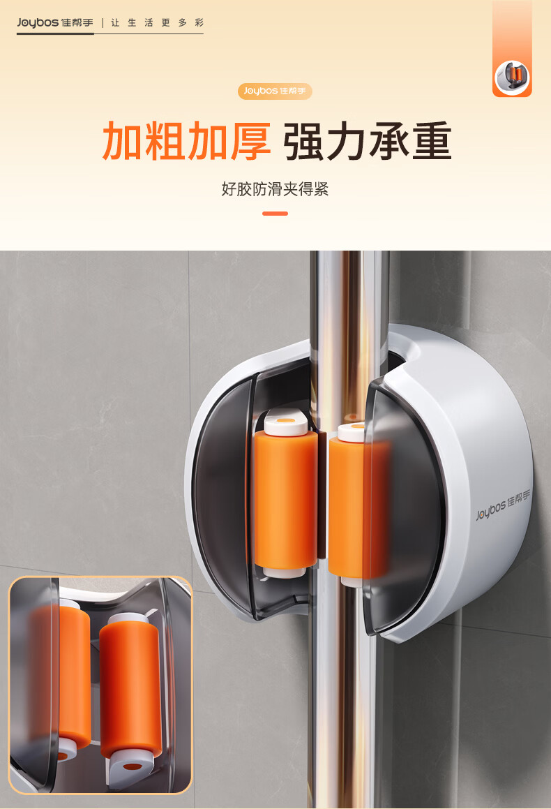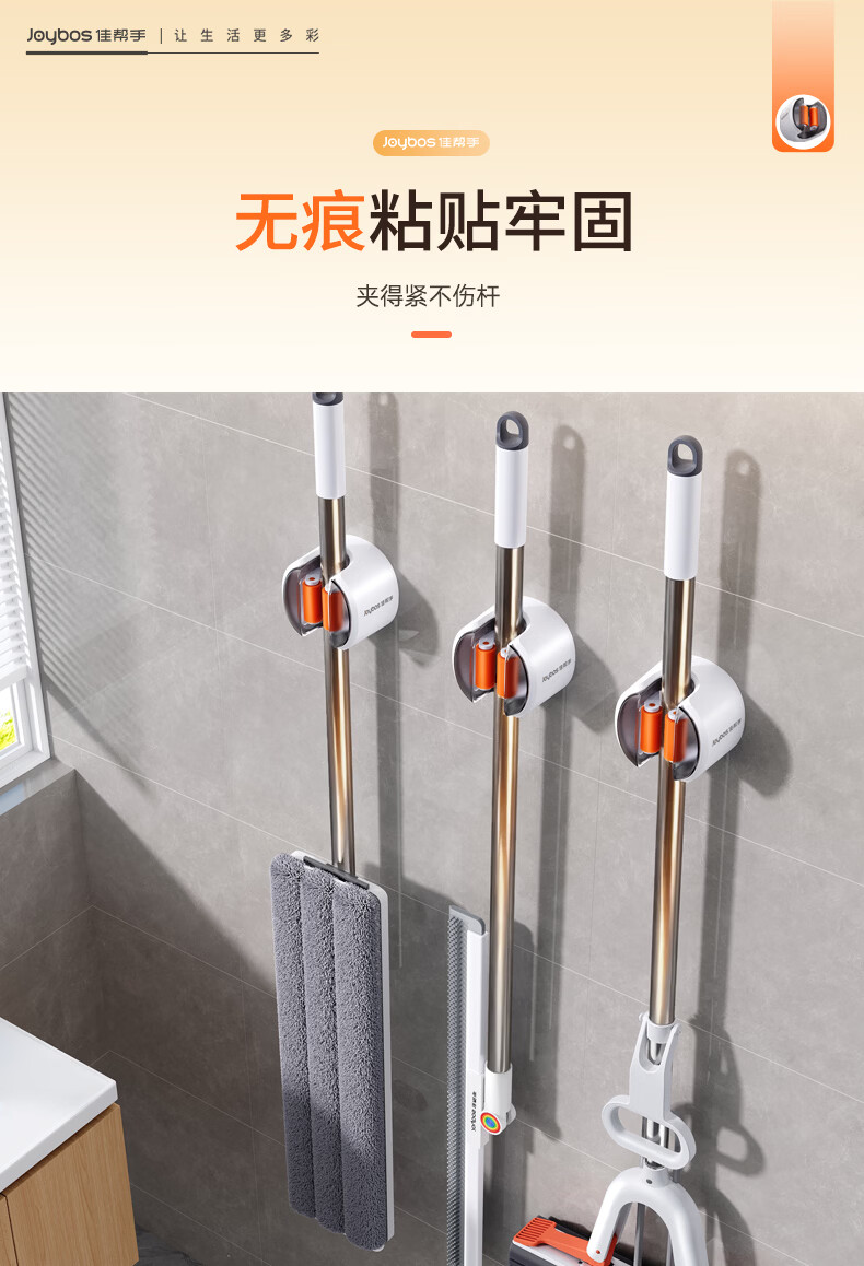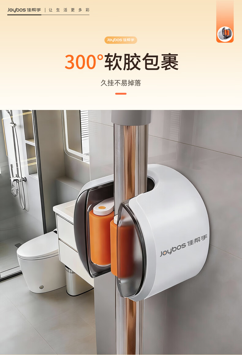 佳帮手拖把夹2026新款壁挂免打孔拖把挂钩门后卫生间浴室收纳神器套装 软胶轴壁挂夹 透明防尘4件