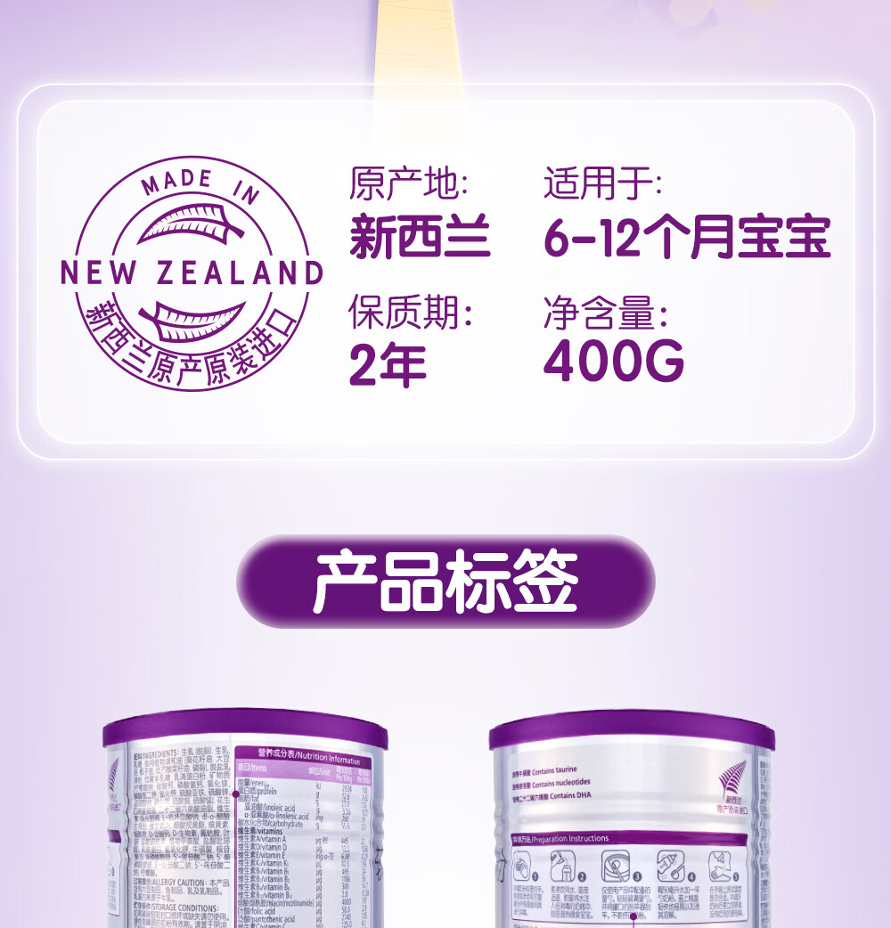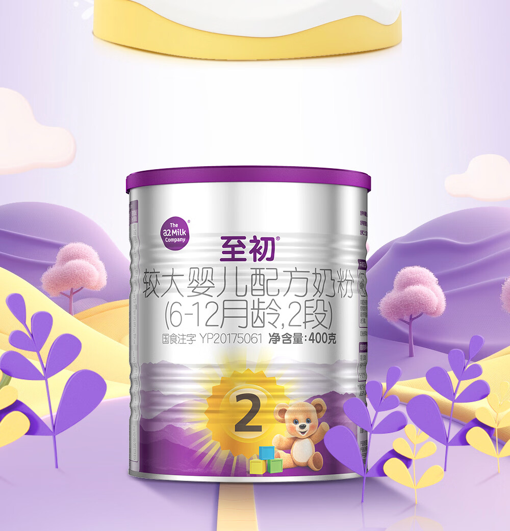a2至初 2段奶粉较大婴幼儿配方奶粉400g 6-12月龄礼盒装 含乳铁蛋白