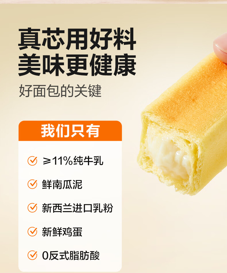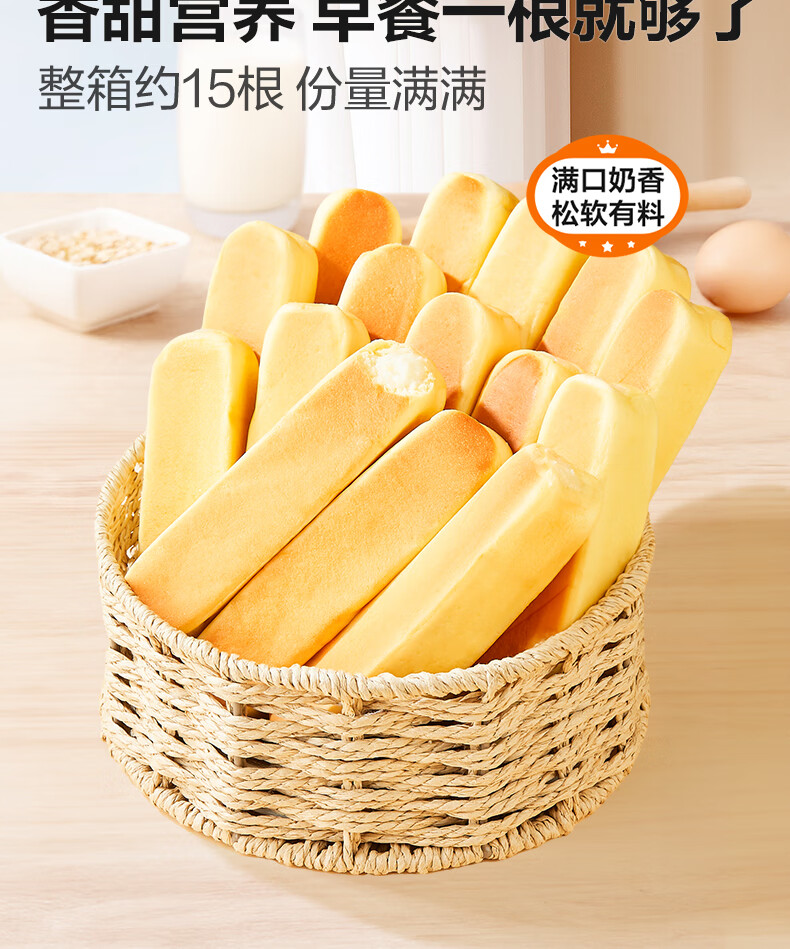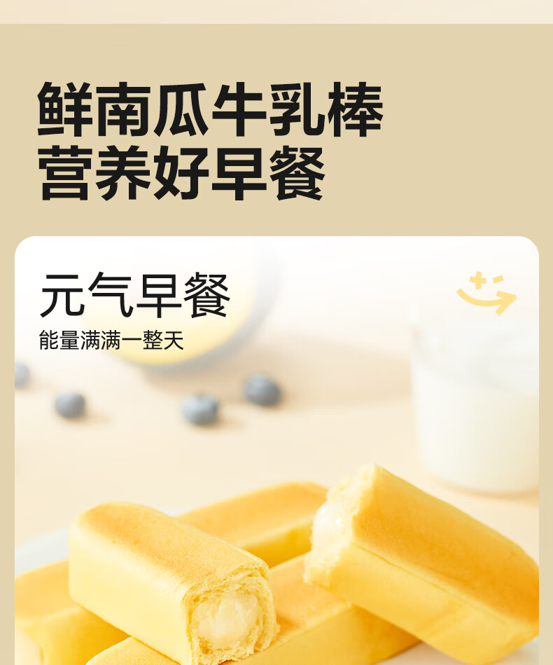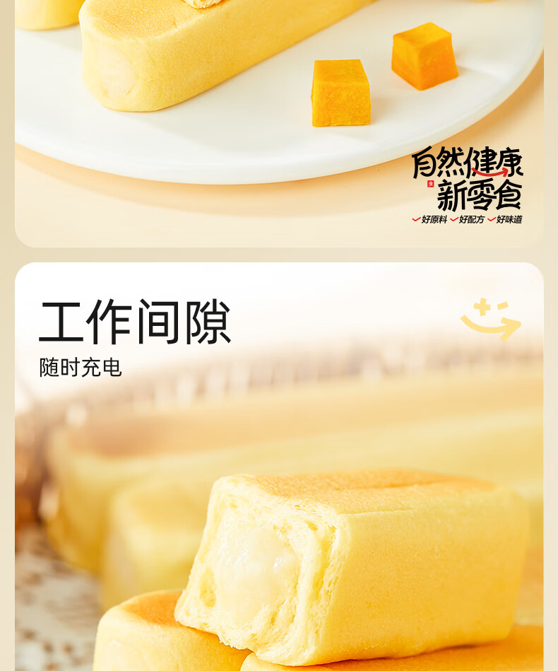 良品铺子鲜南瓜牛乳面包棒500g早餐代餐0蔗糖牛奶面包点心办公室零食