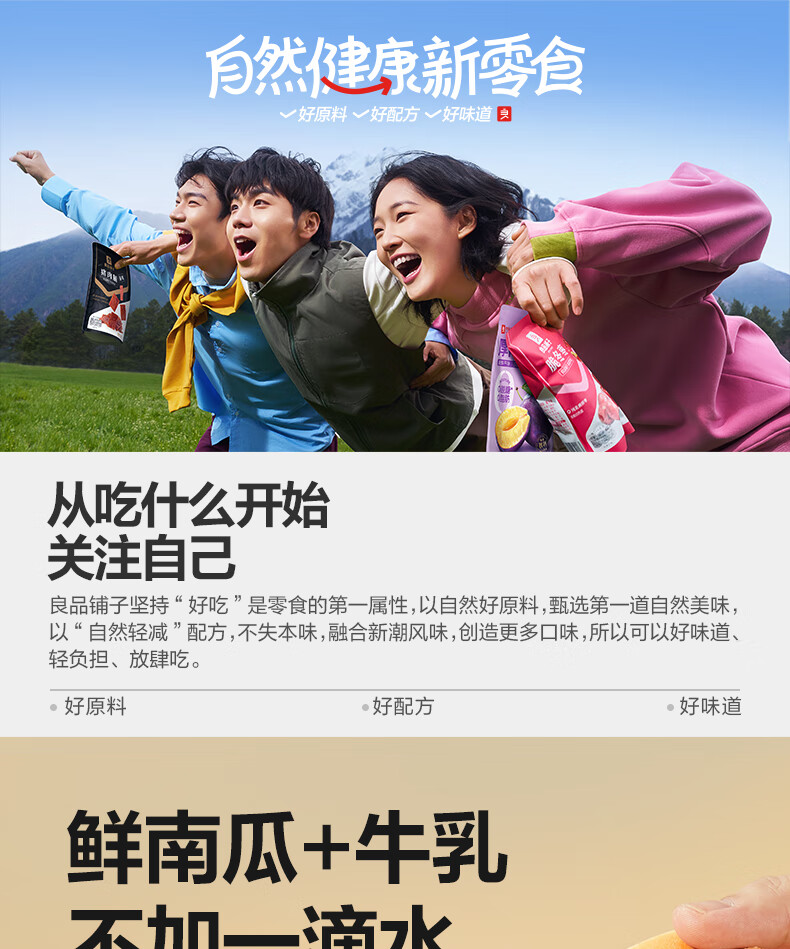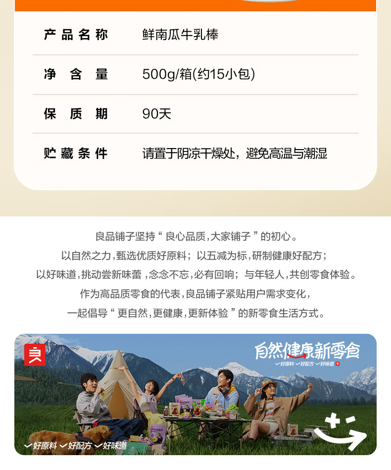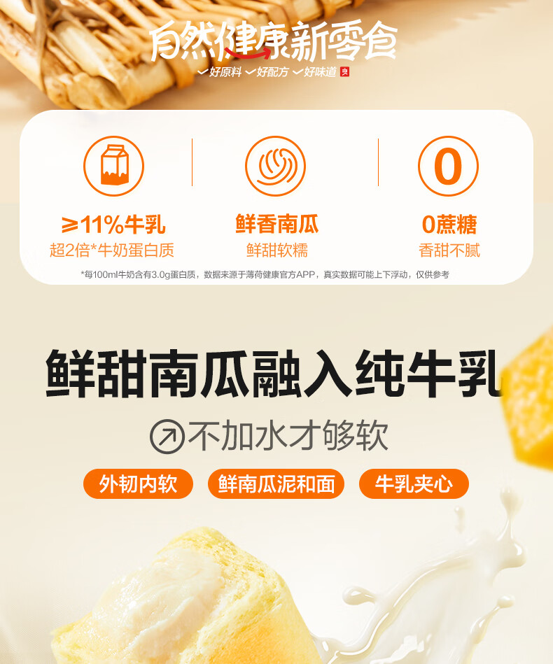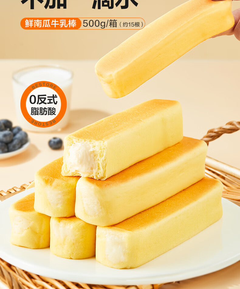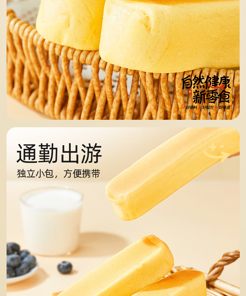 良品铺子鲜南瓜牛乳面包棒500g早餐代餐0蔗糖牛奶面包点心办公室零食