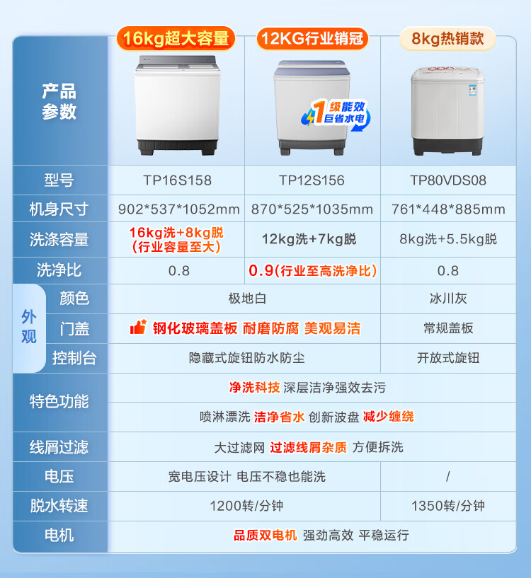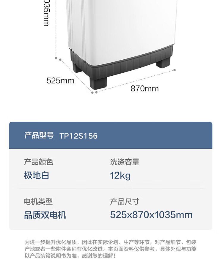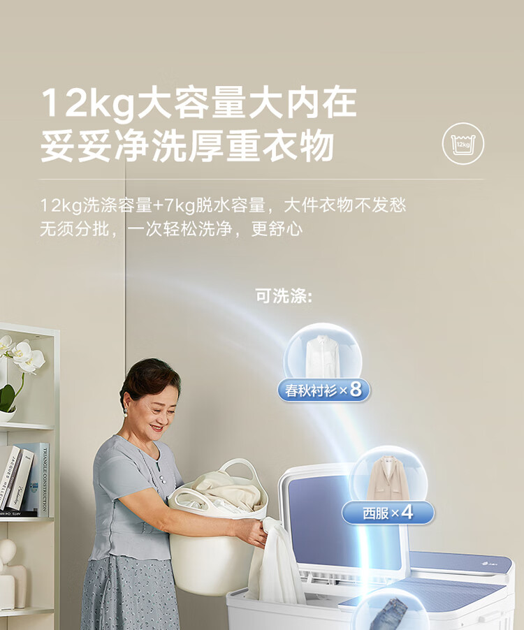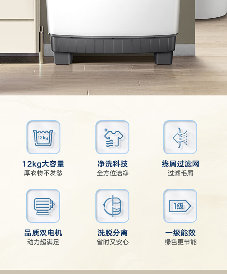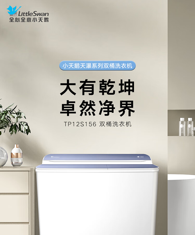 小天鹅(LittleSwan)双桶双缸洗衣机半自动 12公斤大容量 强力去污洗大件 节能 TP12S156 以旧换新 国家补贴 一级能效