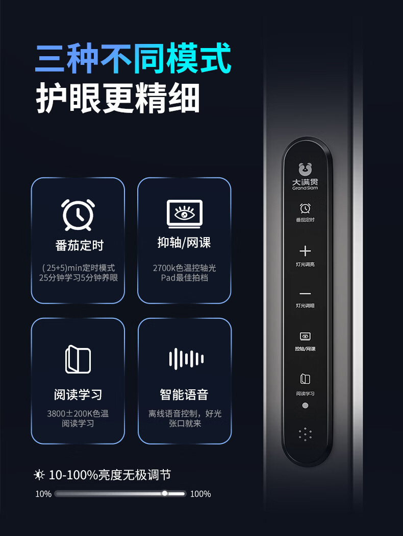 大满贯控轴全光谱护眼灯学生学习台灯儿童防近视大路灯中科M光谱pro 【白色】M光谱桌面大路灯36W
