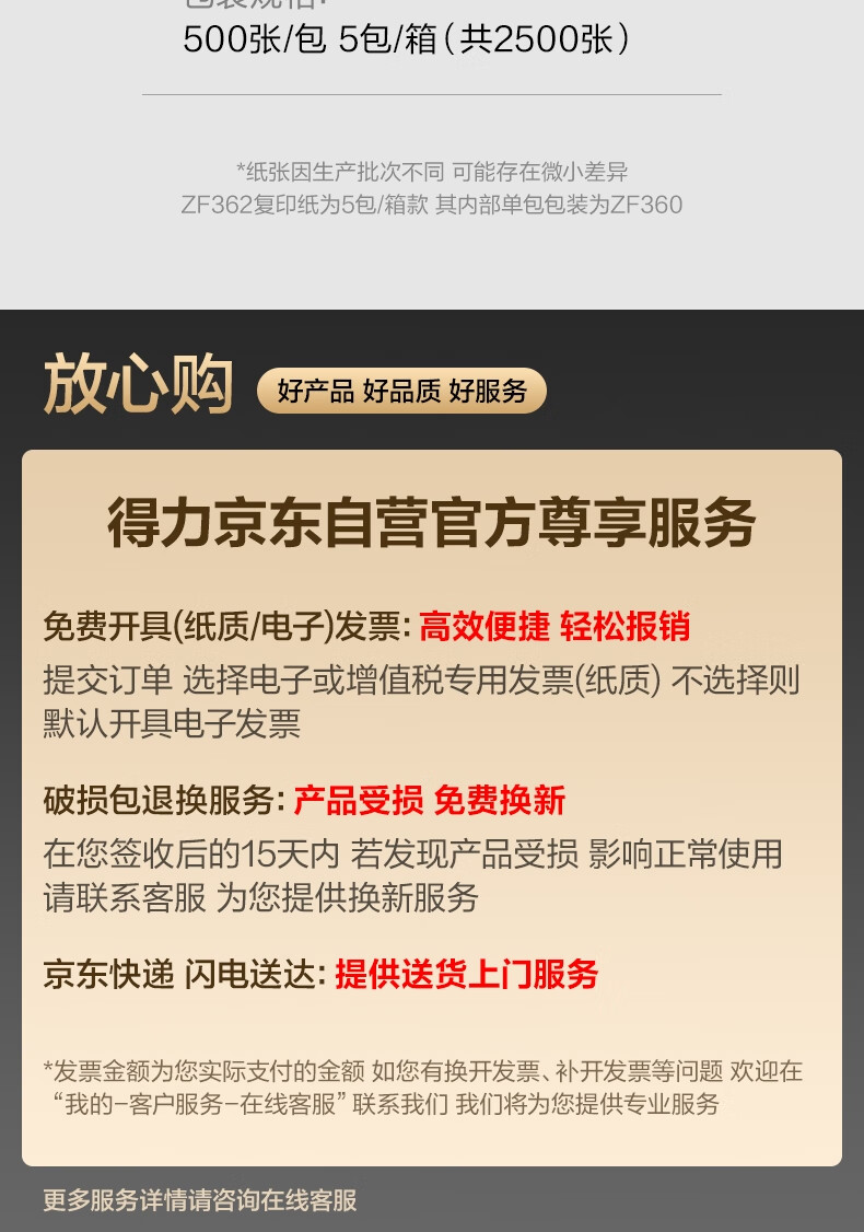 得力(deli)辉铂A4打印纸 70g500张*5包一箱 顺滑细腻 双面打印复印纸 整箱2500张7783【品质升级】