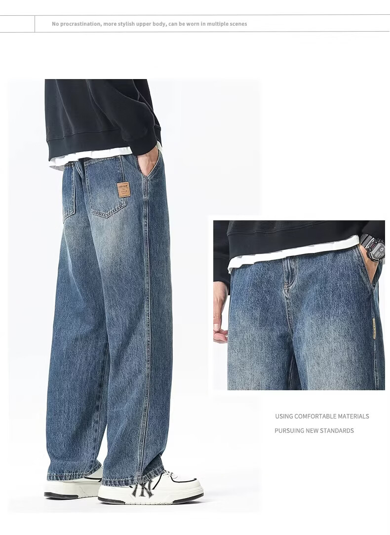 真维斯(Jeanswest)2026秋冬季新款美式高街牛仔裤男士百搭直筒简约显瘦显高休闲长裤 随机款 32