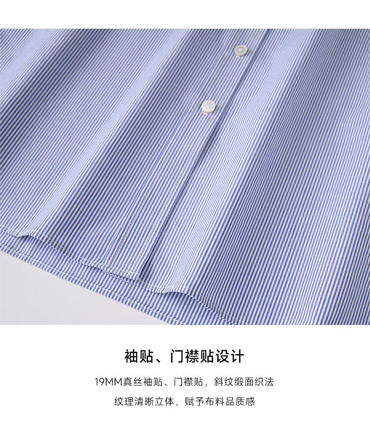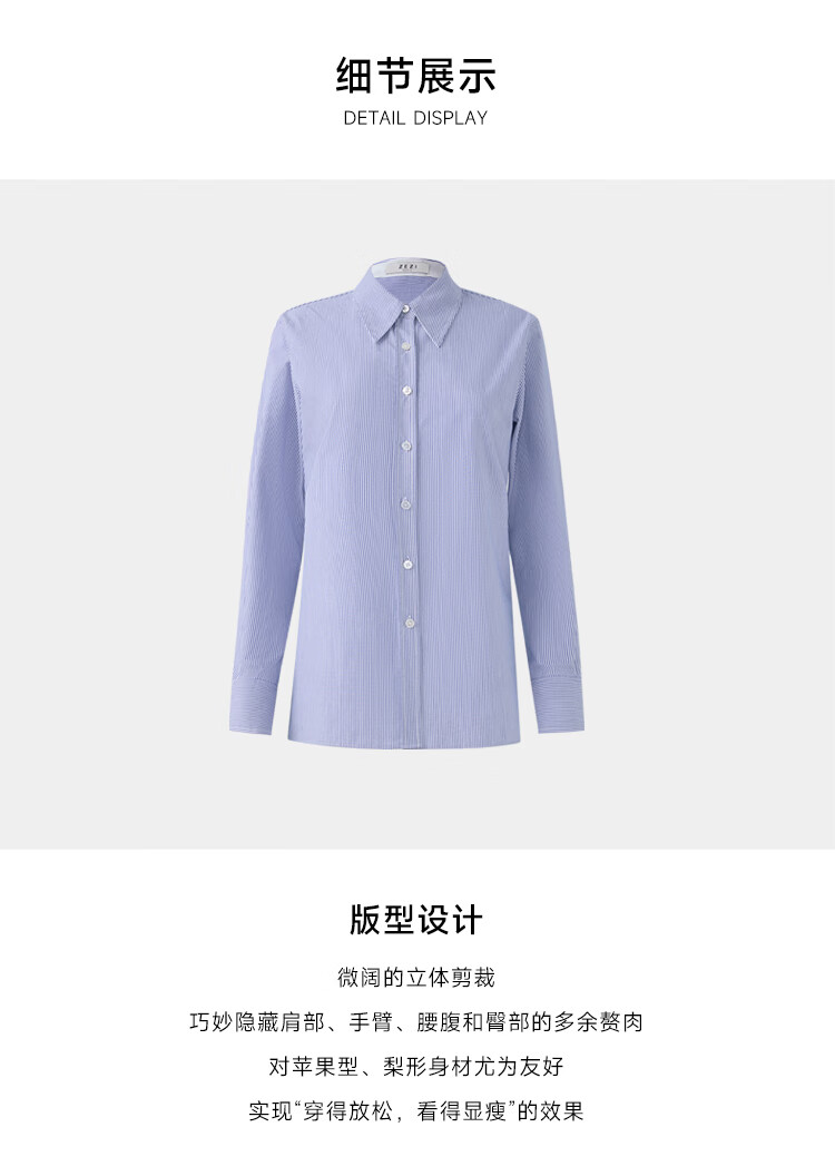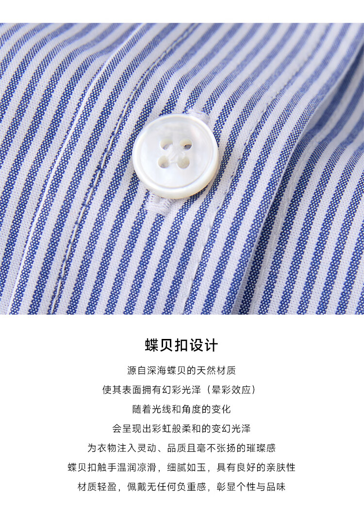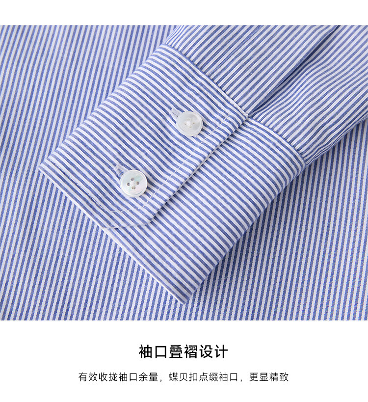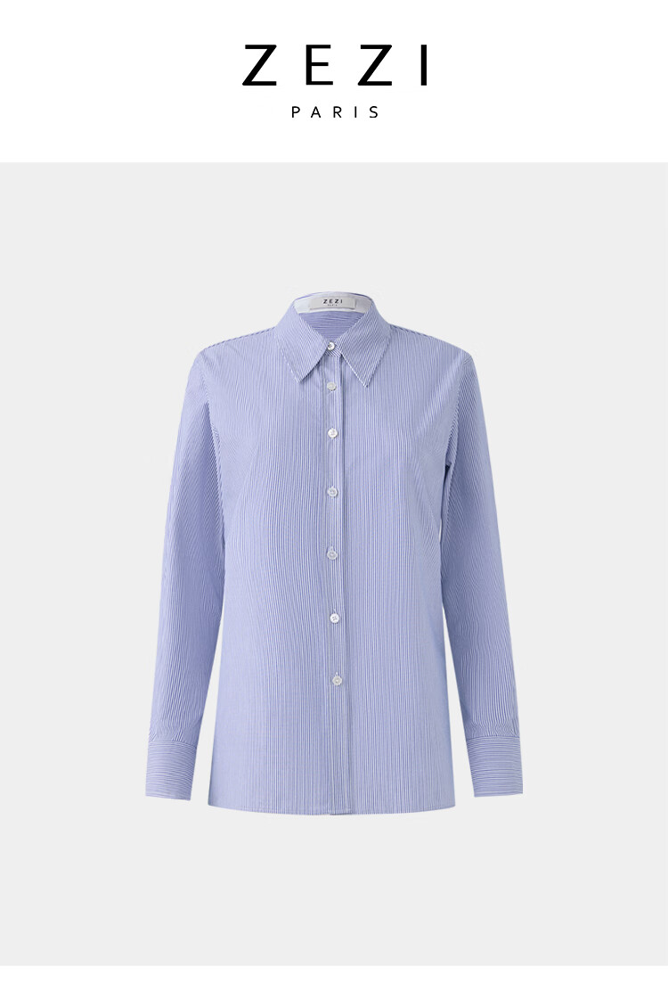 ZEZI100%长绒棉条纹衬衫女长袖职业装工装单排扣衬衣通勤开衫2025秋新 暗蓝条纹 M (115-125斤)