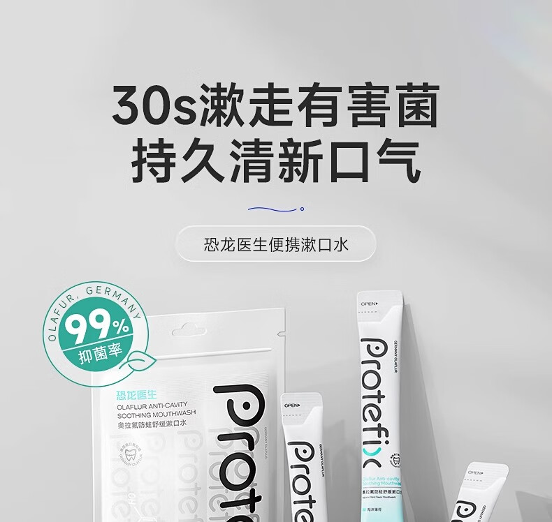 恐龙医生漱口水便携条状正畸含氟漱口水清洗牙套清新口腔防蛀牙龋齿抑菌液 混合口味【买2送4—共60条】