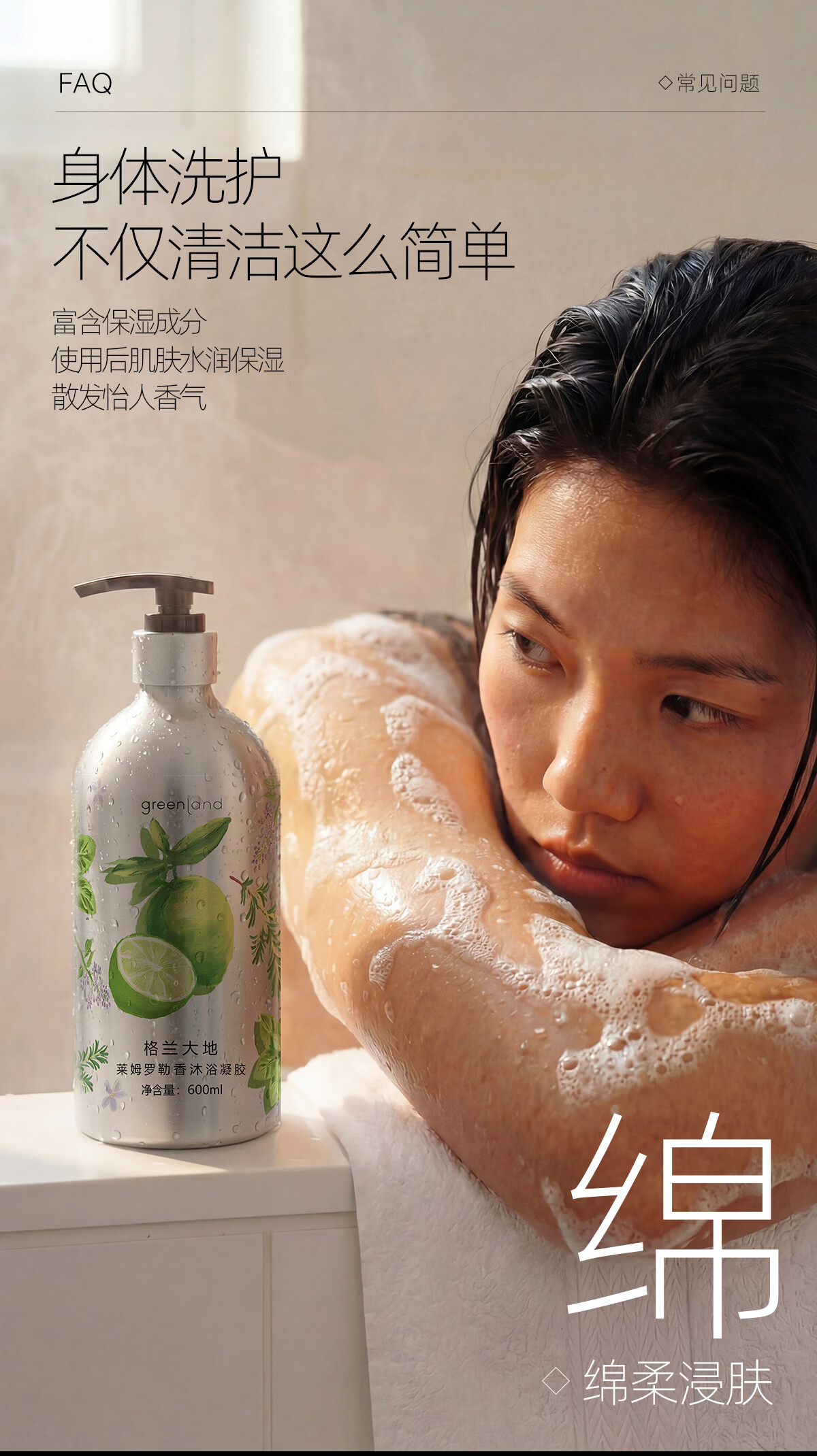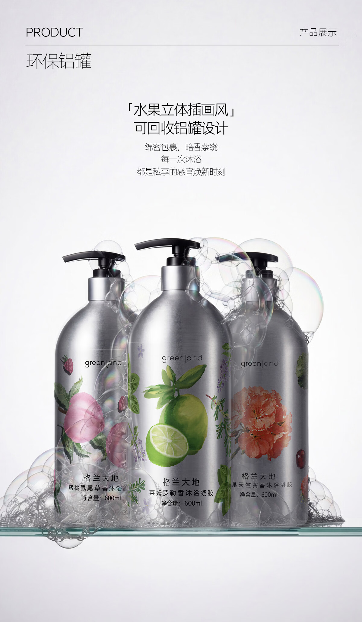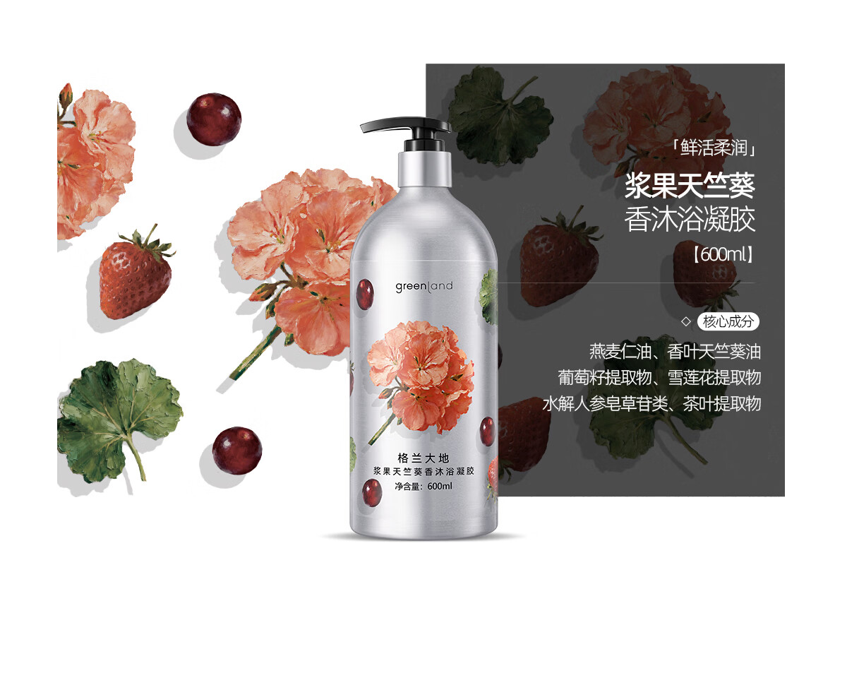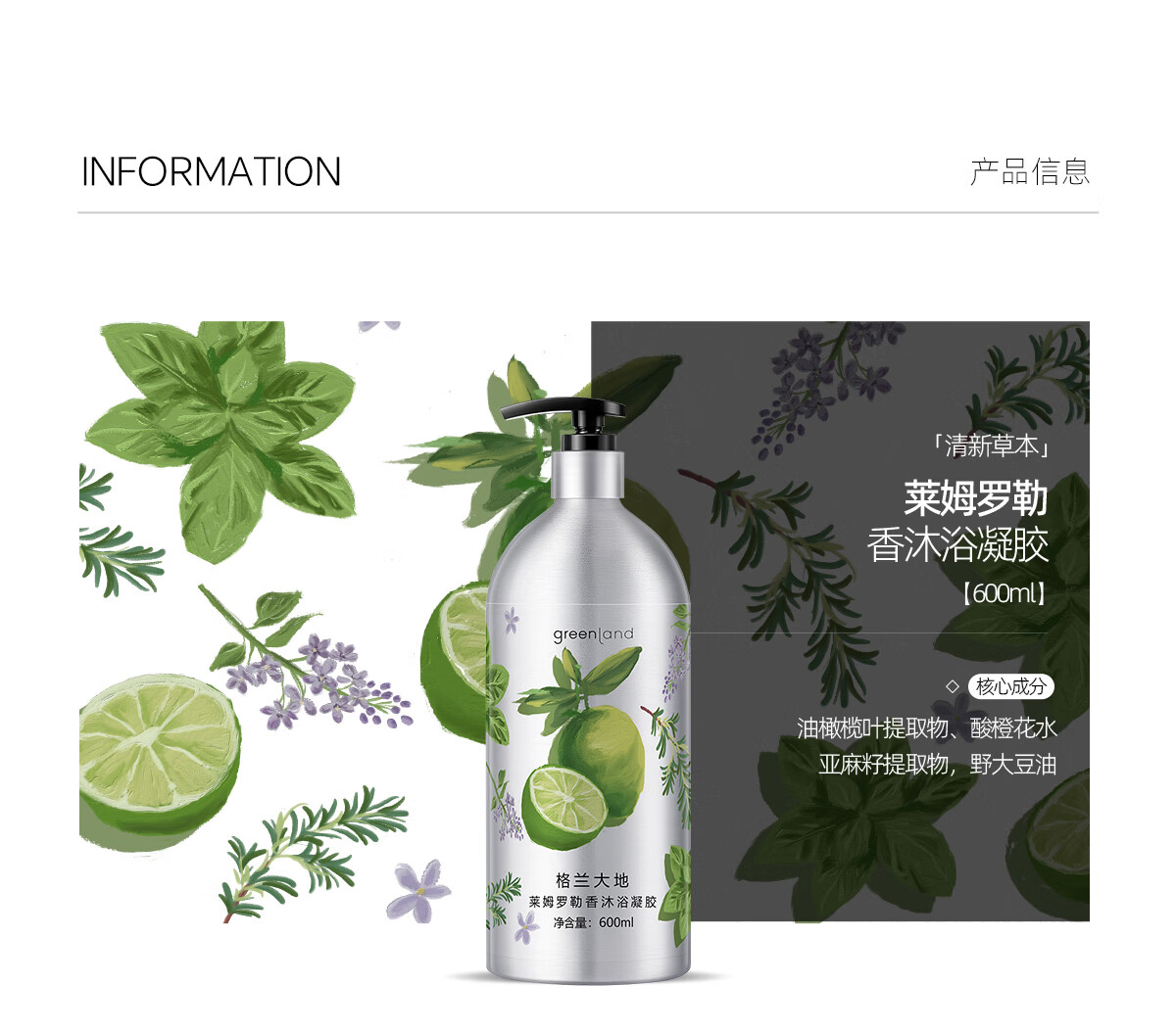 格兰大地莱姆罗勒香沐浴凝胶600ml香氛沐浴露清洁滋润保湿男女士持久留香 浆果天竺葵香沐浴凝胶600ml