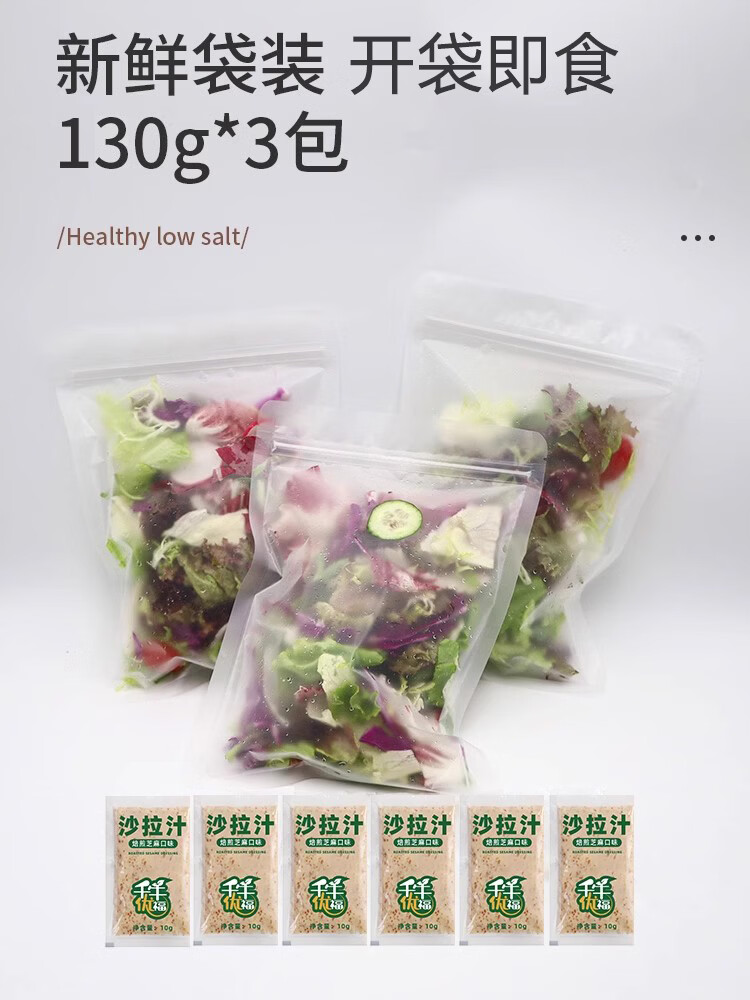 YIKECAI【开袋即食】免洗蔬菜沙拉130g/包 新鲜混合生菜轻食健身色拉套餐 3袋蔬菜+6包培煎芝麻酱