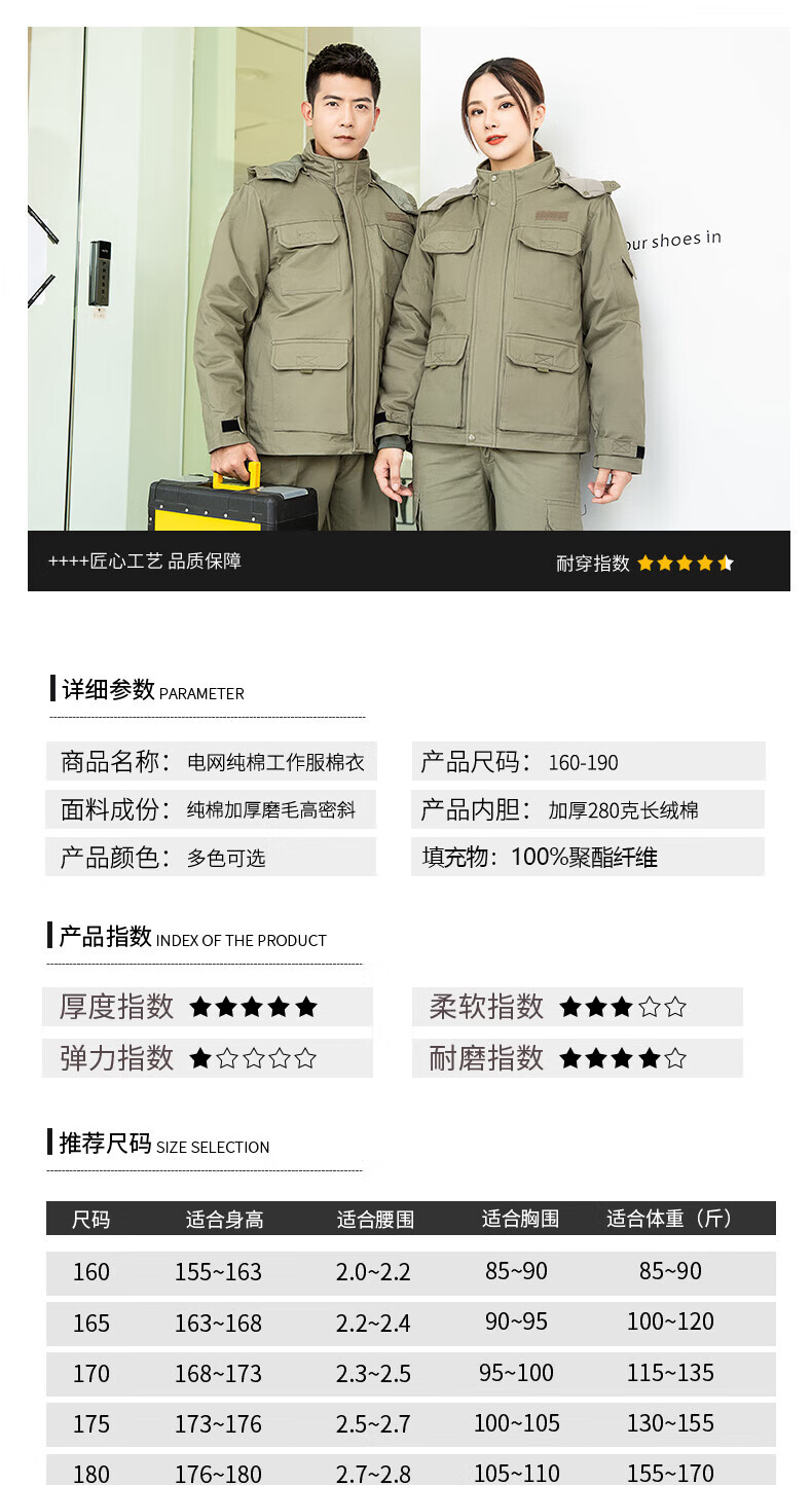 妙歌棉服国家电网纯棉工作服棉衣男冬季加厚保暖电力抢修冬装劳保棉袄 藏蓝色【棉服上衣】 XL (175)