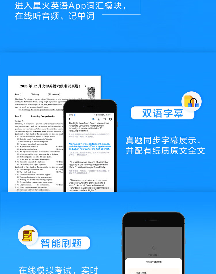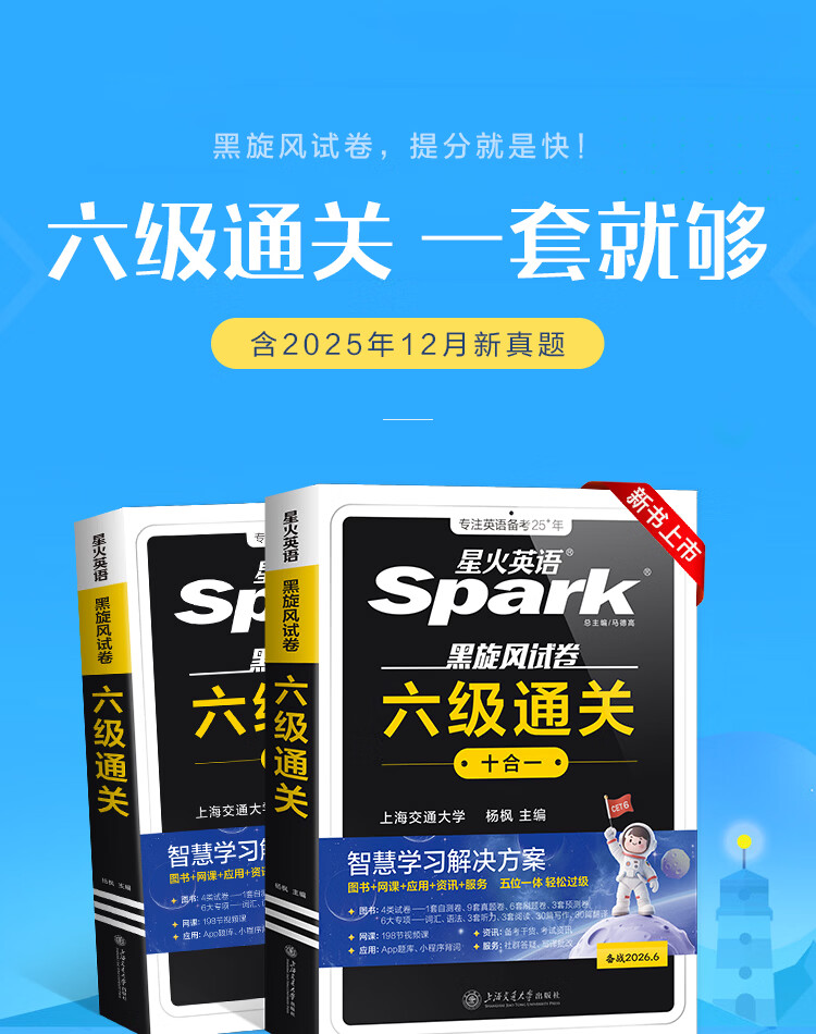 星火英语六级真题备考2026年6月大学英语六级备考资料英语四六级真题试卷6级英语真题通关词汇英语四六级考试必备资料词汇单词书听力阅读翻译写作专项训练 六级通关真题【16真题+3预测+4大专项+词汇册】