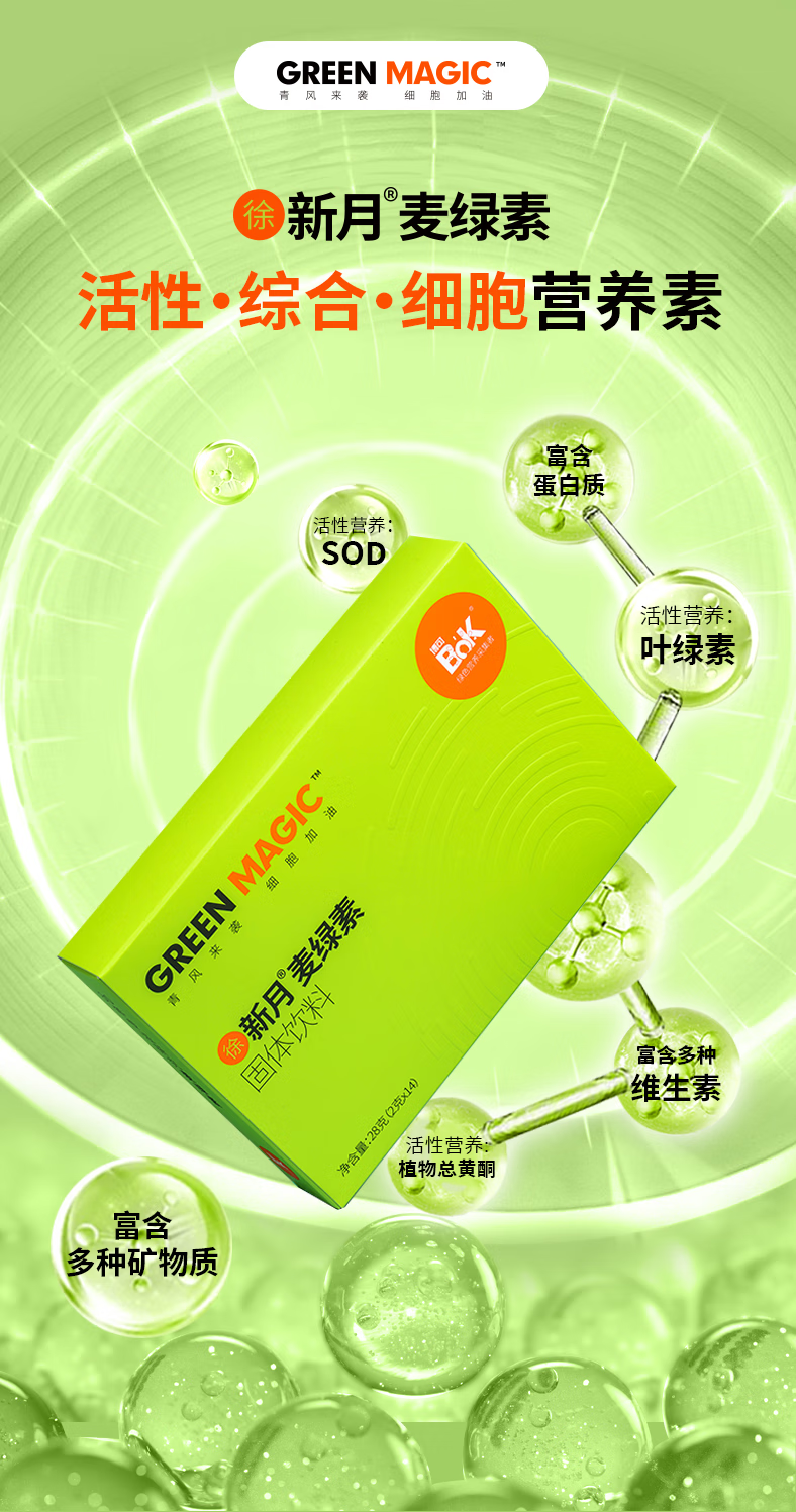博可【推广】博可新月麦绿素 活性酶高蛋白女性综合营养2g*14条/盒 14支*6盒