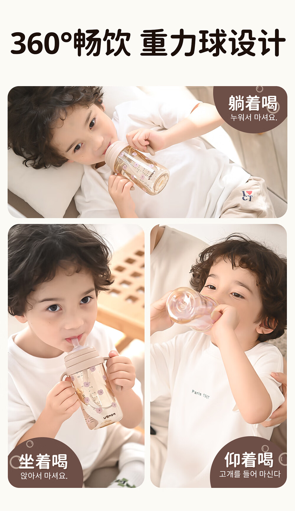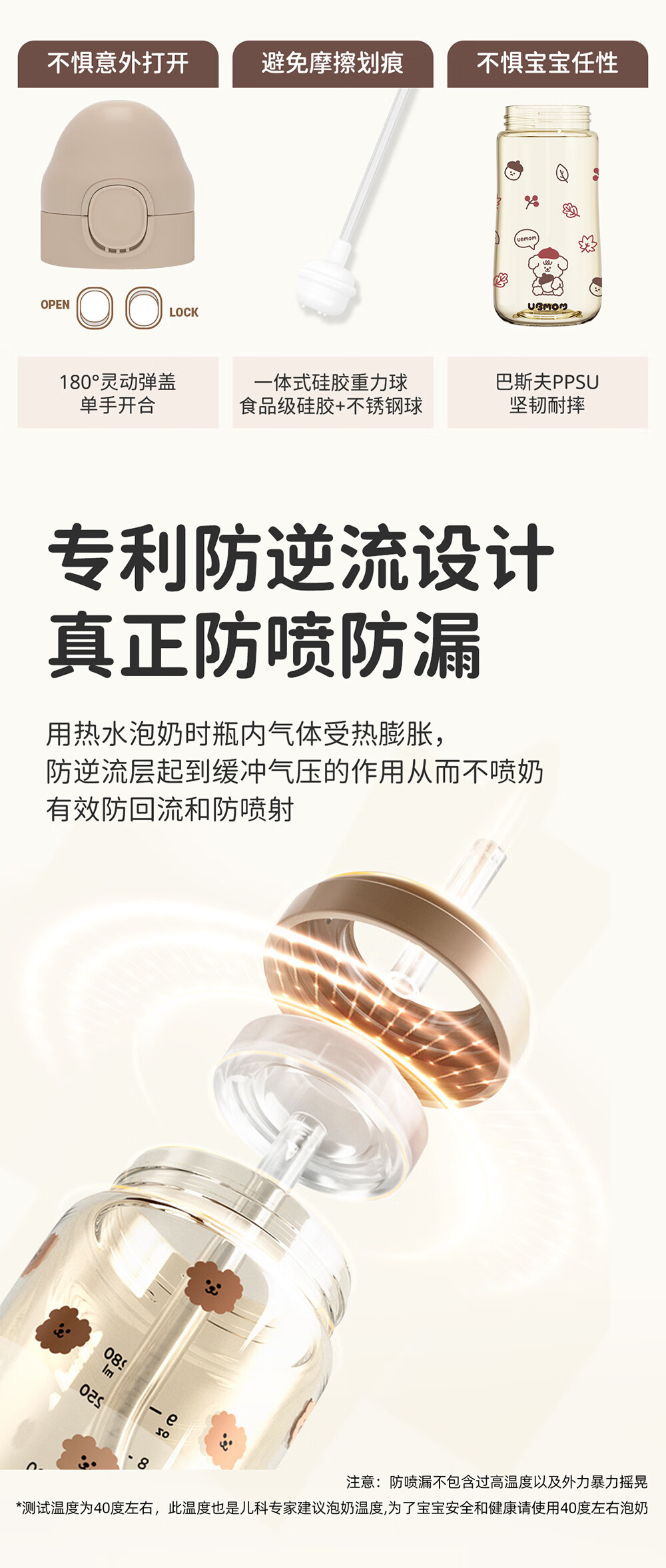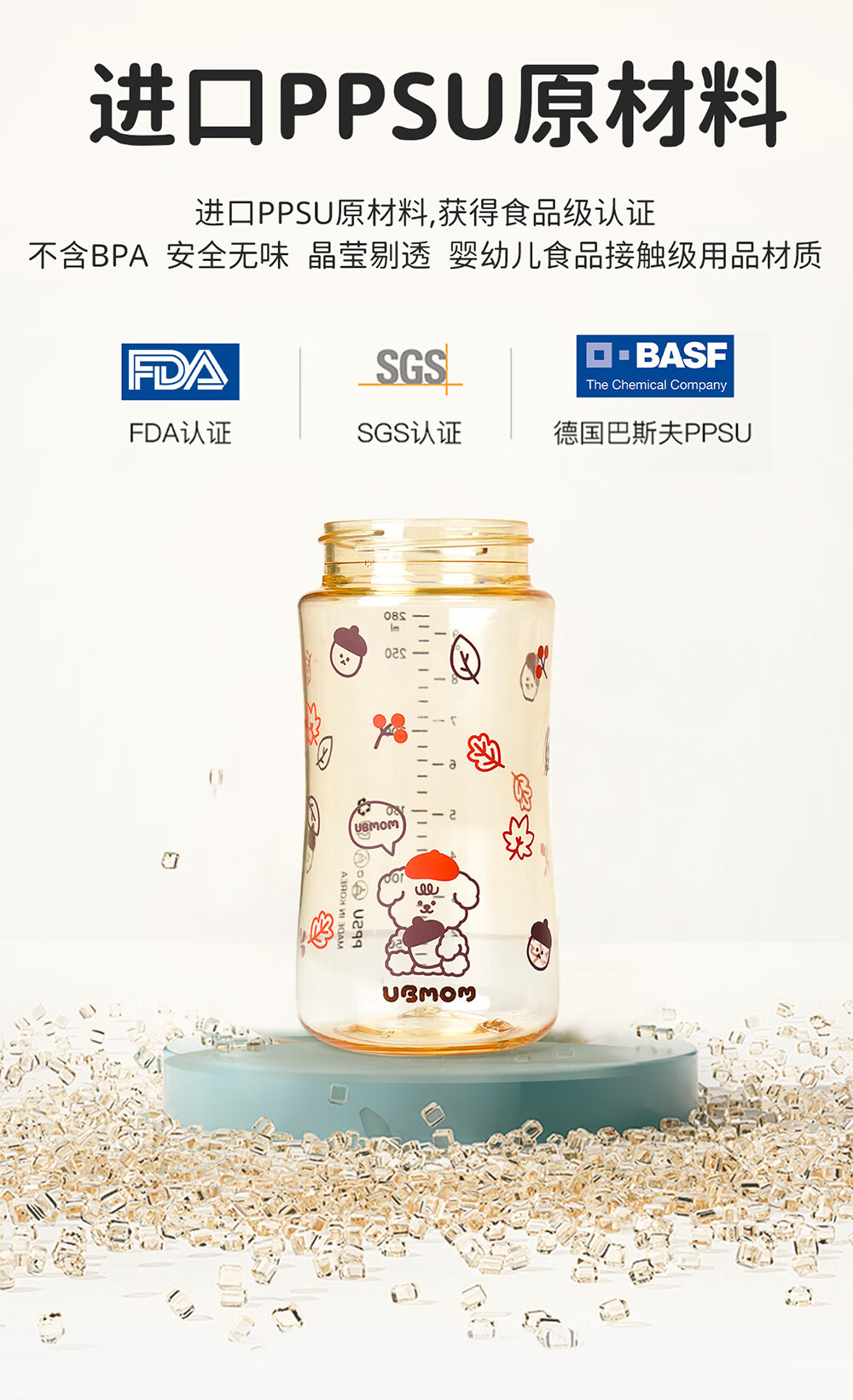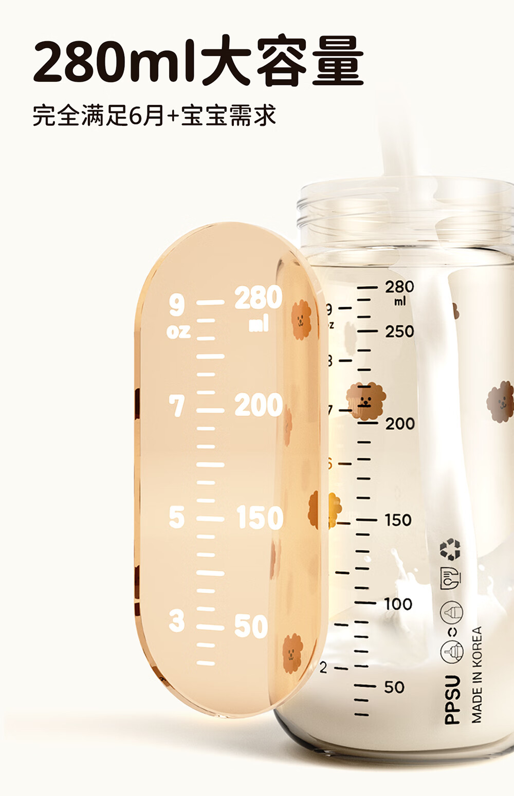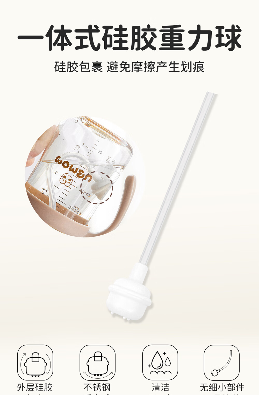 UBMOM吸管杯婴儿宝宝学饮杯儿童喝水杯直饮杯牛奶杯ppsu吸管奶瓶1-3岁 弹盖式米色小松鼠-专利防喷 280ml