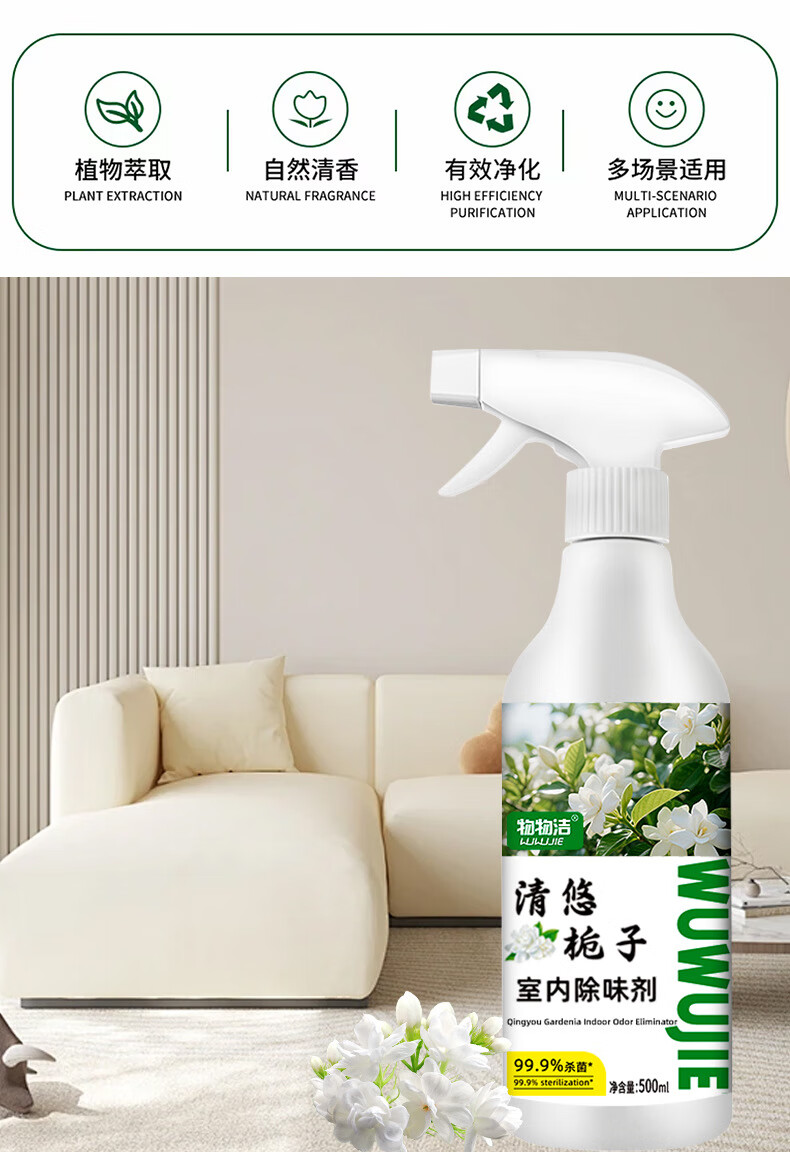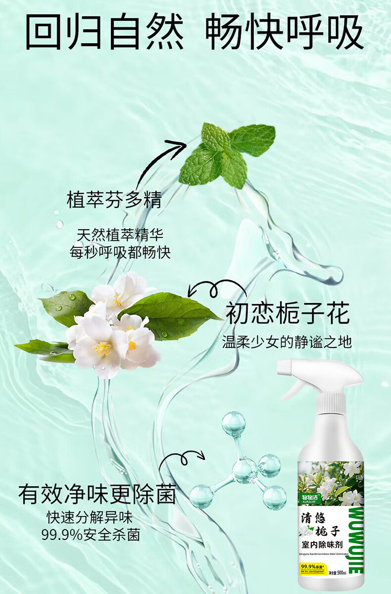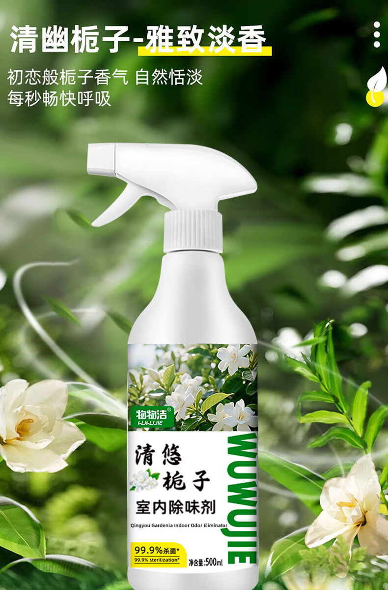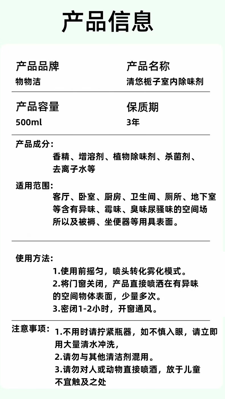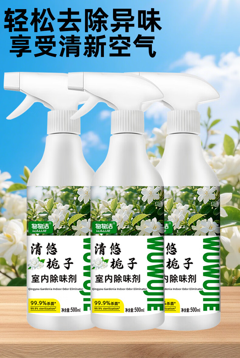 映棠【优选直发】清悠栀子室内除味剂空气清新剂净化剂香氛老人宠物车 杀菌型500ml3瓶装【送喷雾喷头一个】