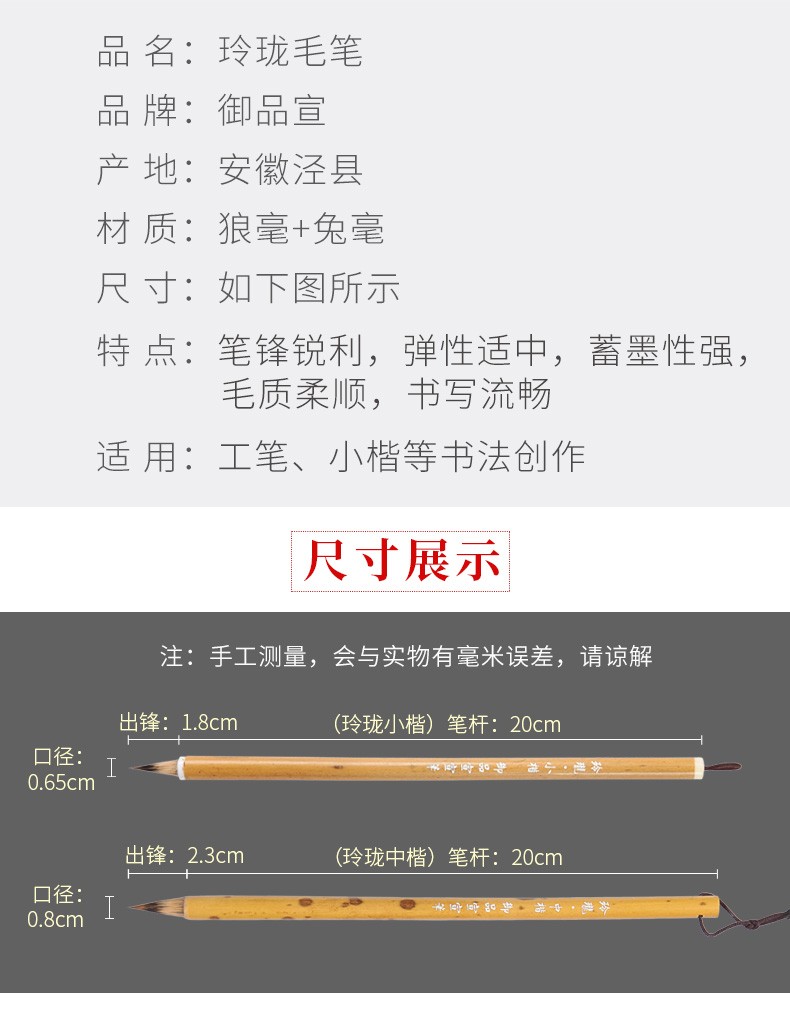 御品宣玲珑系列毛笔小楷中楷精品狼毫紫毫兼毫鸡距笔精品高档宣笔 玲珑小楷+玲珑中楷 大笔盒装